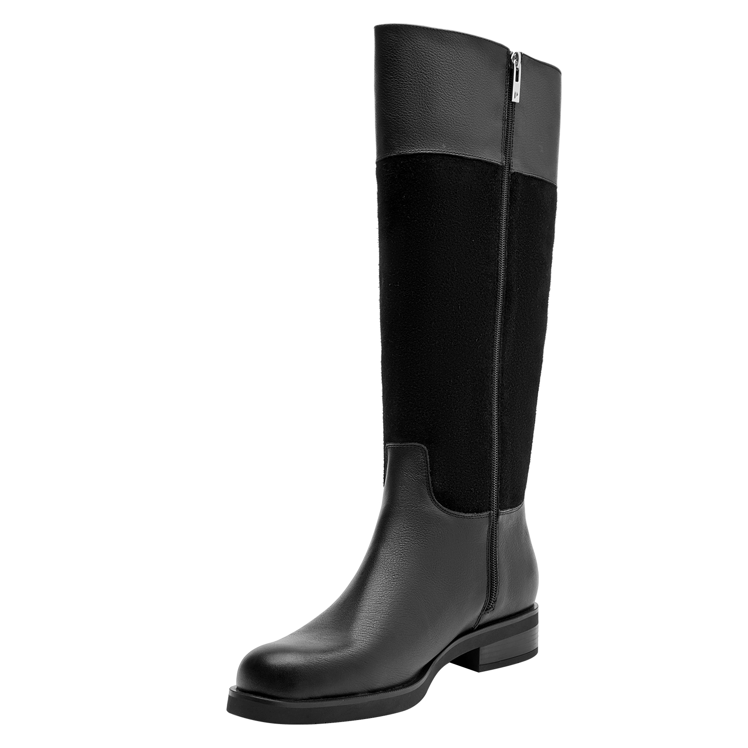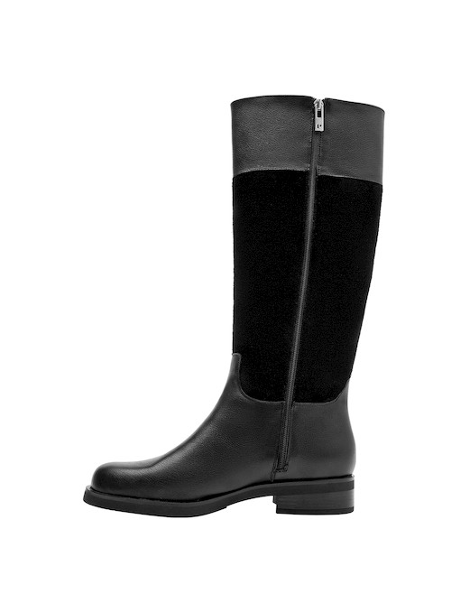 Descubre la elegancia y versatilidad de nuestra Bota de Cuero Negra para Mujer. Confeccionada en una combinación de cuero suave y gamuza, esta bota presenta un diseño de taco bloque de 3.5 cm que realza la figura y ofrece comodidad en cada paso. Su estilo atemporal y su textura refinada la hacen perfecta para lucir en cualquier ocasión. Combínala con un vestido midi para un toque chic o con jeans ajustados y una blusa elegante para un look moderno y urbano.