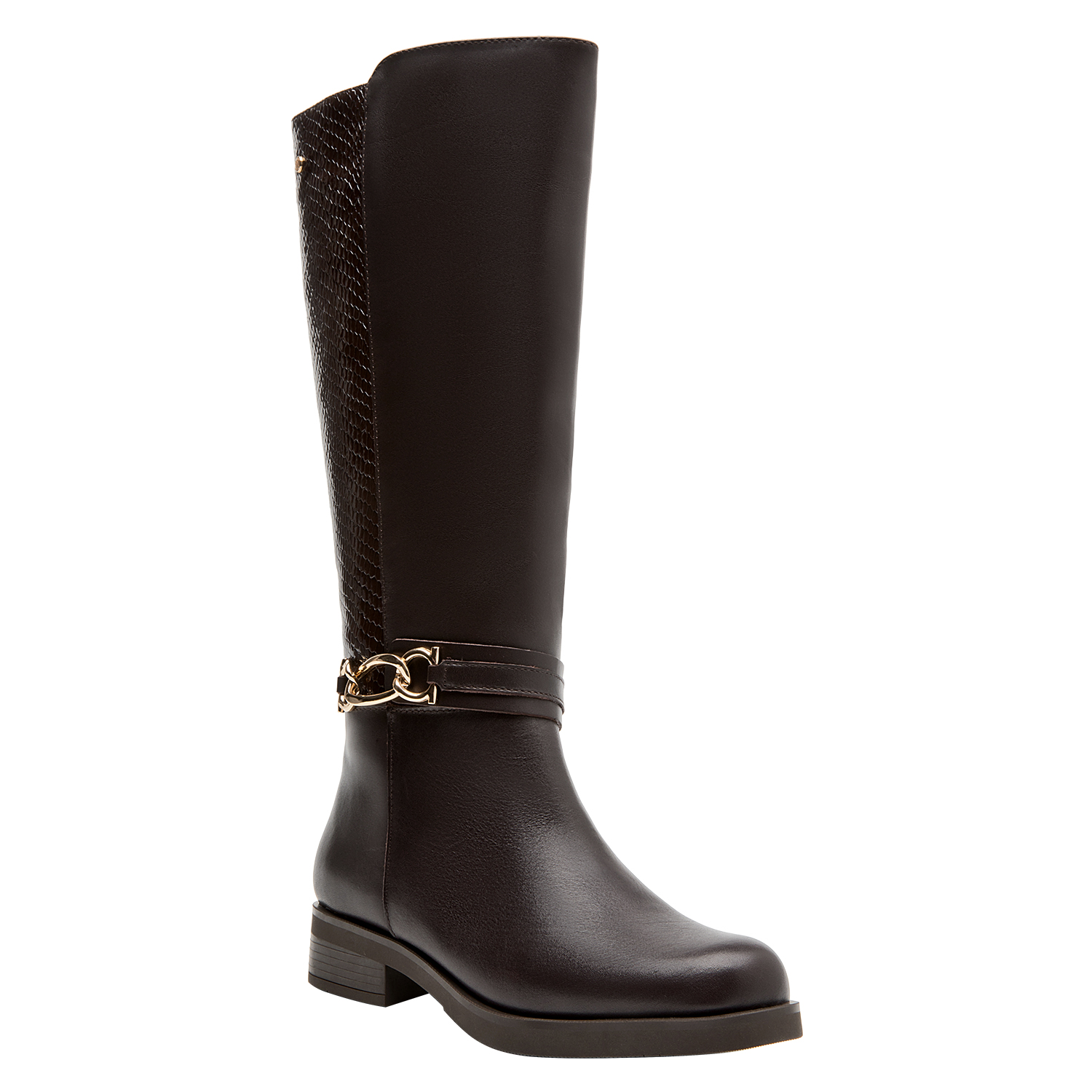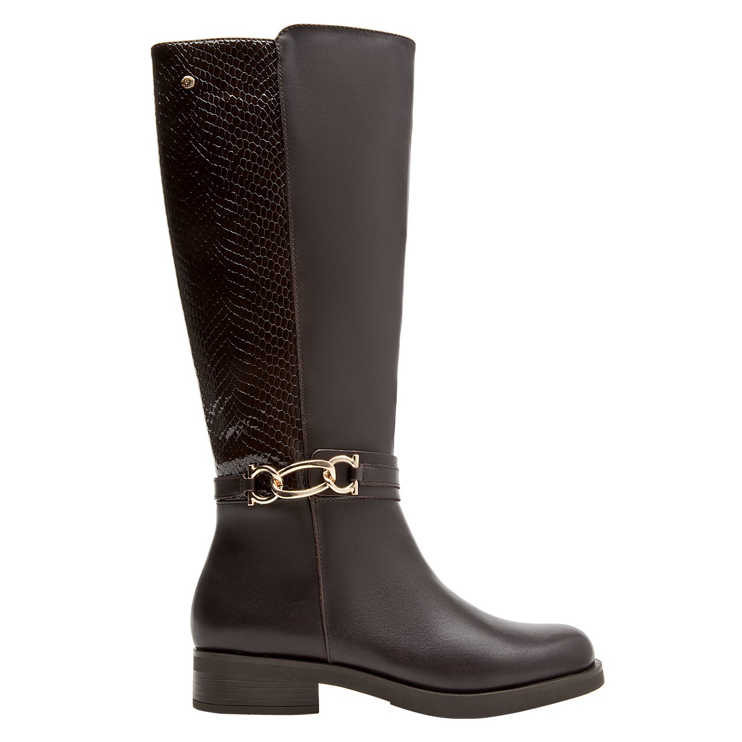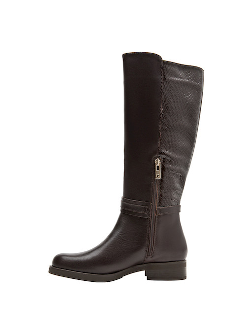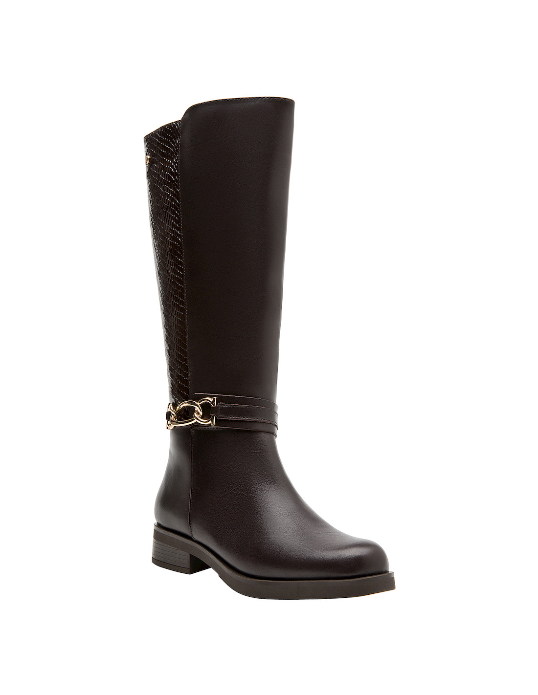 Eleva tu estilo diario con esta bota de mujer en un elegante color moro. Confeccionada en suave cuero, presenta un taco bloque de 3.5 cm que aporta comodidad y presencia a cada paso. Su diseño vanguardista, complementado por un detalle de cadena dorada, la convierte en una pieza única y aspiracional. Perfecta para combinar con un vestido entallado o unos jeans ajustados, añade un toque de sofisticación a cualquier outfit. ¡Destaca cada día con Pollini!