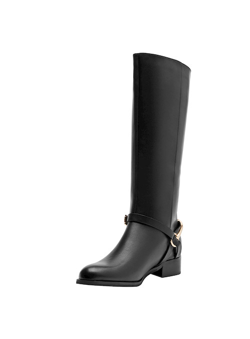 Las botas negras de cuero para mujer Pollini son la definición de la elegancia contemporánea. Con un diseño de punta redonda y un taco bloque de 4 cm, ofrecen comodidad y estilo en cada paso. Su acabado de cuero suave añade una textura lujosa, mientras que el detalle de la hebilla dorada resalta la sofisticación de la pieza. Perfectas para un look urbano, combínalas con un vestido midi o unos jeans ajustados para destacar tu presencia. Atrae miradas y siéntete segura, actual y a la moda.