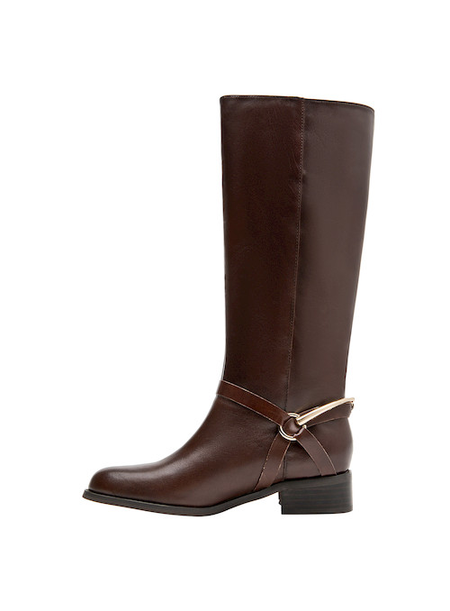 Atrévete a destacar con estas elegantes botas de cuero en un hermoso tono café, perfectas para la mujer que busca ser la reina de la moda. Con un diseño que realza la figura, su taco bloque de 4 cm asegura comodidad sin sacrificar estilo. Los detalles de hebilla añaden un toque vanguardista que las convierte en la elección ideal para cualquier ocasión. Combínalas con un vestido fluido o unos jeans ajustados y una chaqueta de cuero para un look irresistiblemente chic.