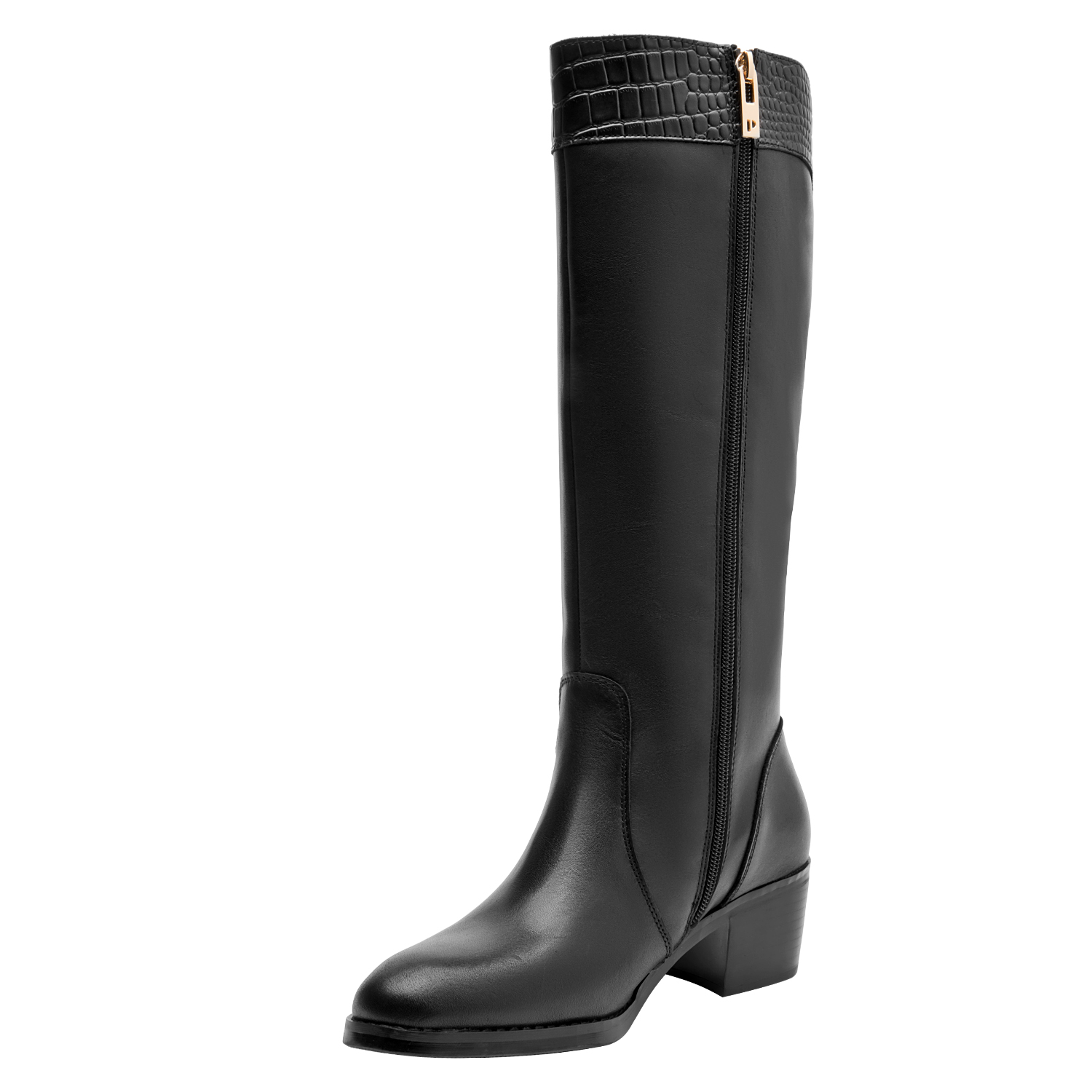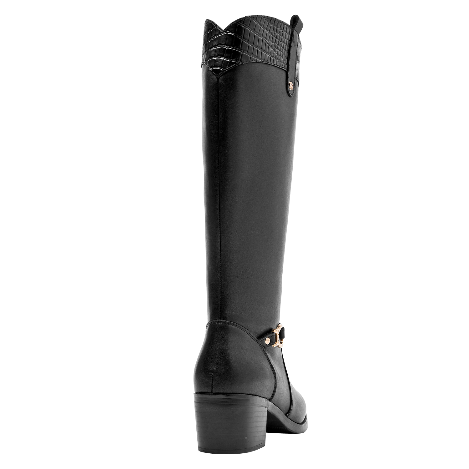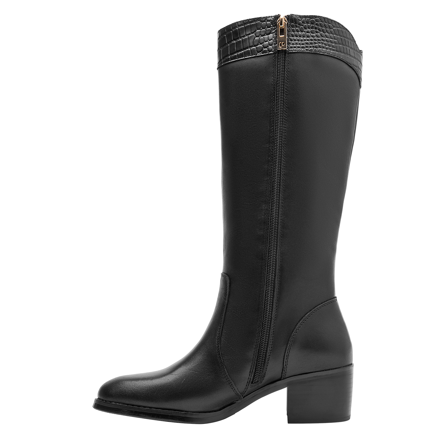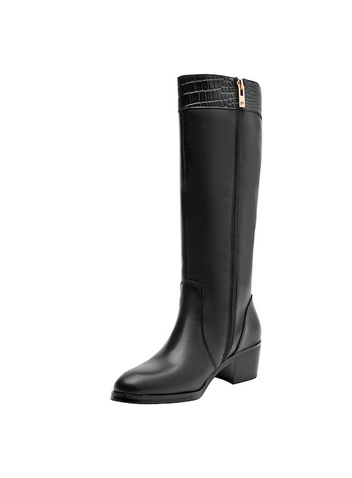 La bota negra de Pollini combina a la perfección elegancia y estilo contemporáneo. Confeccionada en cuero de alta calidad, su acabado mate destaca la pureza del diseño. El taco bloque de 5 cm proporciona comodidad y estabilidad, mientras que la punta redonda añade un toque sofisticado. Ideal para lucir en diversas ocasiones, combina perfectamente con un vestido midi o unos jeans ajustados para un look chic y actual.