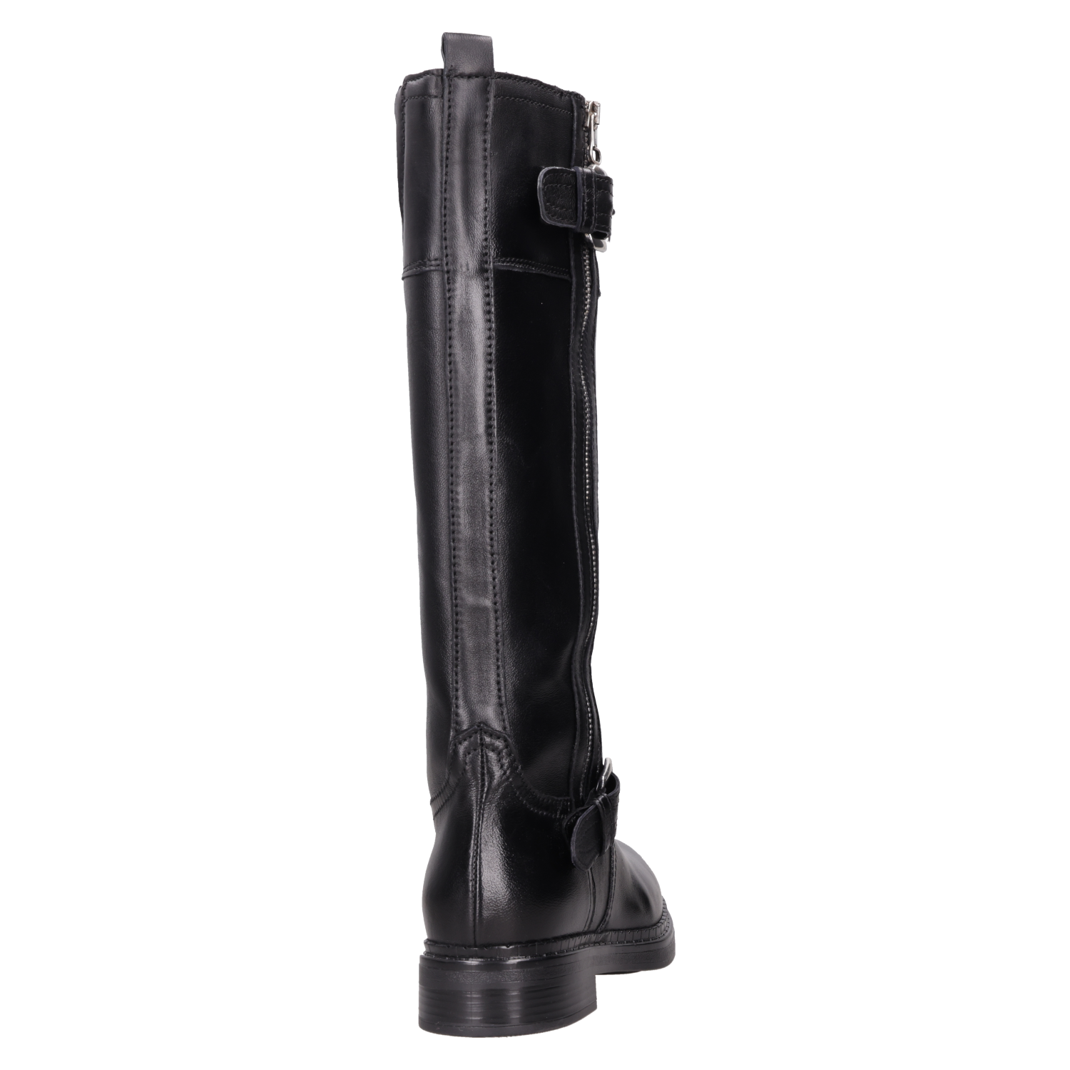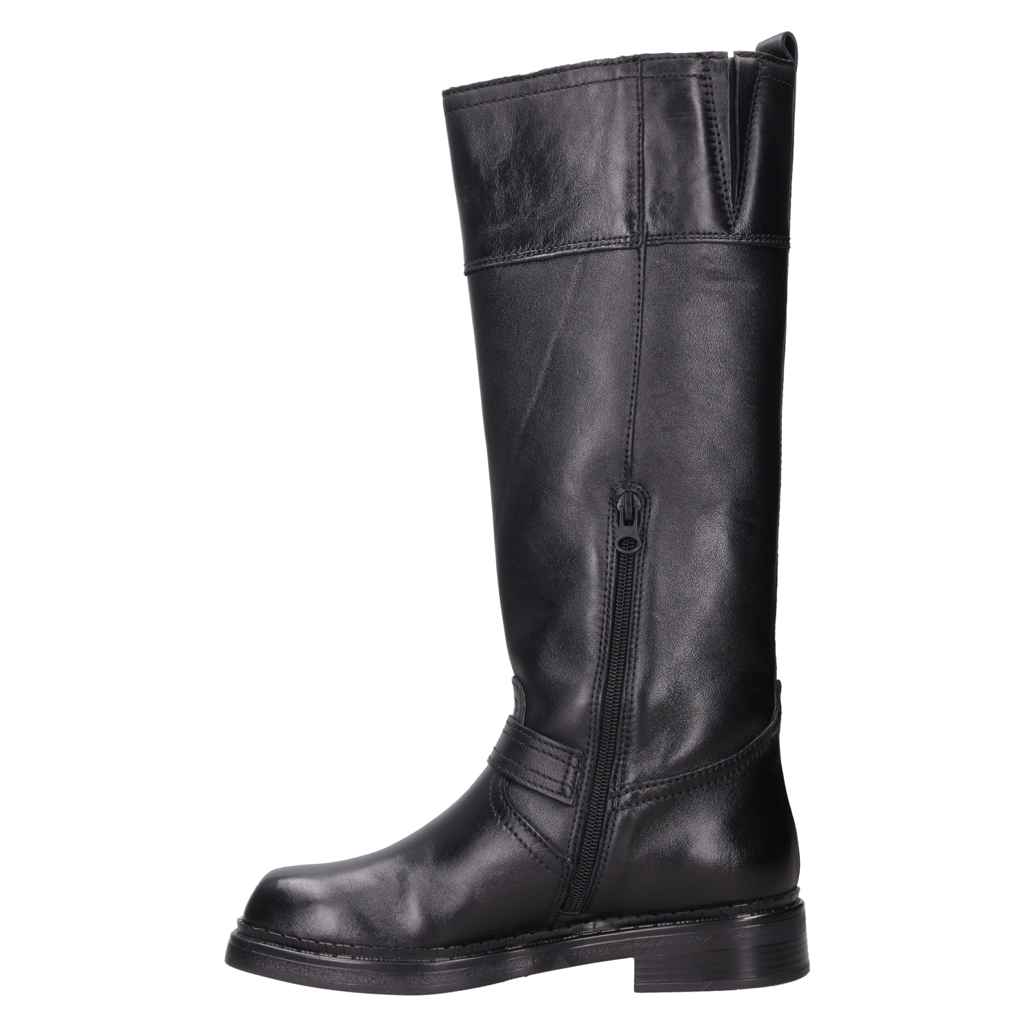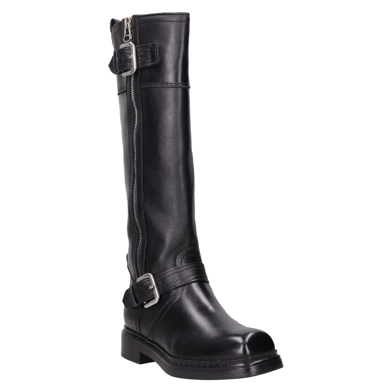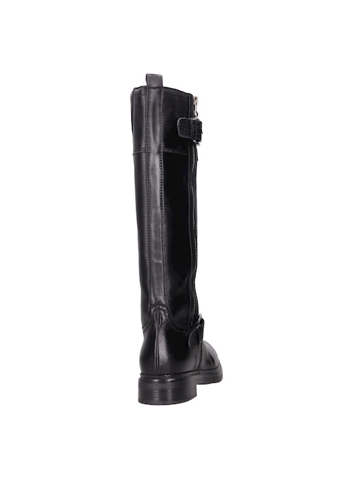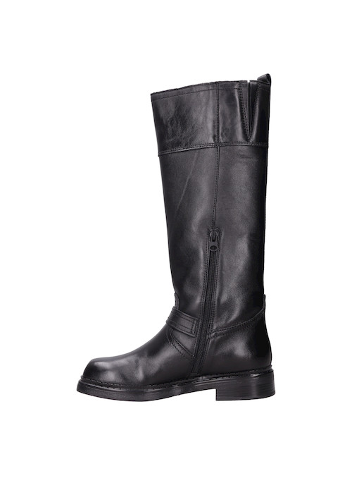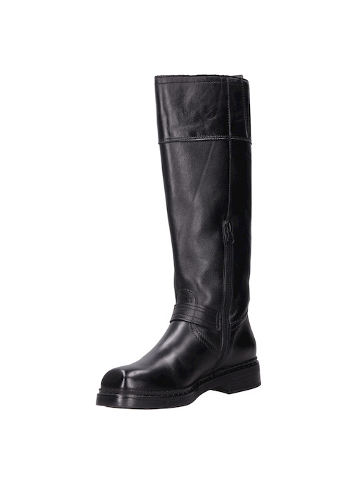 Las botas de cuero negro Zappa son el complemento perfecto para quienes buscan un look audaz y vanguardista. Con una punta cuadrada y un taco bloque de 3 cm, estas botas no solo abrigan, sino que también destacan por sus detalles metálicos que añaden un toque disruptivo. Su acabado brillante y la textura del cuero ofrecen un impacto visual que te hará destacar en cualquier ocasión. Combínalas con un vestido corto para un contraste estiloso o con jeans ajustados para un look urbano impecable.