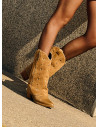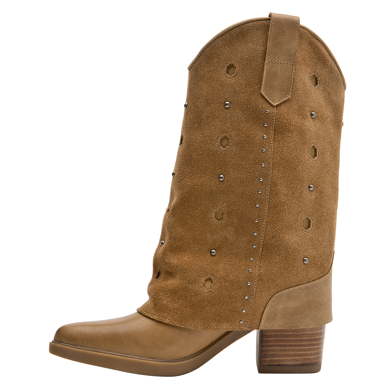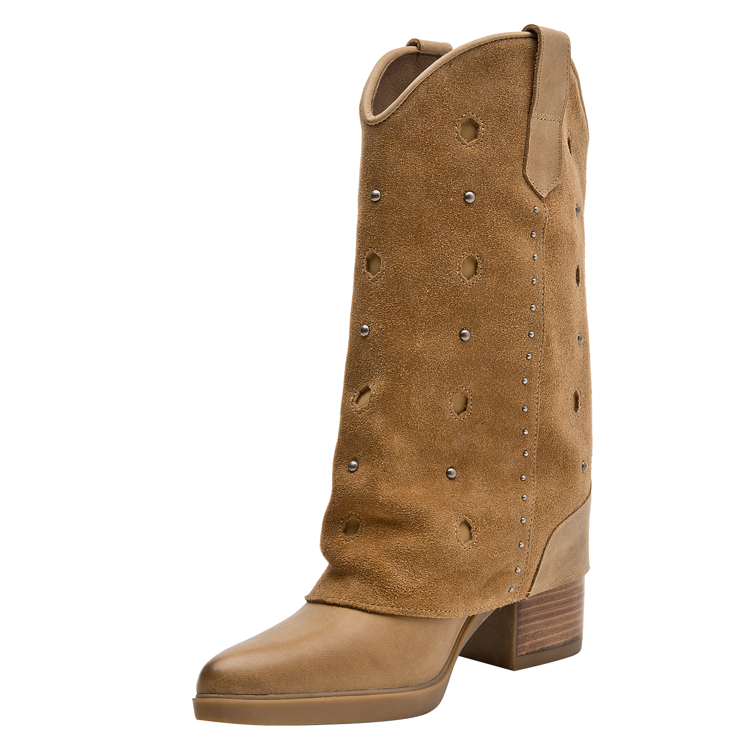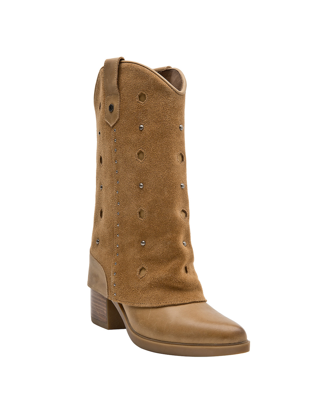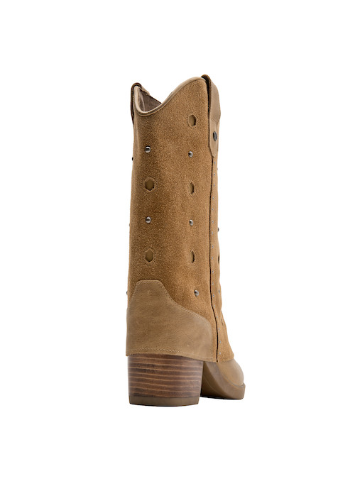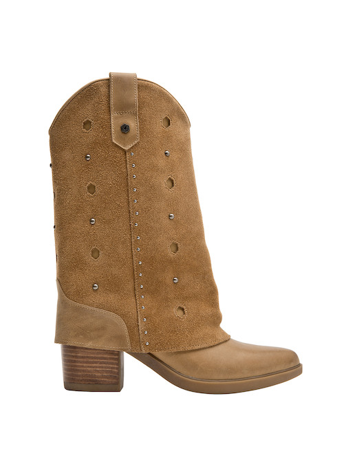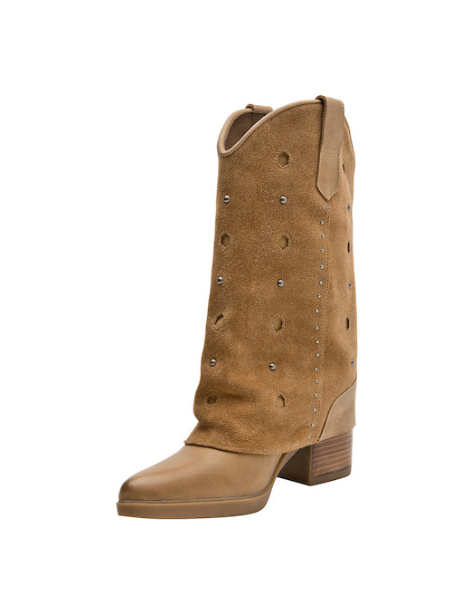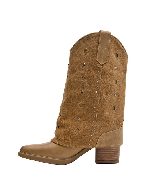 Atrévete con las impresionantes botas de cuero camel, que combinan un diseño audaz con un taco bloque de 7 cm, ideal para marcar el paso. Su textura suave y los detalles metálicos aportan un carácter vibrante y moderno, convirtiendo cada paso en una declaración de estilo. La punta puntiaguda y la sofisticación del gamuzado te permitirán crear looks protagónicos. Combina estas botas con un vestido fluido o unos jeans ajustados y una blusa de encaje para lograr un outfit que destaca tu personalidad única.