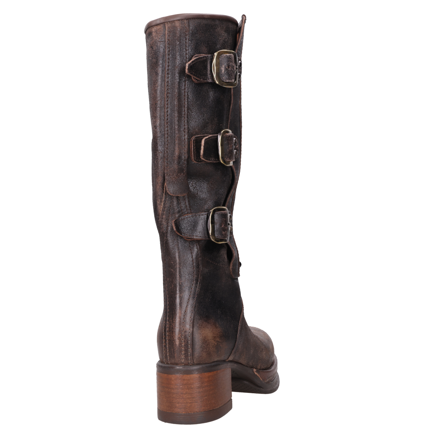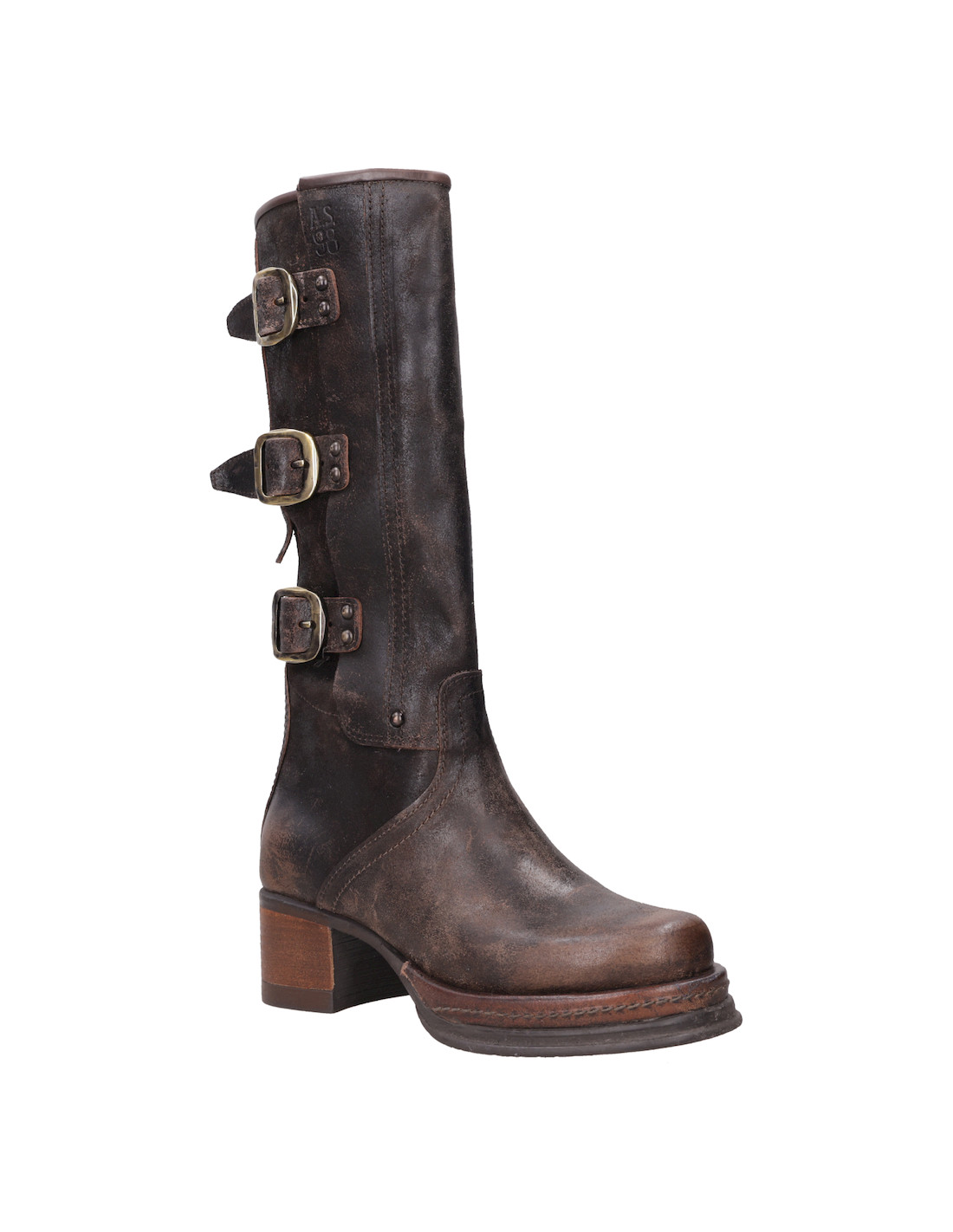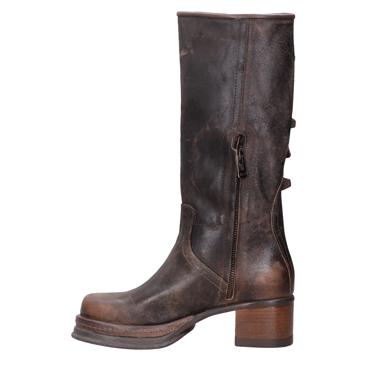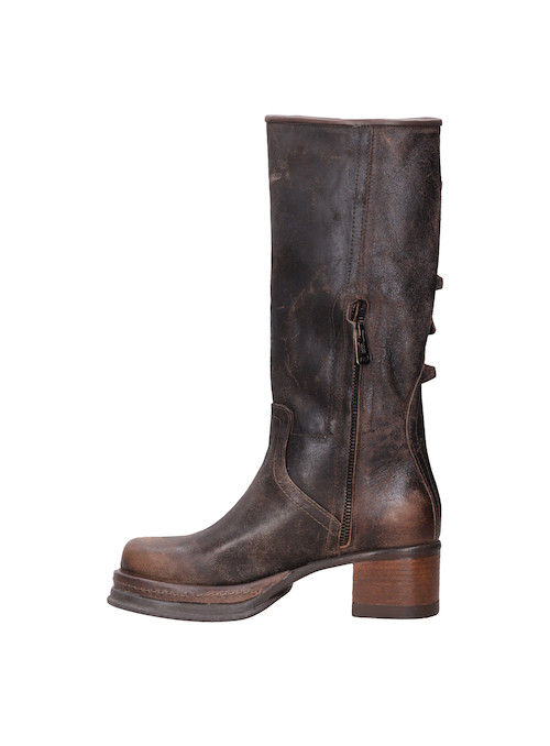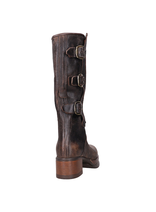Atrévete a lucir las exclusivas botas de cuero italiano en un sofisticado tono café que desafían los límites del estilo urbano. Su diseño vanguardista presenta una silueta alta adornada con detalles metálicos y tres hebillas que aportan carácter. Con un taco bloque de 5 cm, estas botas son perfectas para marcar nuevos caminos en la moda. Combínalas con un vestido bohemio o unos jeans ajustados y una chaqueta de cuero para un look auténtico y fuerte.