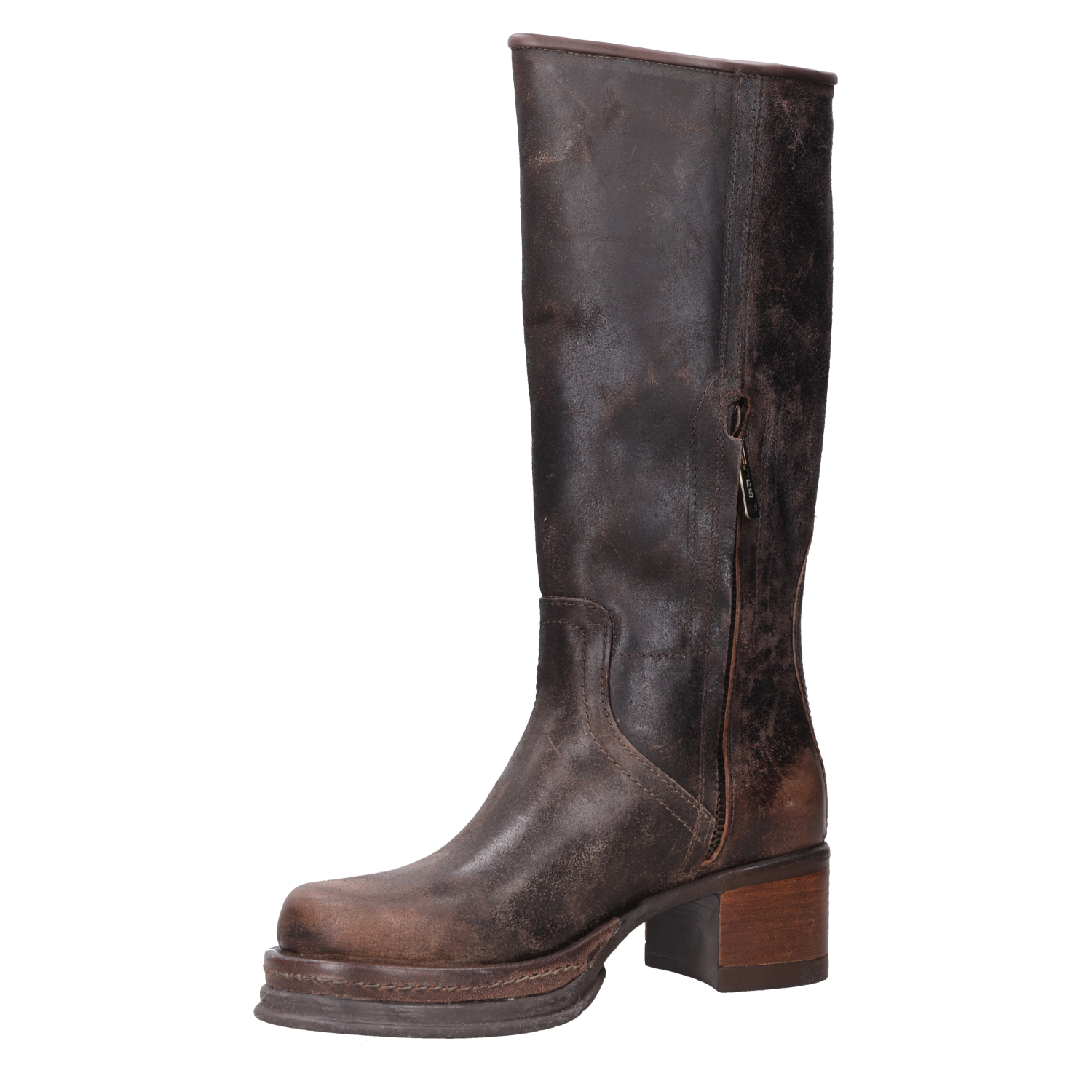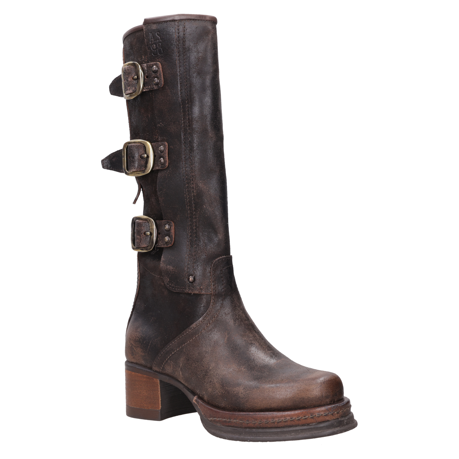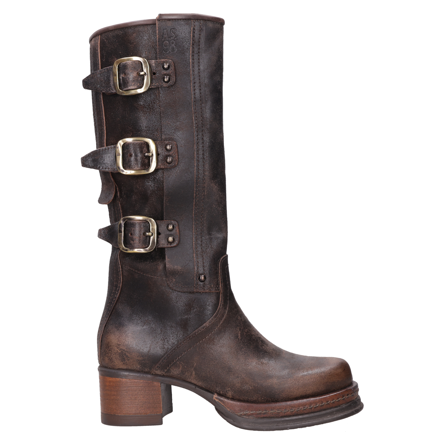 Atrévete a lucir las exclusivas botas de cuero italiano en un sofisticado tono café que desafían los límites del estilo urbano. Su diseño vanguardista presenta una silueta alta adornada con detalles metálicos y tres hebillas que aportan carácter. Con un taco bloque de 5 cm, estas botas son perfectas para marcar nuevos caminos en la moda. Combínalas con un vestido bohemio o unos jeans ajustados y una chaqueta de cuero para un look auténtico y fuerte.