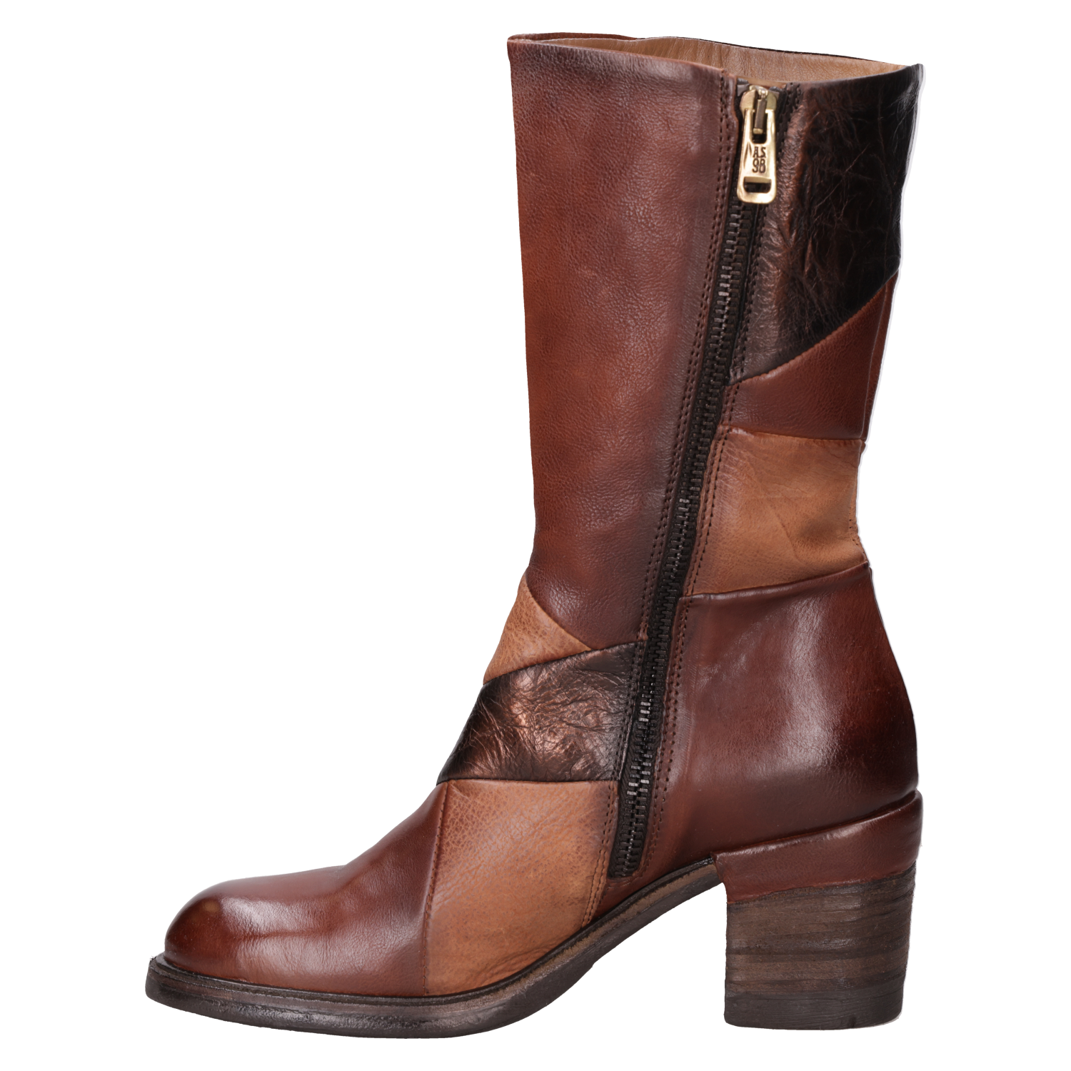 Descubre el impresionante botín de cuero camel de AS98, donde la audacia se encuentra con la elegancia. Confeccionado en un juego de texturas que combina acabados mate y metálicos, este diseño contemporáneo presenta un taco bloque de 6.5 cm que eleva cualquier look. Su estilo urbano se potencia con detalles metálicos y costuras que crean un impacto visual único. Perfecto para complementar tus jeans ajustados o un vestido fluido. ¡Conquista la calle con tu personalidad!