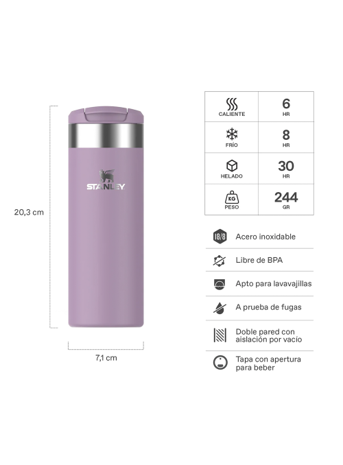 La Botella Térmica Stanley Aerolight 473 ml combina resistencia y ligereza en un diseño ultracompacto, un 33% más liviano que una botella de acero tradicional. Su aislamiento AeroLight™ de doble pared mantiene tus bebidas calientes por 6 horas, frías por 8 y con hielo hasta 30. Con tapa a prueba de fugas y perfil bajo, es perfecta para llevar en movimiento, viajar y mantenerte hidratado sin peso extra.