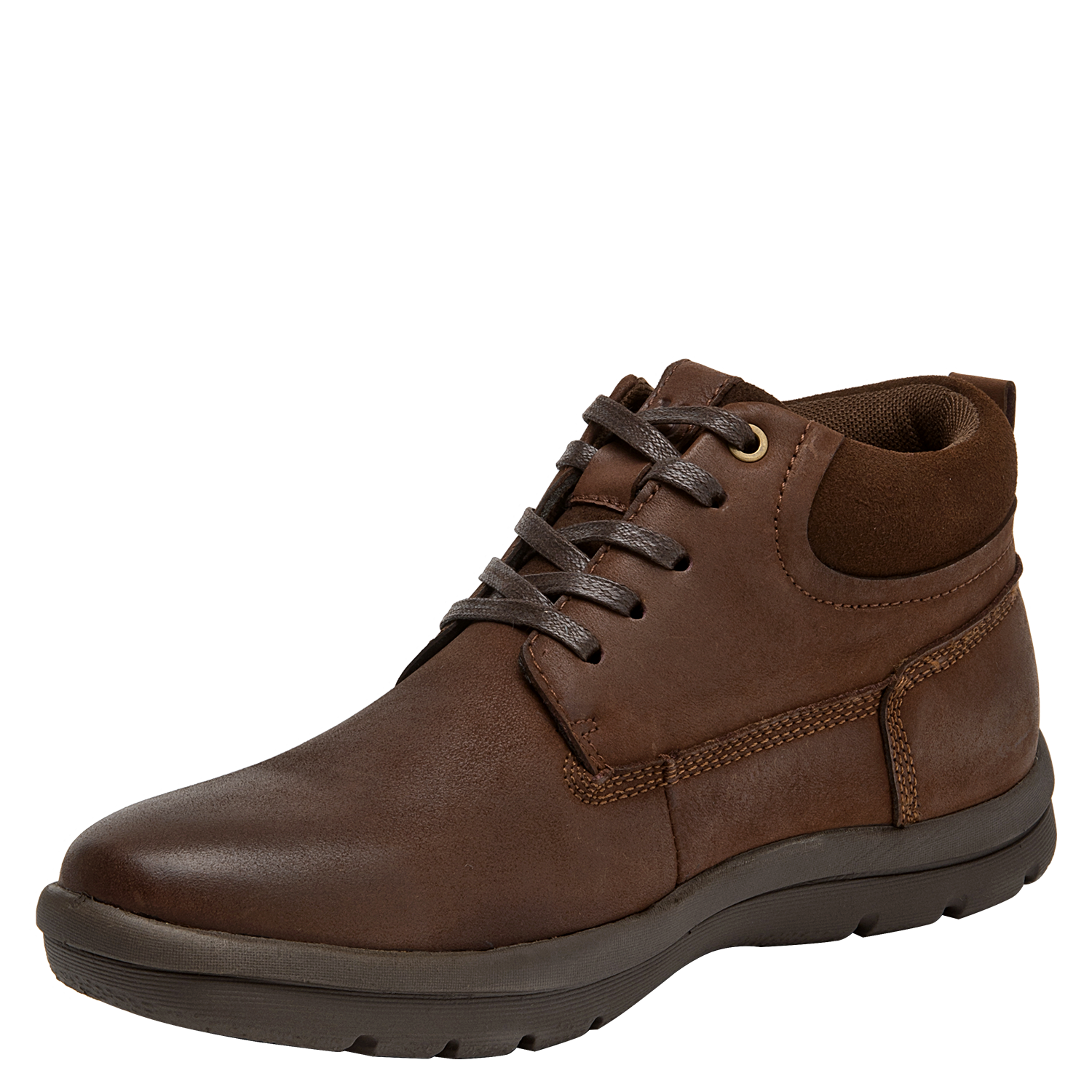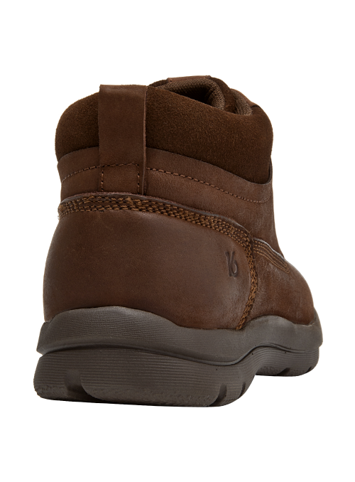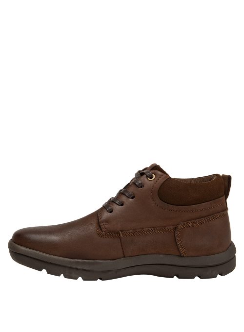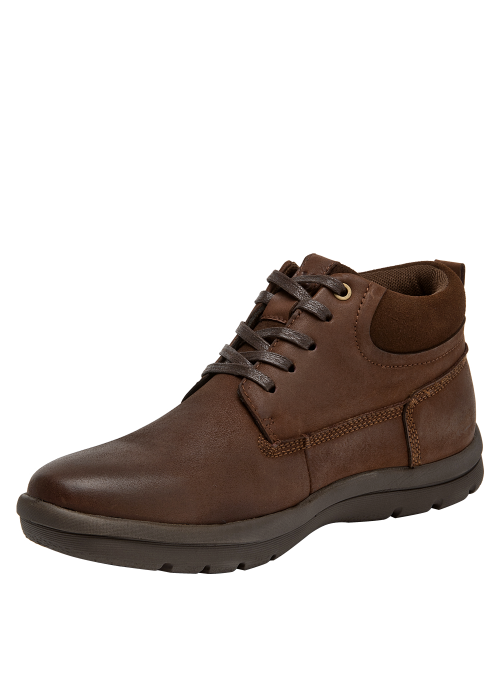 Botín casual de cuero para hombre en color café, ideal para uso diario. Presenta punta redonda, taco plano de 3 cm y forro de mesh. Su acabado de cuero luce sobrio, con terminaciones limpias y perfil versátil para combinar. La base estable y el diseño sencillo lo convierten en una opción práctica para múltiples ocasiones.