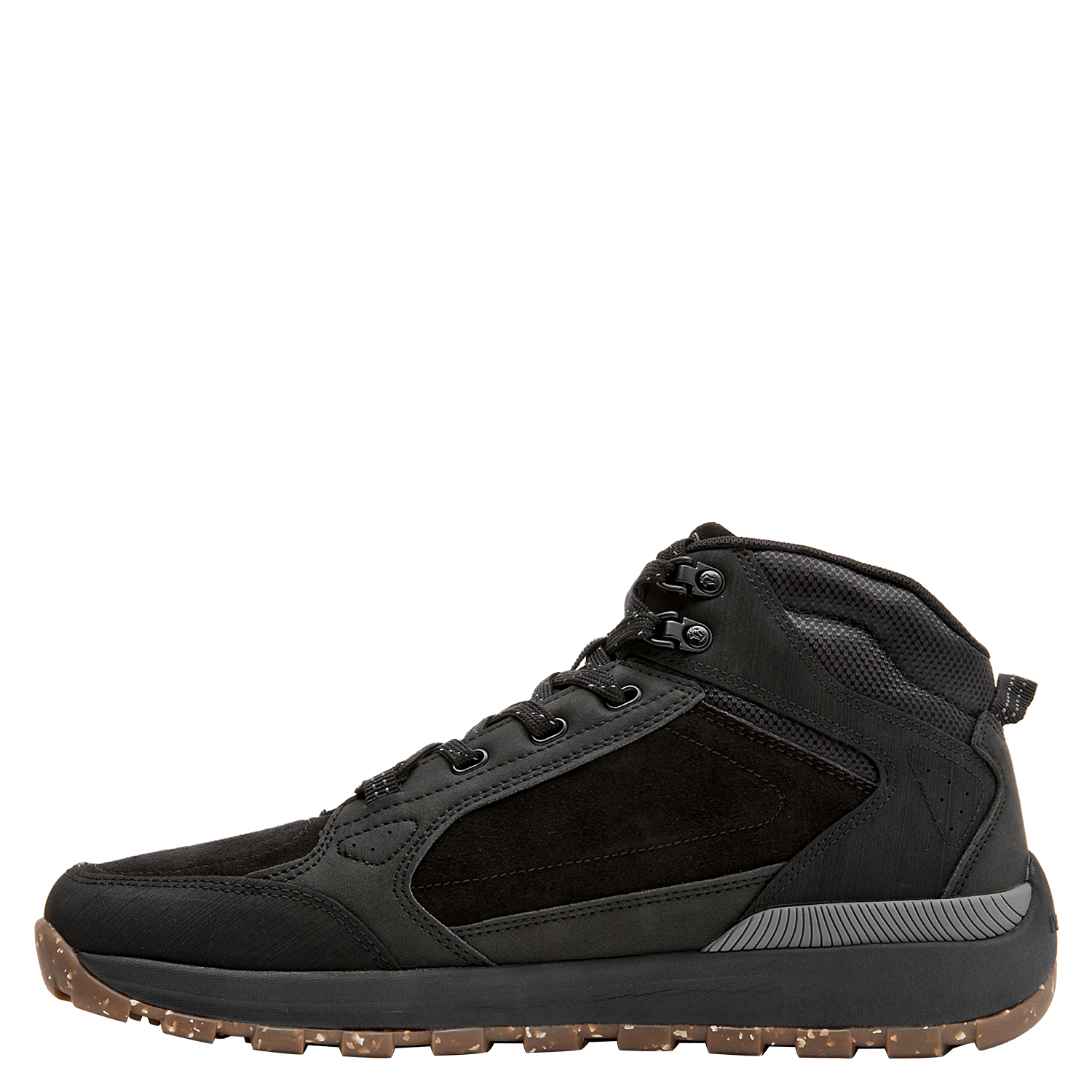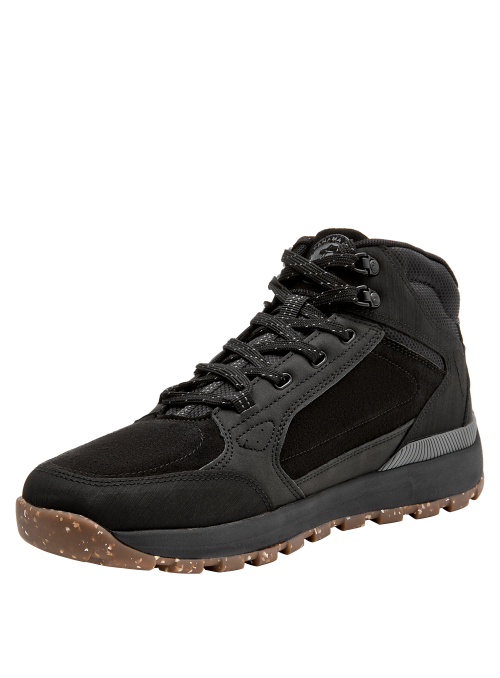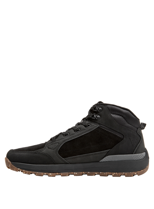 Zapato casual urbano para hombre en color negro, con punta cuadrada que aporta un look contemporáneo. Confeccionado en material sintético y forrado en mesh para una sensación respirable, integra una suela de taco plano de 5 cm que suma altura discreta y un perfil sólido. Terminaciones limpias y líneas sobrias lo hacen apto para el día a día y salidas informales.
