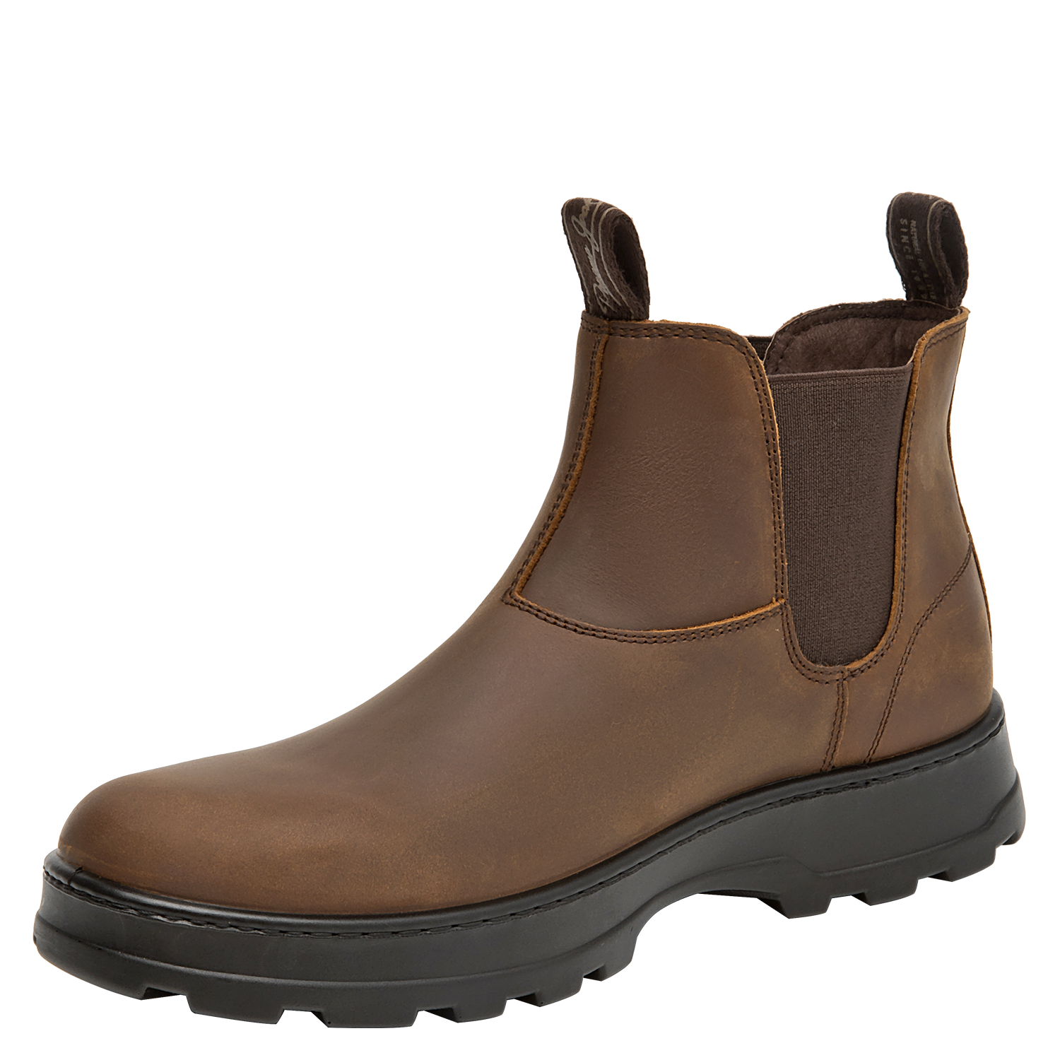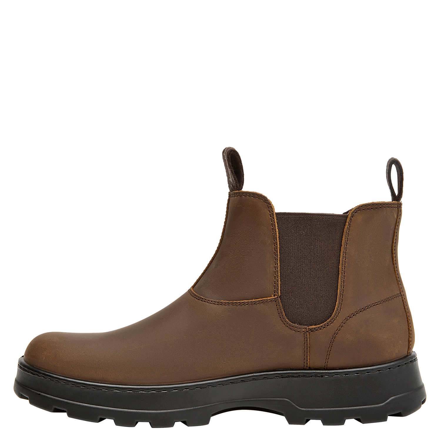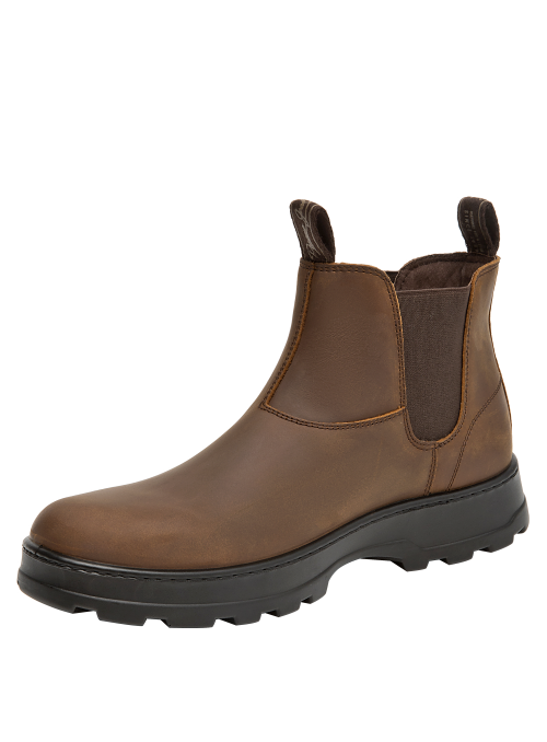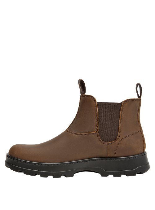 Botín urbano de cuero para hombre en color café, con punta redonda y suela plana de 4,5 cm. El exterior de cuero entrega un look clásico, mientras el forro de mesh ayuda a la ventilación. Su diseño limpio y versátil funciona en el día a día y en salidas casuales, con un perfil atemporal fácil de combinar.