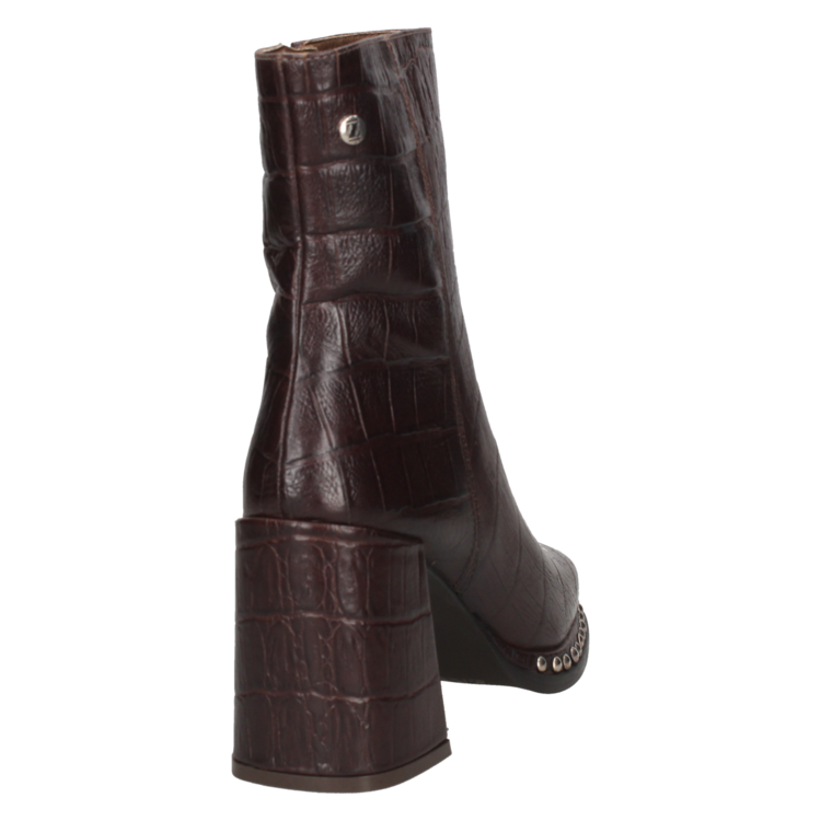 El botin de mujer de Zappa J301 es una pieza imprescindible para quienes buscan un diseño elegante y contemporáneo. Elaborado con 100% cuero, su acabado simula un patrón de piel de reptil, aportando un toque sofisticado y atrevido. El taco bloque alto de 10 cm proporciona estabilidad y comodidad, mientras que el detalle de tachuelas en el borde de la suela añade un carácter moderno y ligeramente rockero. Este botín se alinea perfectamente con la tendencia urbana y chic, ideal para renovar tu guardarropa con estilo vanguardista.