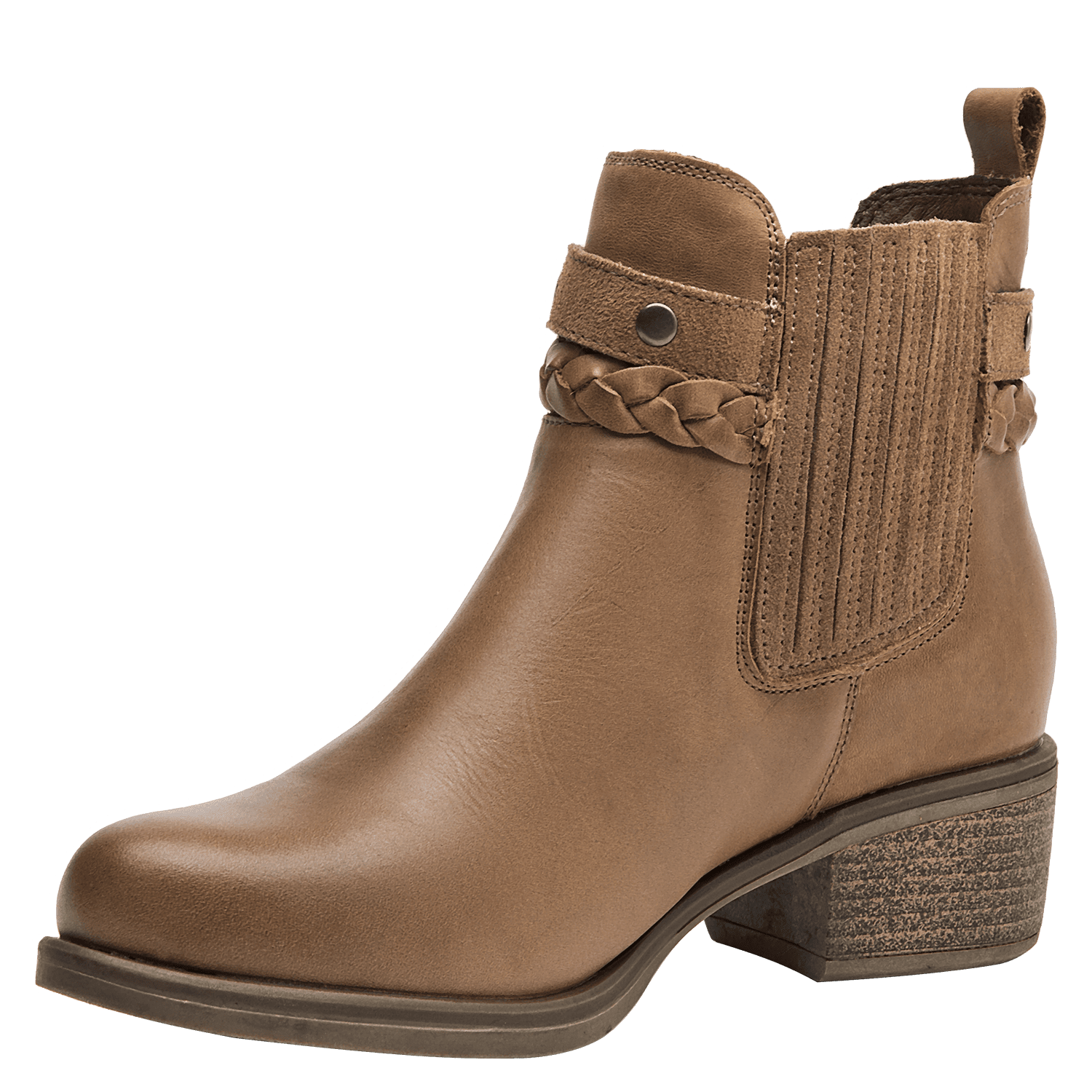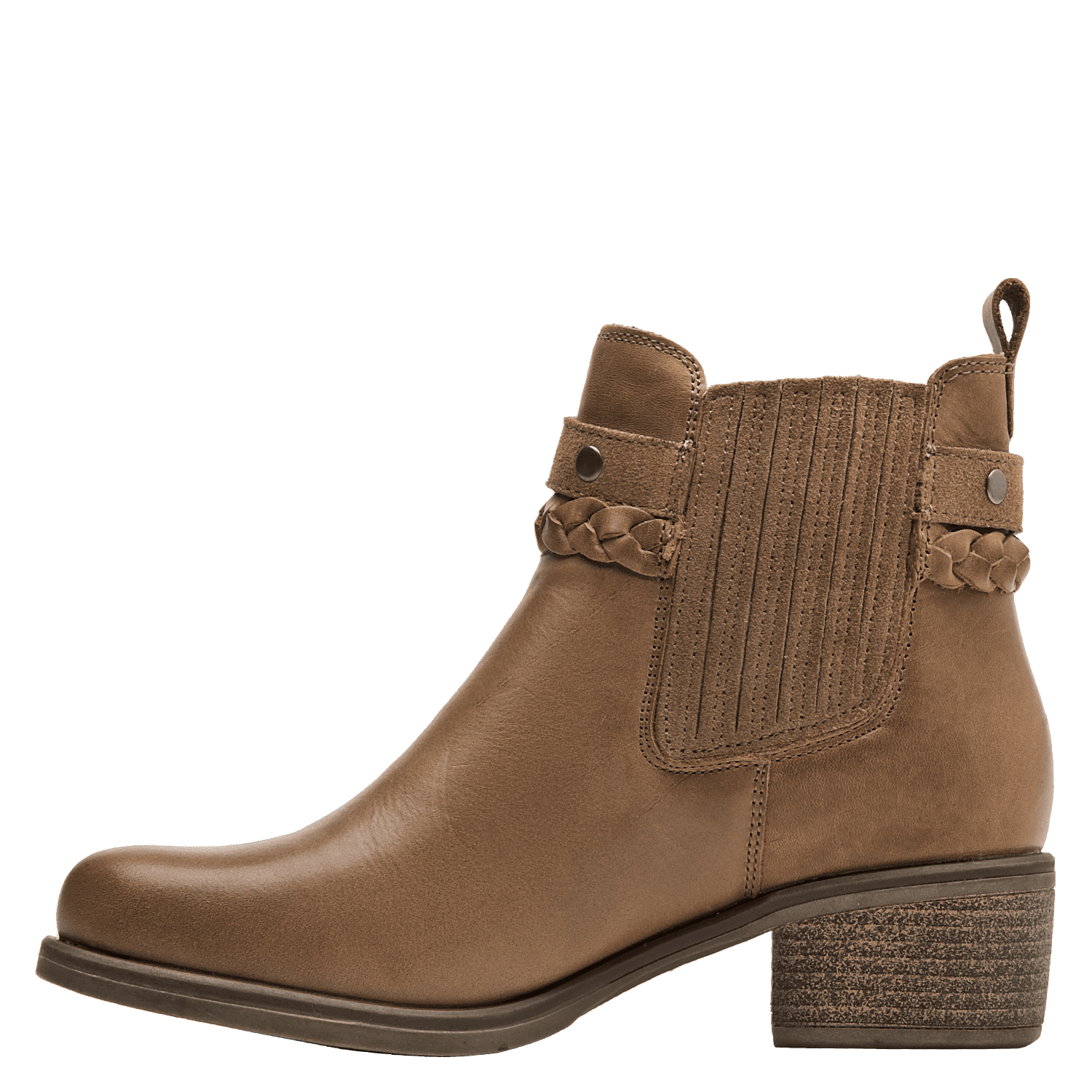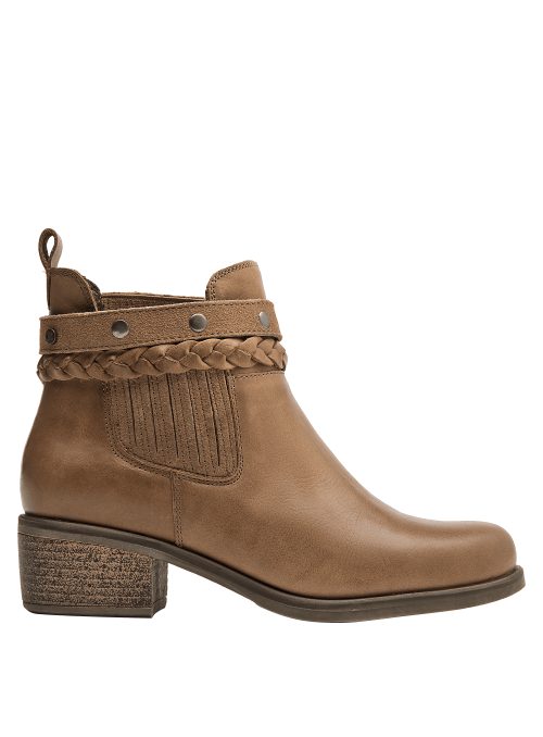 El botín chelsea de mujer de Bruno Rossi L674 es la elección perfecta para quienes buscan un calzado que combine elegancia y comodidad. Con un diseño sofisticado y casual, este botín es ideal para completar cualquier look otoñal o invernal. Su tacón ancho de altura media de 5 cm proporciona estabilidad y confort, mientras que el empeine liso de cuero añade un toque refinado. La tira decorativa trenzada alrededor del tobillo, junto con los detalles metálicos en forma de tachuelas, le confieren un estilo moderno y bohemio. Además, el elástico lateral y la lengüeta trasera facilitan un calce rápido y cómodo, asegurando una experiencia de uso inigualable.