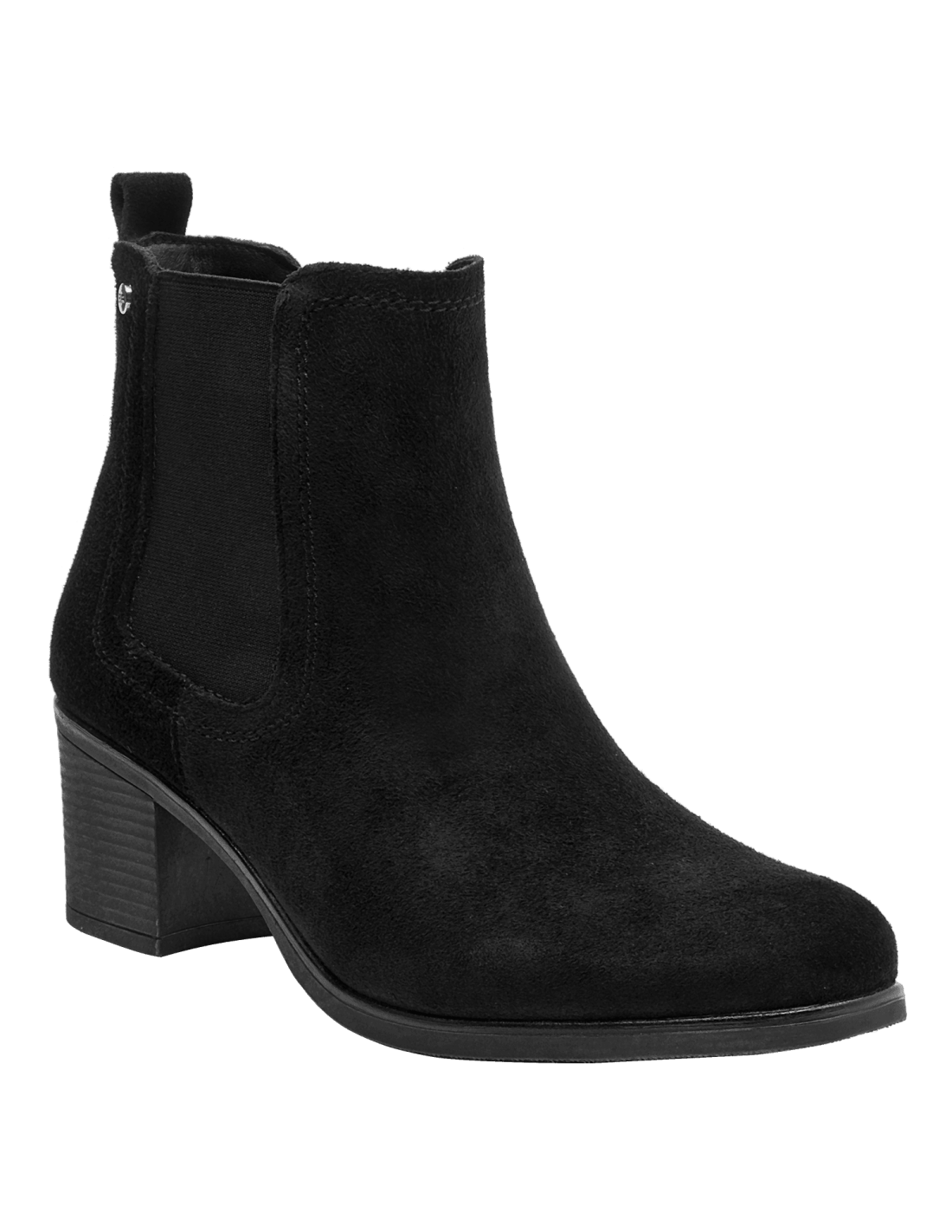 Descubre el botín Chelsea de mujer de Bruno Rossi L711, una pieza que combina elegancia y comodidad en un diseño clásico de estilo chelsea. Confeccionado en un material similar al cuero gamuza, este botín ofrece una textura suave y un look sofisticado. Su taco cubano de 5 cm proporciona una altura media perfecta para un caminar estable y seguro. La ausencia de cordones, junto con los paneles elásticos laterales y la lengüeta en el tacón, facilitan su colocación, mientras que la punta redondeada asegura comodidad durante todo el día. Este diseño versátil es ideal para cualquier armario moderno.