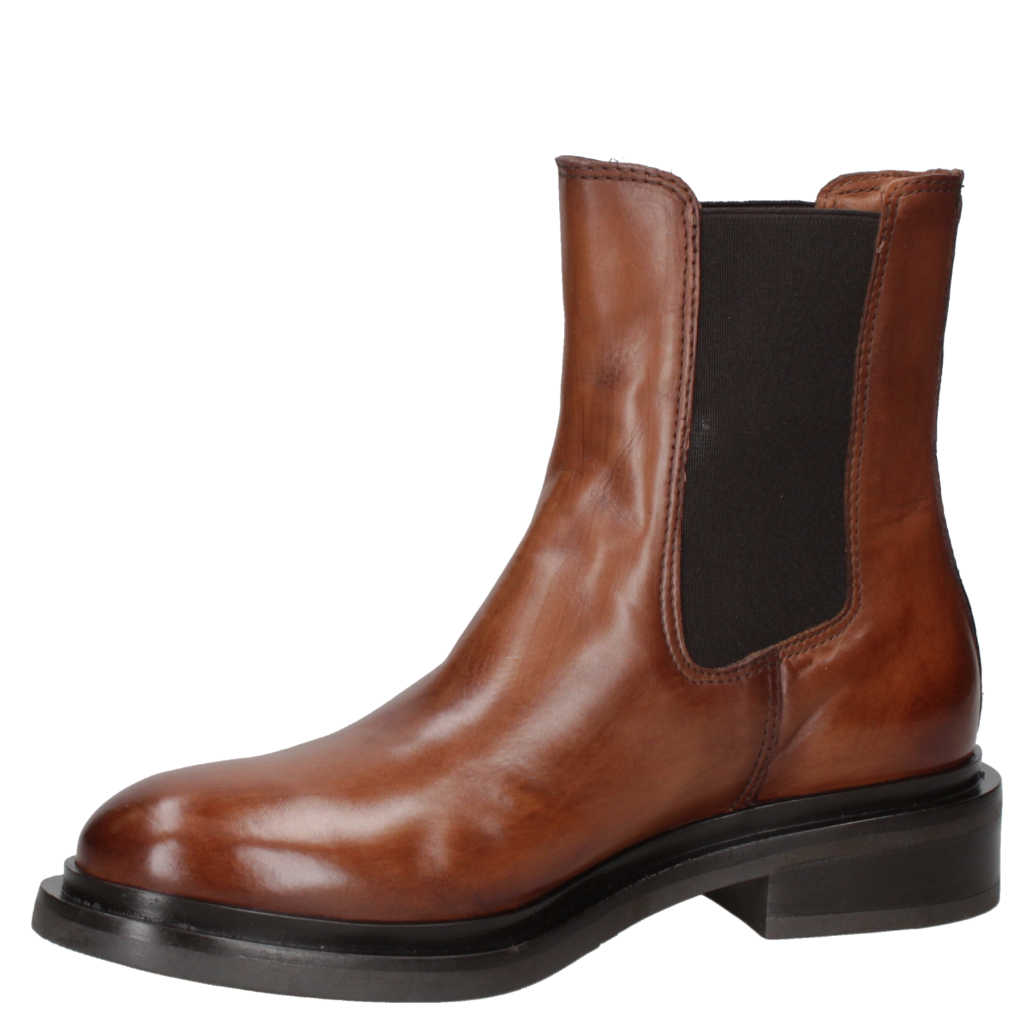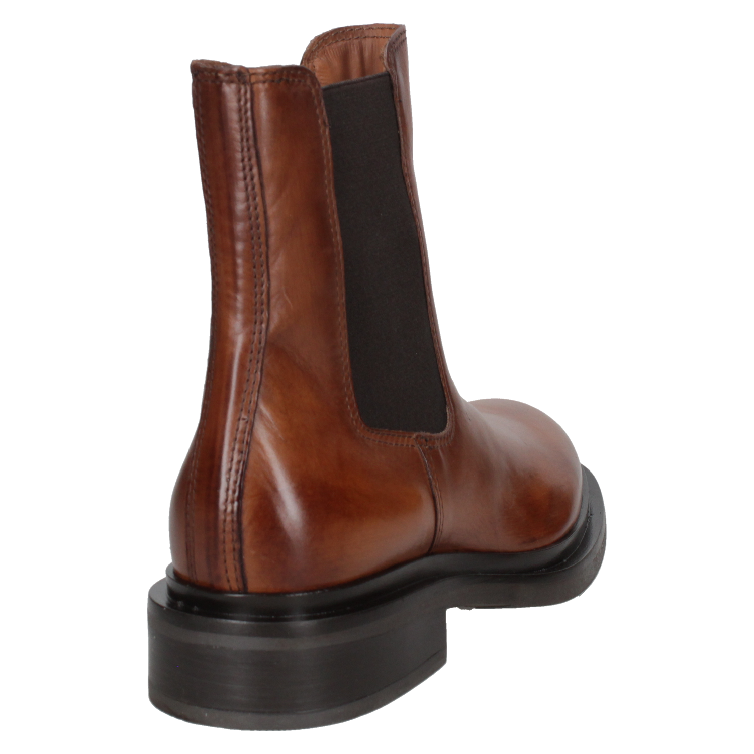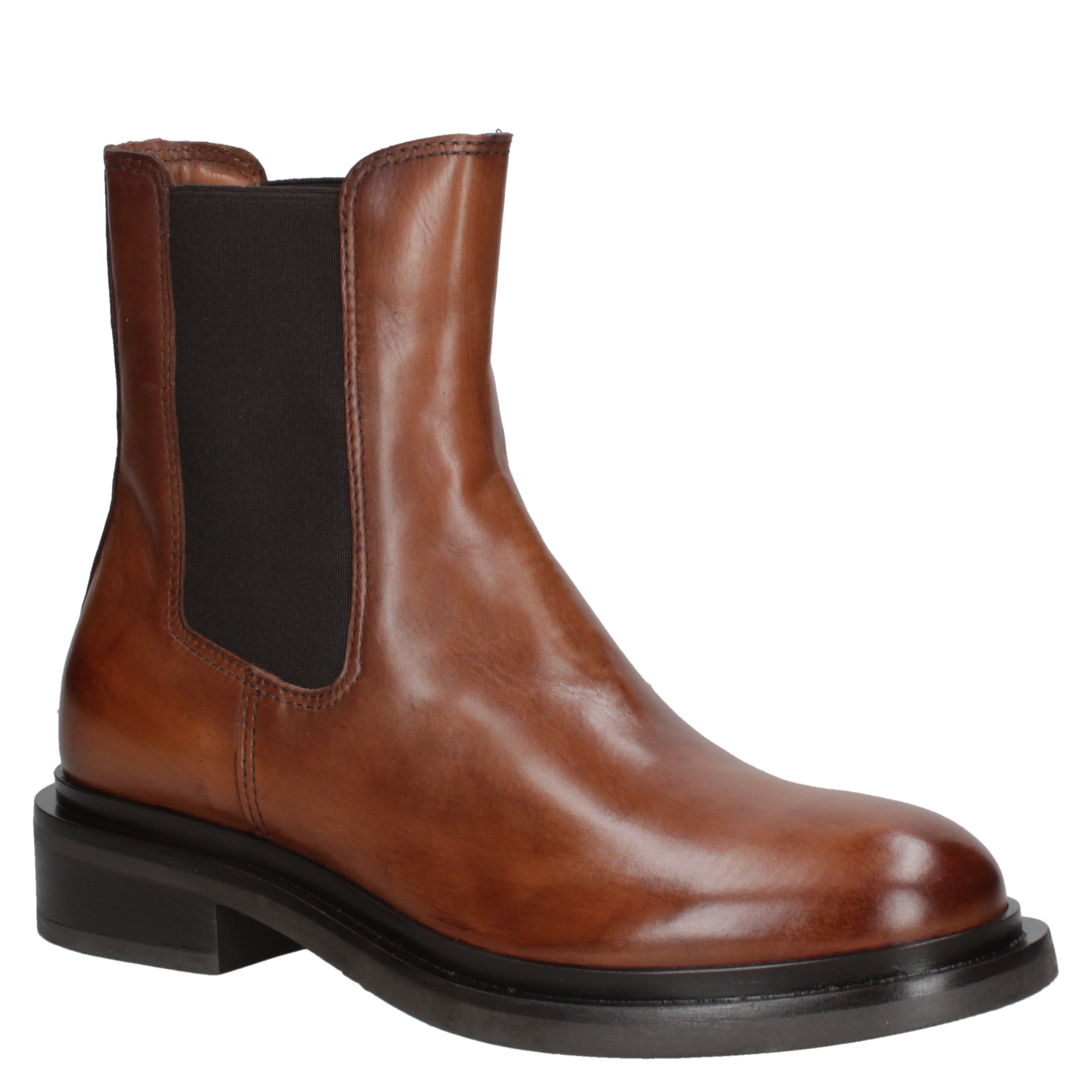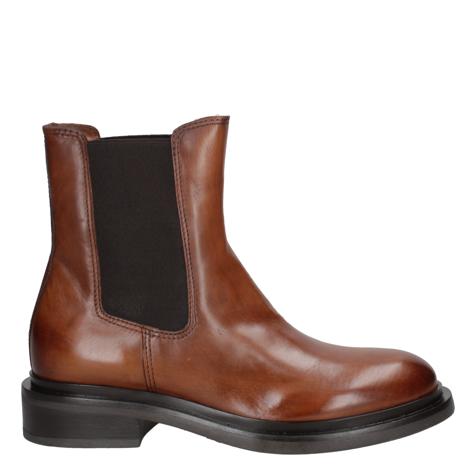 Botín de cuero camel para mujer, diseño Chelsea clásico, acabado liso y versátil, fácil de combinar.