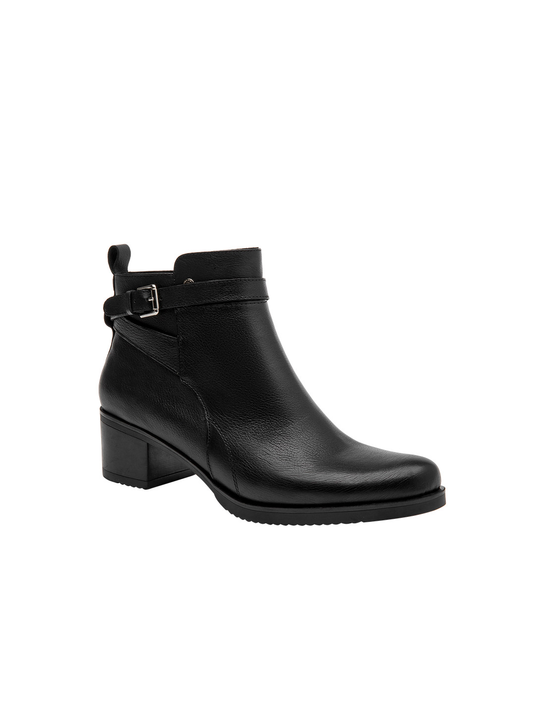 Descubre la elegancia atemporal del botín de mujer de Pollini L217, una pieza que combina diseño clásico con tecnología avanzada. Este botín presenta un acabado en cuero fino que exuda sofisticación, mientras que su tacón ancho de altura media (5.5 cm) ofrece estabilidad y comodidad. La correa ajustable con hebilla metálica alrededor del tobillo añade un toque decorativo sutil, complementando la forma ligeramente redondeada de la punta para una versatilidad sin igual.
