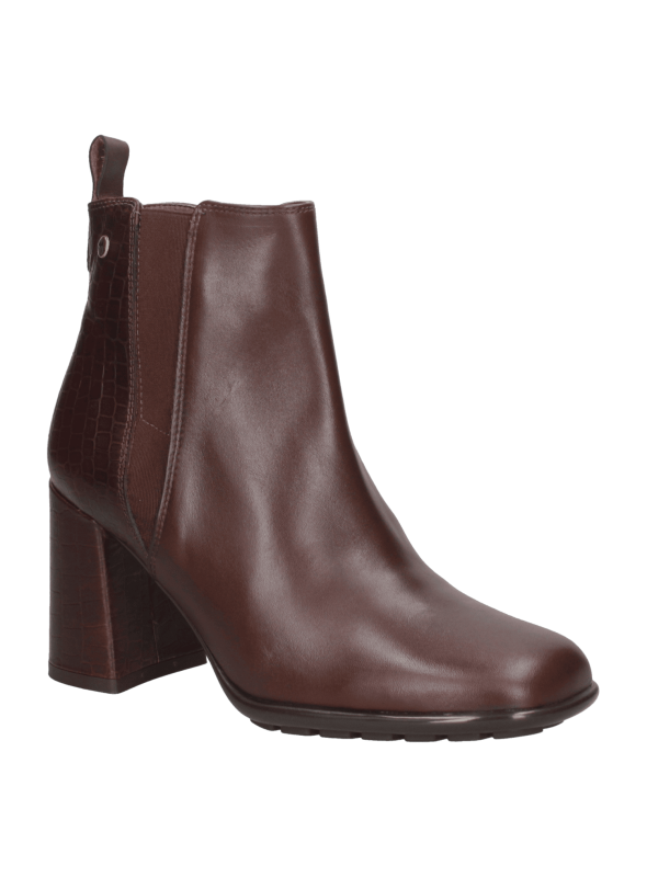 El botín Chelsea de mujer de Mingo L445 presenta un diseño clásico y elegante, ideal para quienes buscan combinar estilo y comodidad. Con un tacón cuadrado de 8 cm, considerado taco medio, ofrece estabilidad sin comprometer la altura. Las bandas laterales elásticas no solo facilitan el calce, sino que también añaden un toque moderno a este botín de cuero. El detalle de réplica de piel de reptil en la parte trasera aporta un elemento distintivo que lo hace destacar sin ser extravagante.