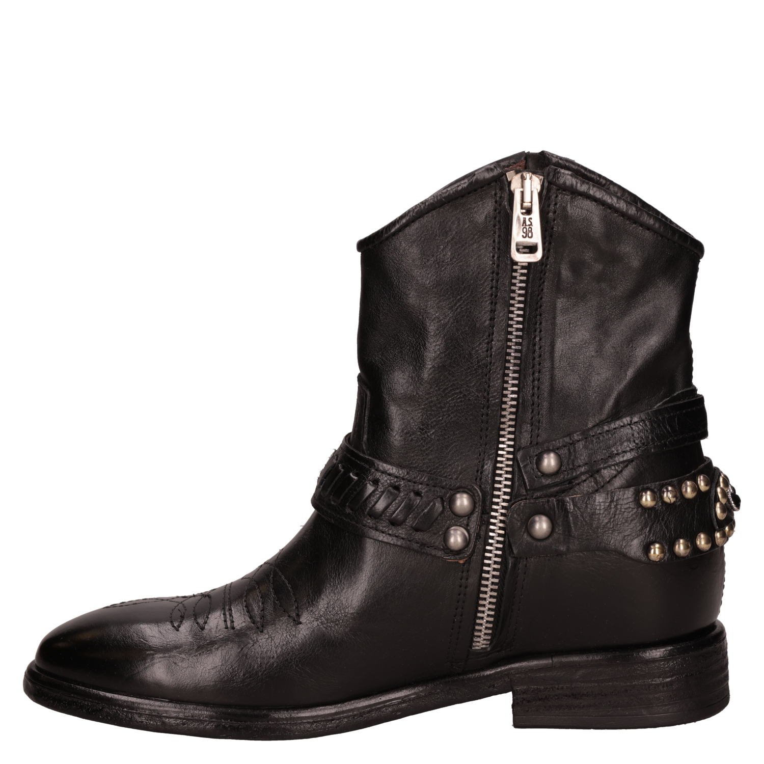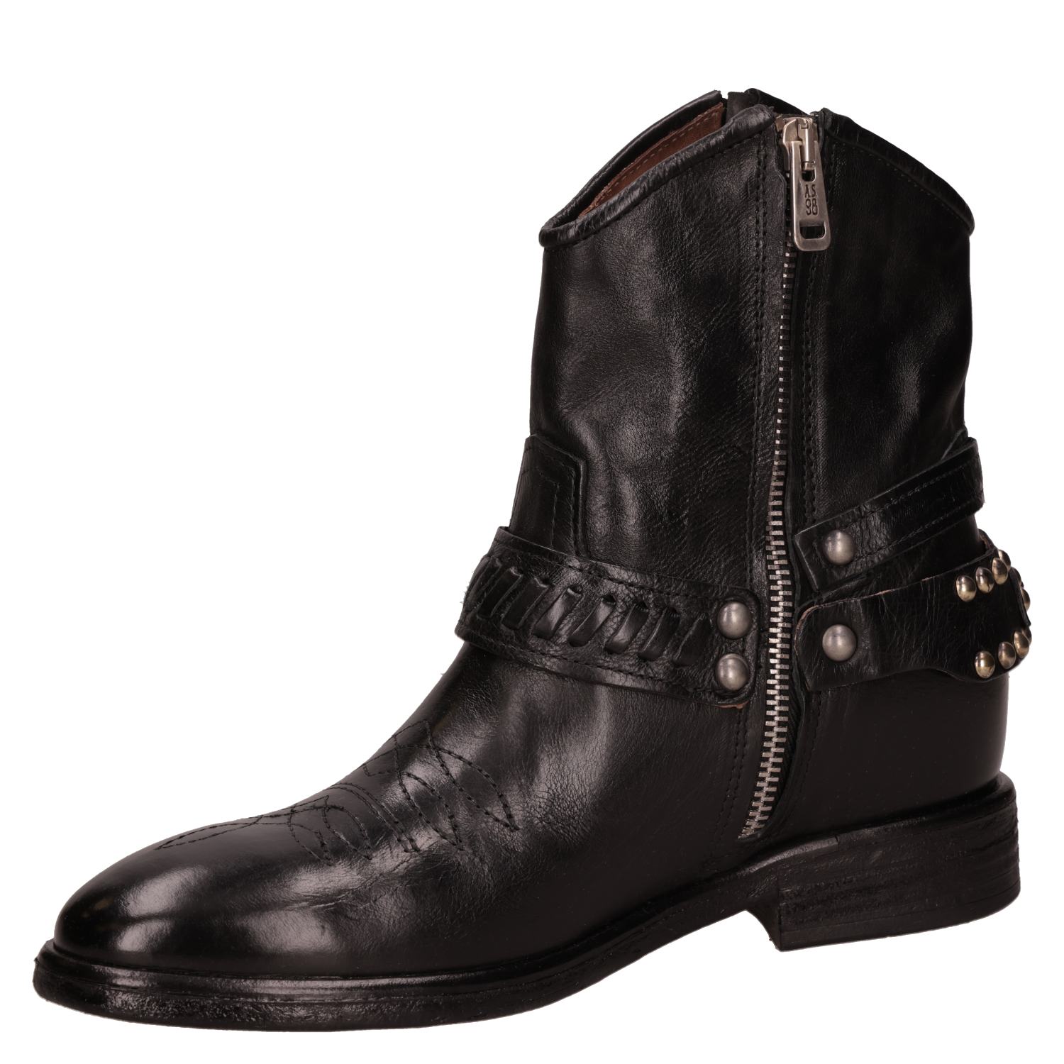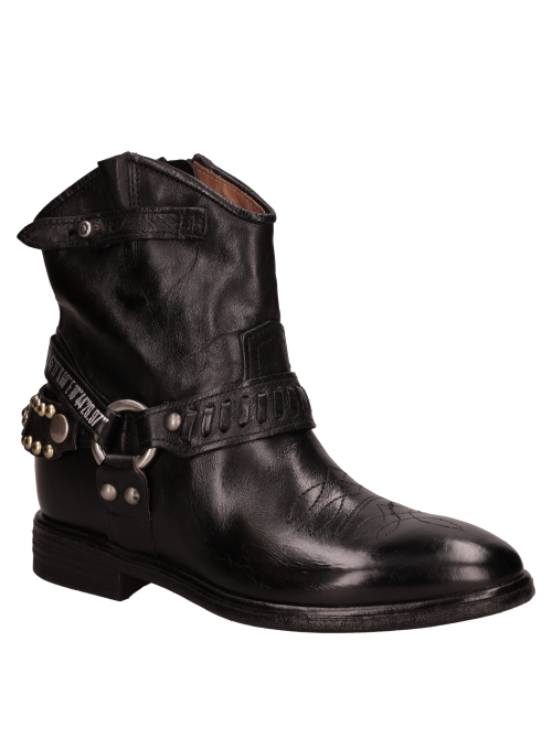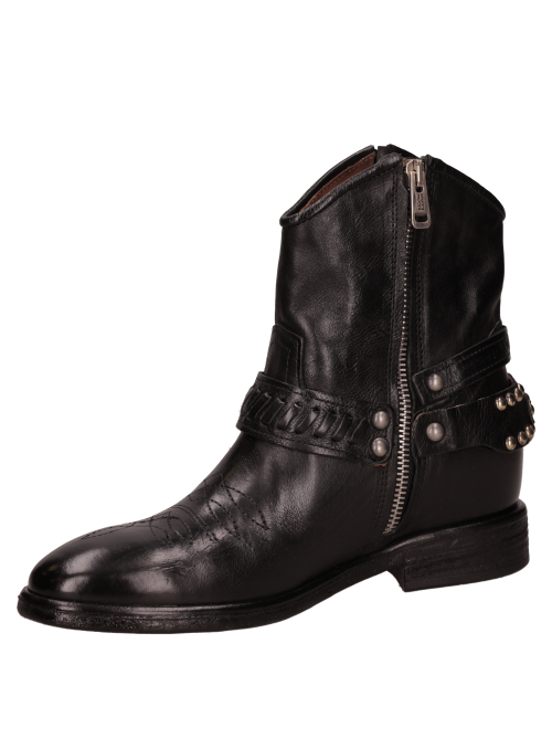 Botín vaquero de cuero para mujer en color negro, de silueta limpia y punta redonda. Incorpora taco bloque de 3 cm que aporta estabilidad y un look western para el día a día. Forro de cuero para una sensación suave, con terminaciones prolijas y costuras discretas que realzan su estética minimalista. Un básico atemporal que funciona tanto en tenidas casuales como semi-formales. Combínalo con jeans rectos y polera básica más una chaqueta liviana; con falda midi y blazer; o con vestido largo y un abrigo de paño.