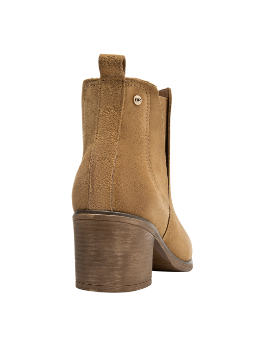Zapato de cuero para mujer de estilo contemporáneo en color camel, con punta puntiaguda y taco bloque de 6 cm que brinda una elevación estable. La capellada de cuero luce prolija y resistente, mientras el forro sintético/textil aporta comodidad interna. Su silueta limpia y acabado uniforme lo hacen versátil para distintas ocasiones.