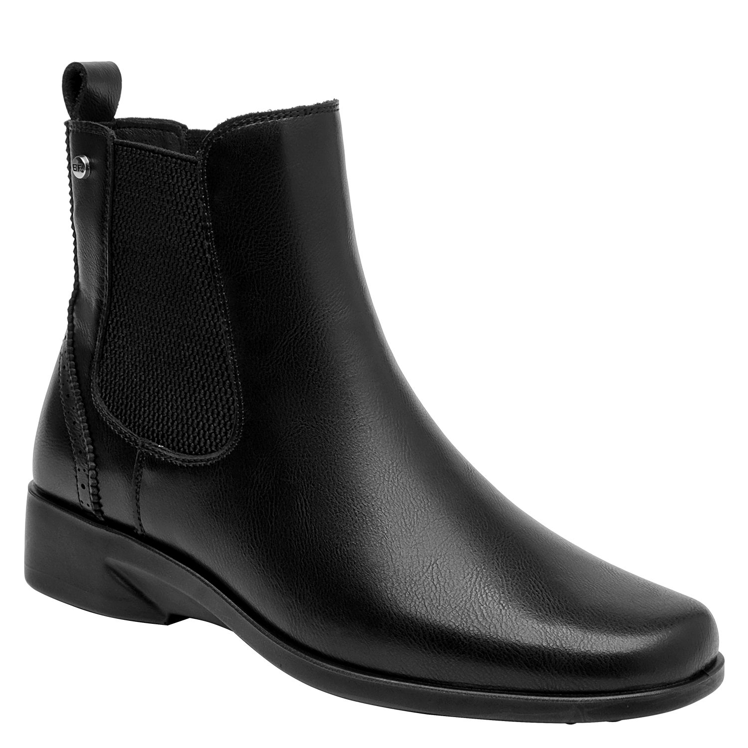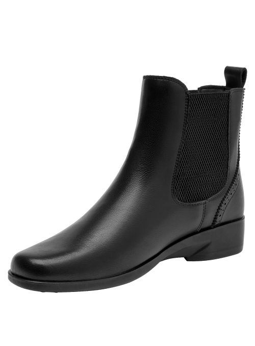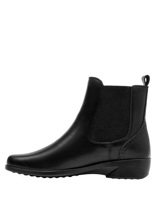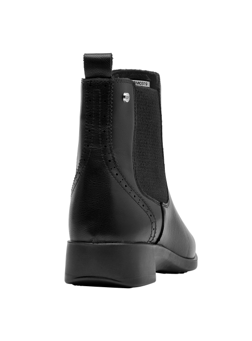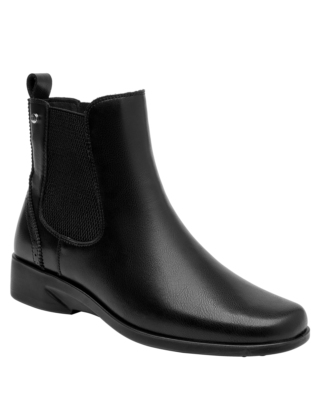 Zapato plano de cuero para mujer en color negro, de diseño minimalista con punta cuadrada y taco de 3 cm. La capellada en cuero aporta estructura, mientras el forro sintético/textil brinda una sensación suave al contacto. Perfil limpio y versátil que funciona tanto en tenidas casuales como en estilismos más pulidos.