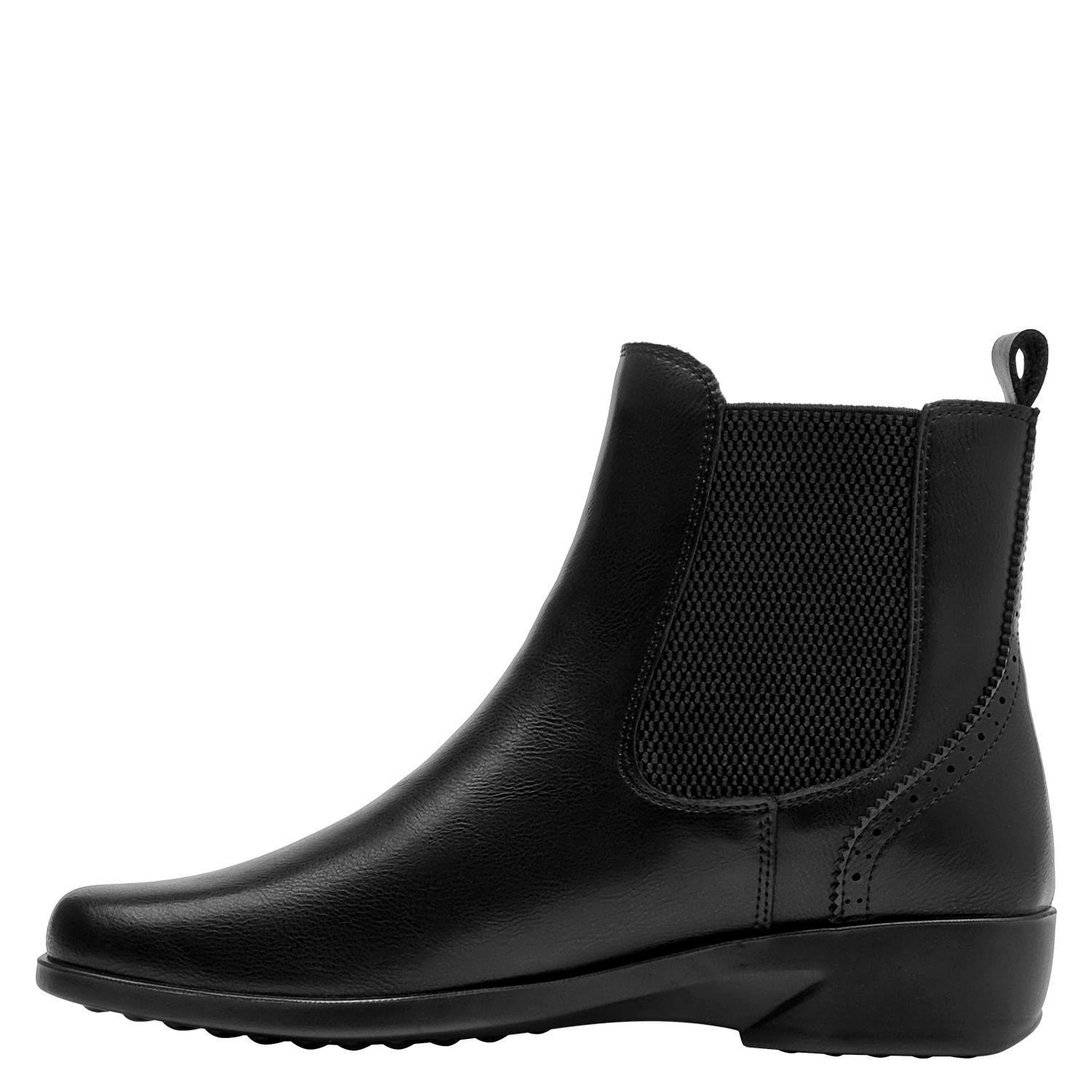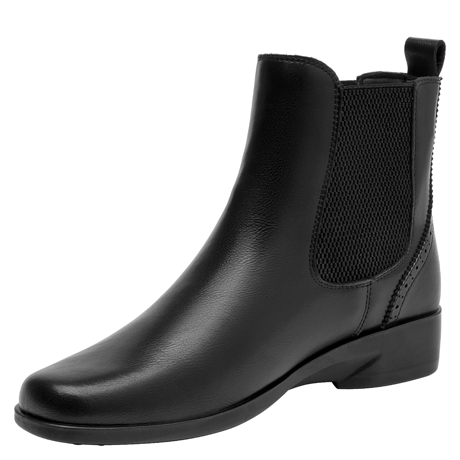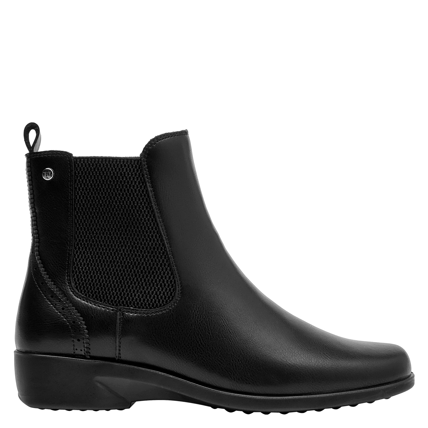 Zapato plano de cuero para mujer en color negro, de diseño minimalista con punta cuadrada y taco de 3 cm. La capellada en cuero aporta estructura, mientras el forro sintético/textil brinda una sensación suave al contacto. Perfil limpio y versátil que funciona tanto en tenidas casuales como en estilismos más pulidos.
