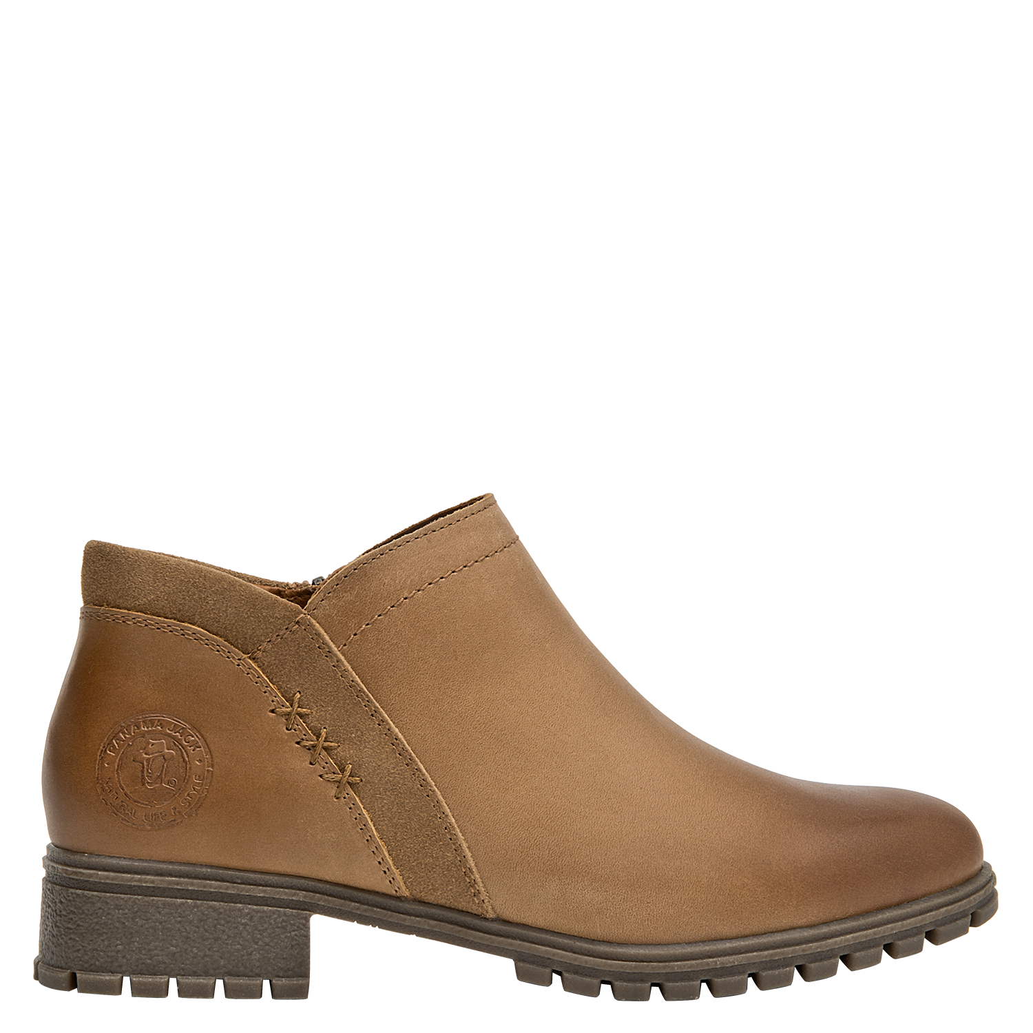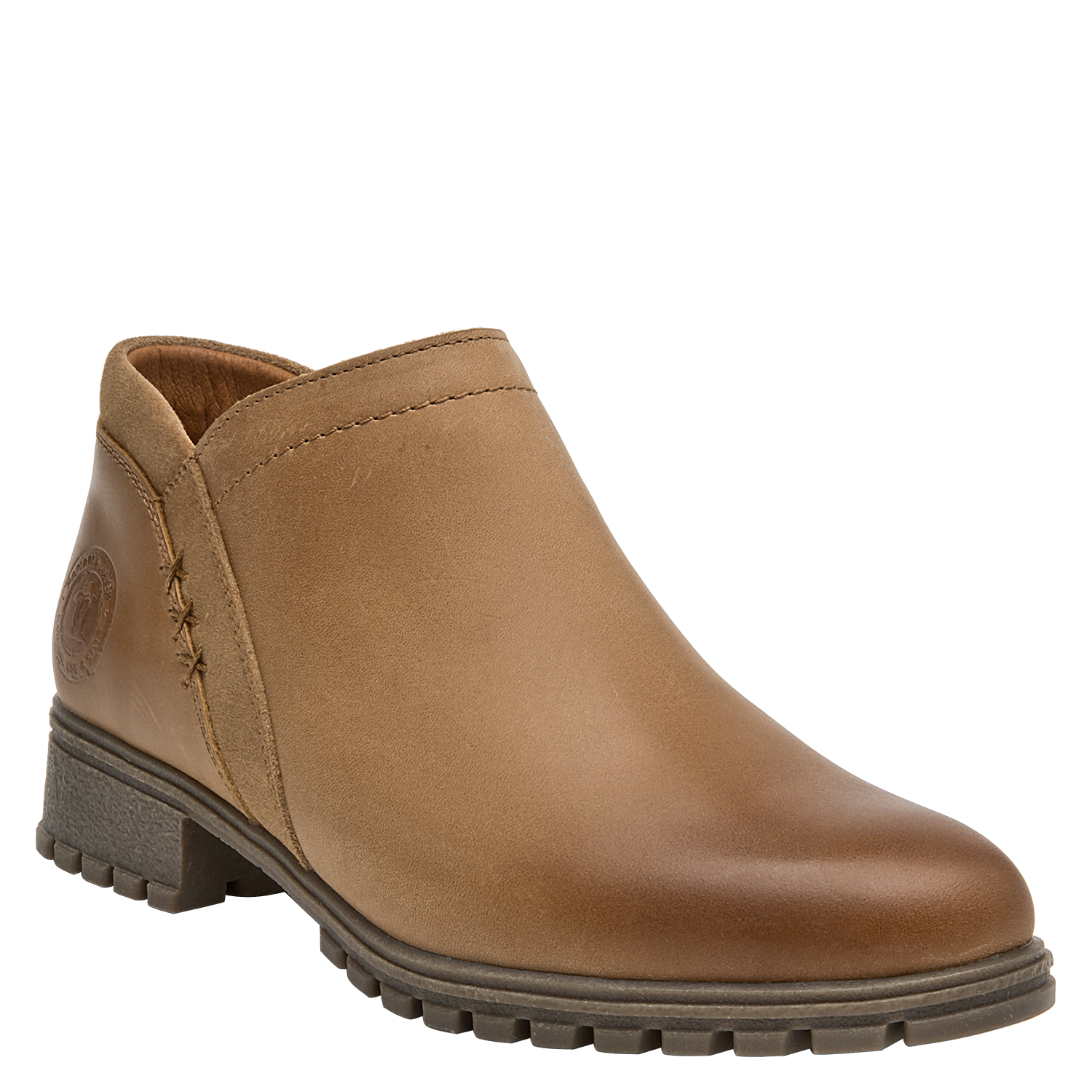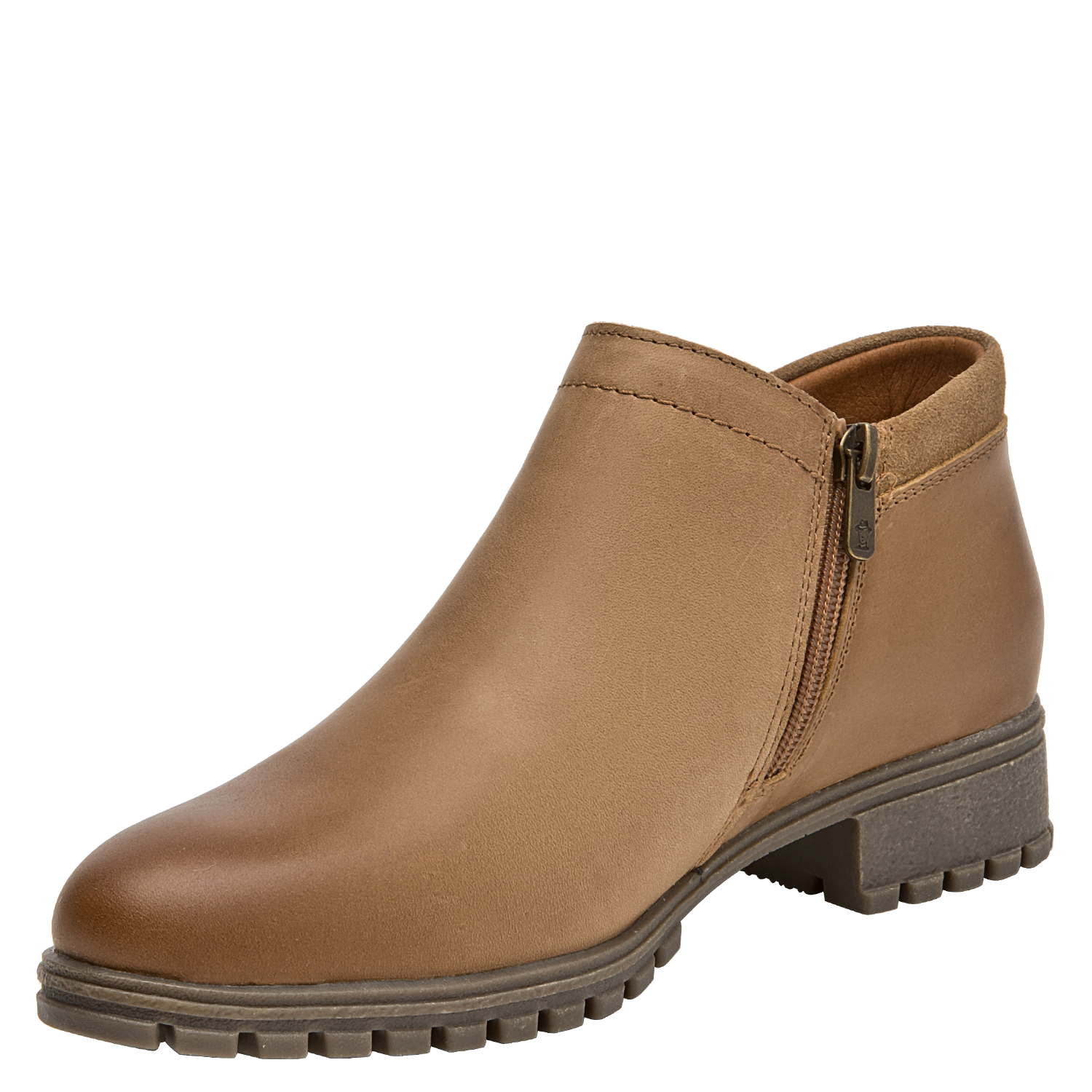 Botín de cuero para mujer en color camel, de estilo casual, con punta redonda y taco bloque de 3,6 cm. Su construcción en cuero y forro mixto textil/PU aporta una sensación agradable al contacto, mientras la altura moderada del taco favorece una pisada estable para el día a día. Un diseño versátil y atemporal que complementa distintos looks sin recargar, ideal para transiciones entre temporadas.