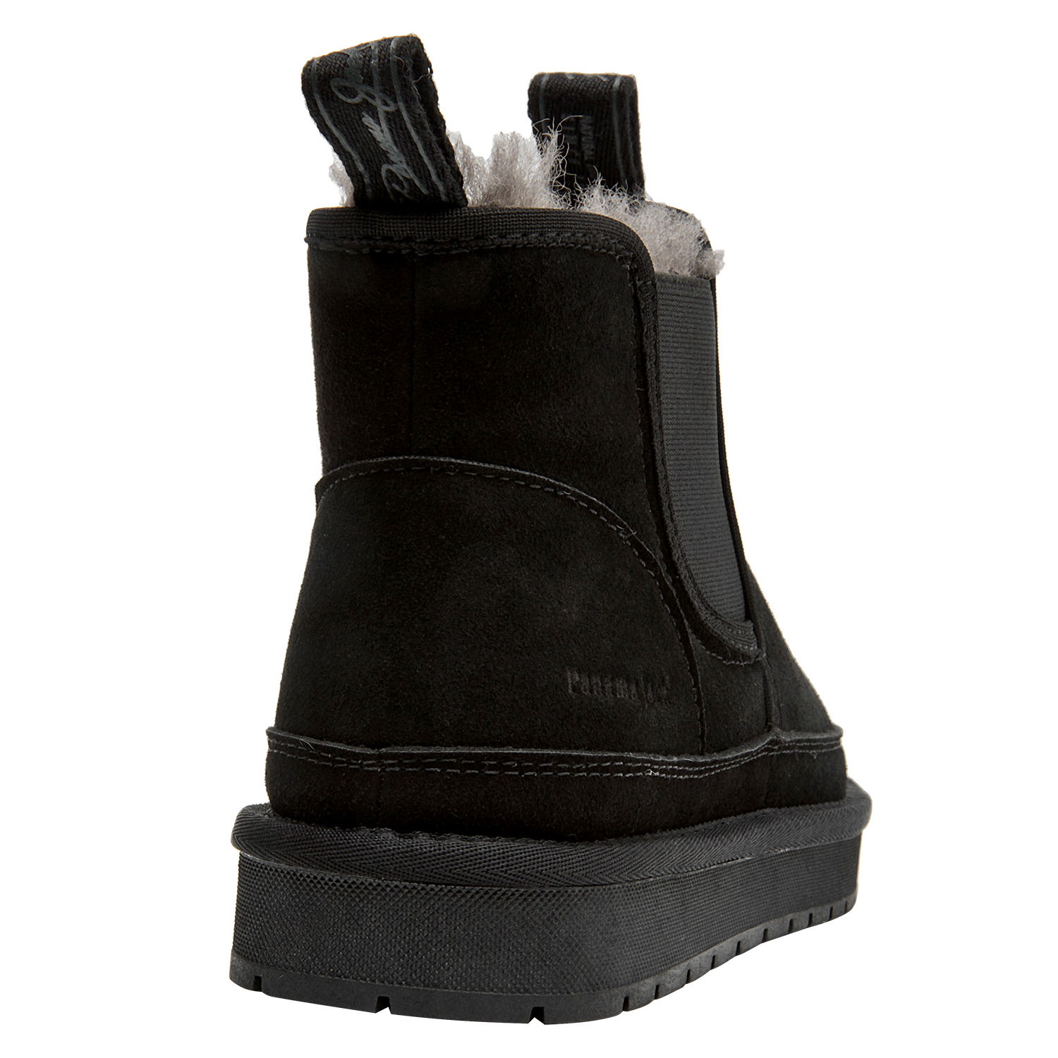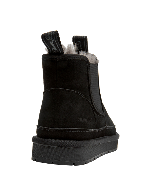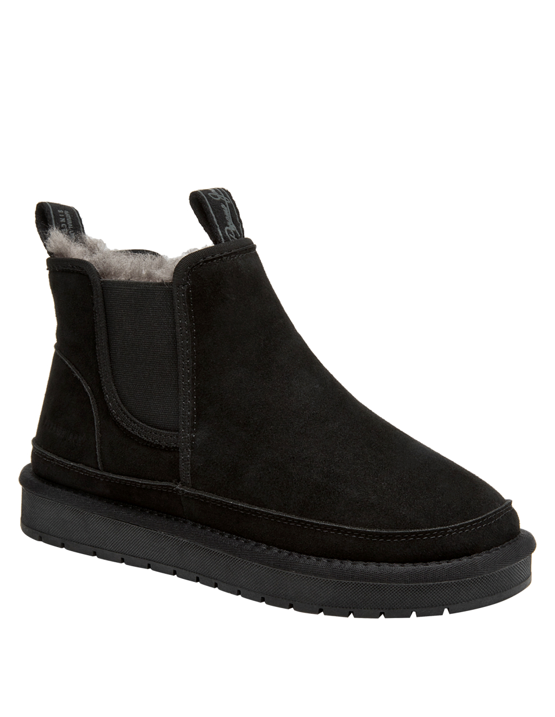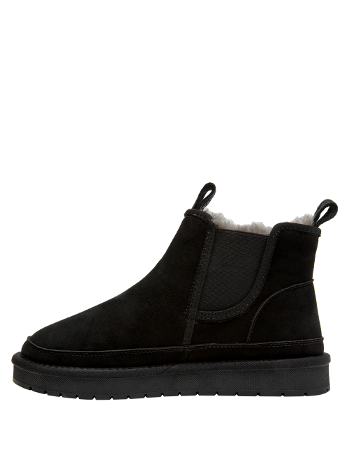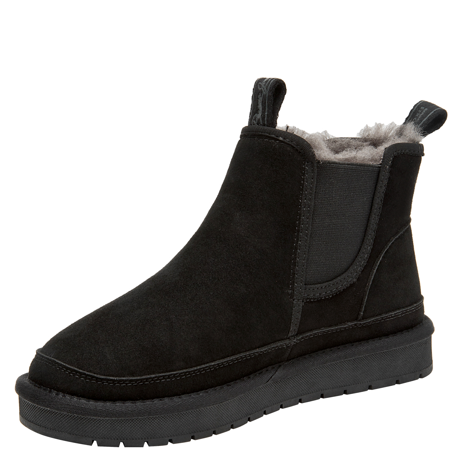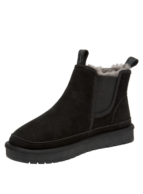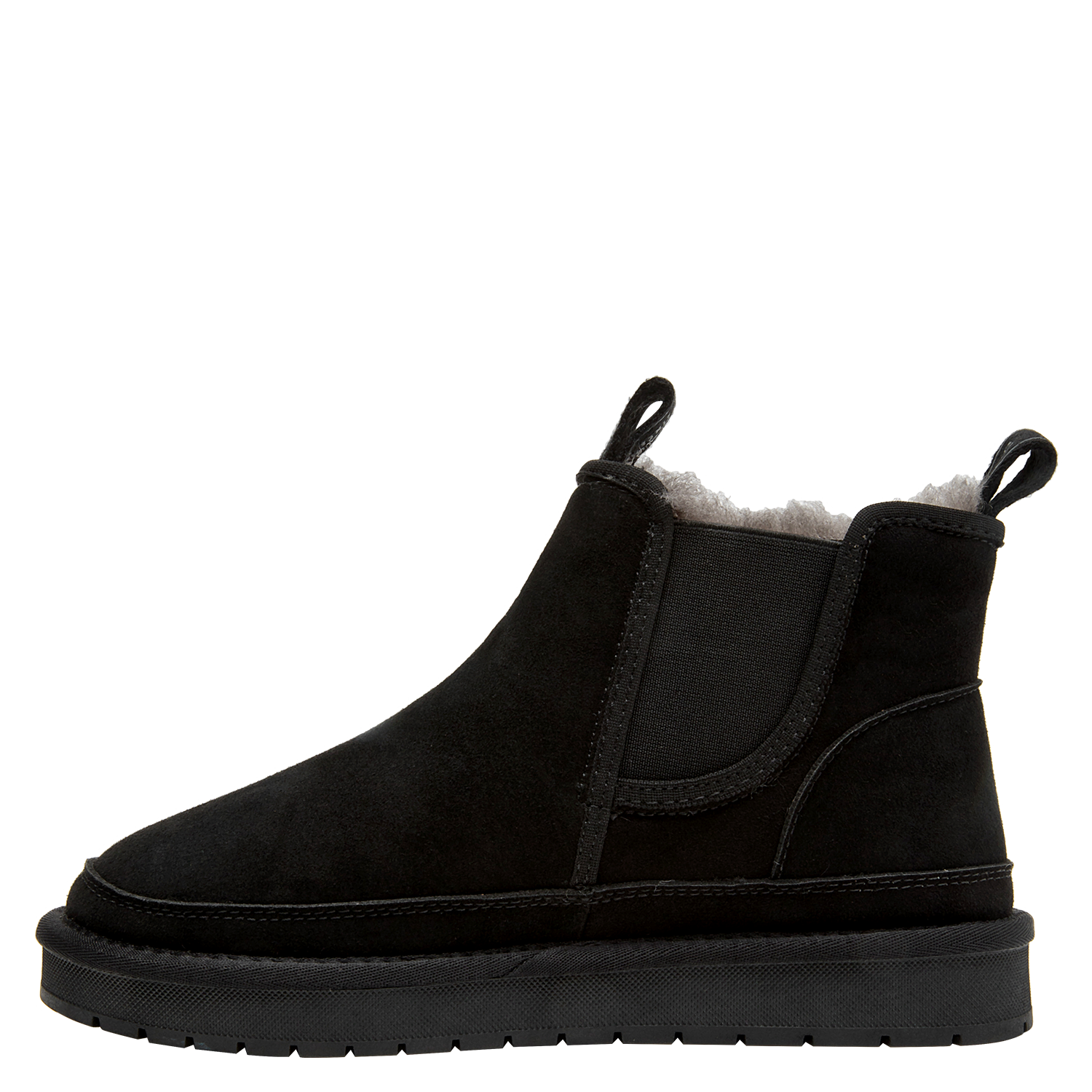 Botín casual de mujer en color negro, confeccionado en material sintético de acabado suave. Incorpora forro textil con pelo, punta redonda y taco plano de 2,5 cm que aporta comodidad en el uso diario. Su silueta limpia y perfil bajo lo vuelven versátil para distintas ocasiones, manteniendo un estilo funcional y actual.