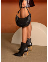 Conquista cada paso con nuestros elegantes botines de cuero negro, diseñados para la mujer vanguardista. Su punta puntiaguda y el espectacular taco fantasía de 8.5 cm añaden un toque audaz a cualquier look, convirtiéndolos en la elección perfecta para la temporada. El acabado mate resalta la calidad del cuero, mientras que el diseño contemporáneo asegura que siempre estés a la moda. Combina estos botines con un vestido ajustado o unos jeans de corte recto para un estilo actual y sofisticado.