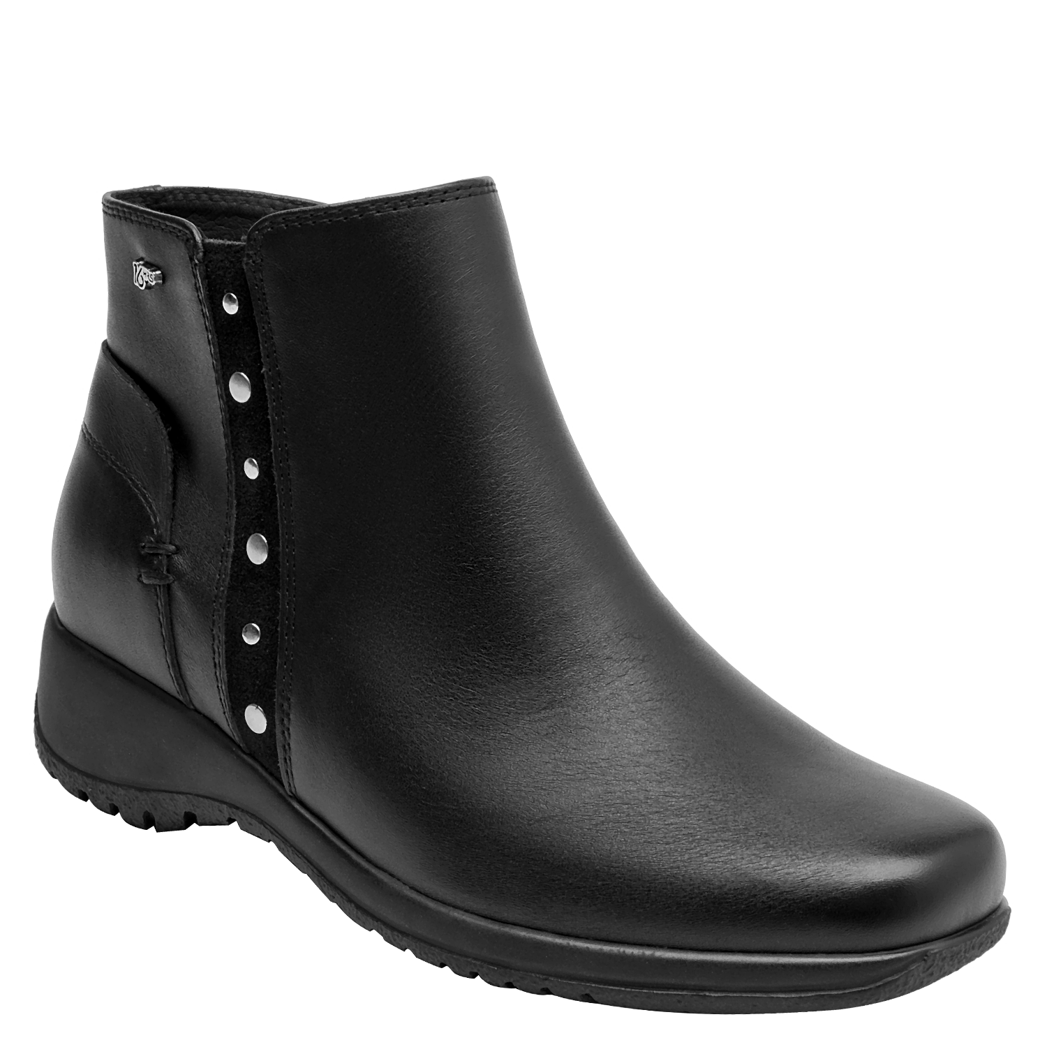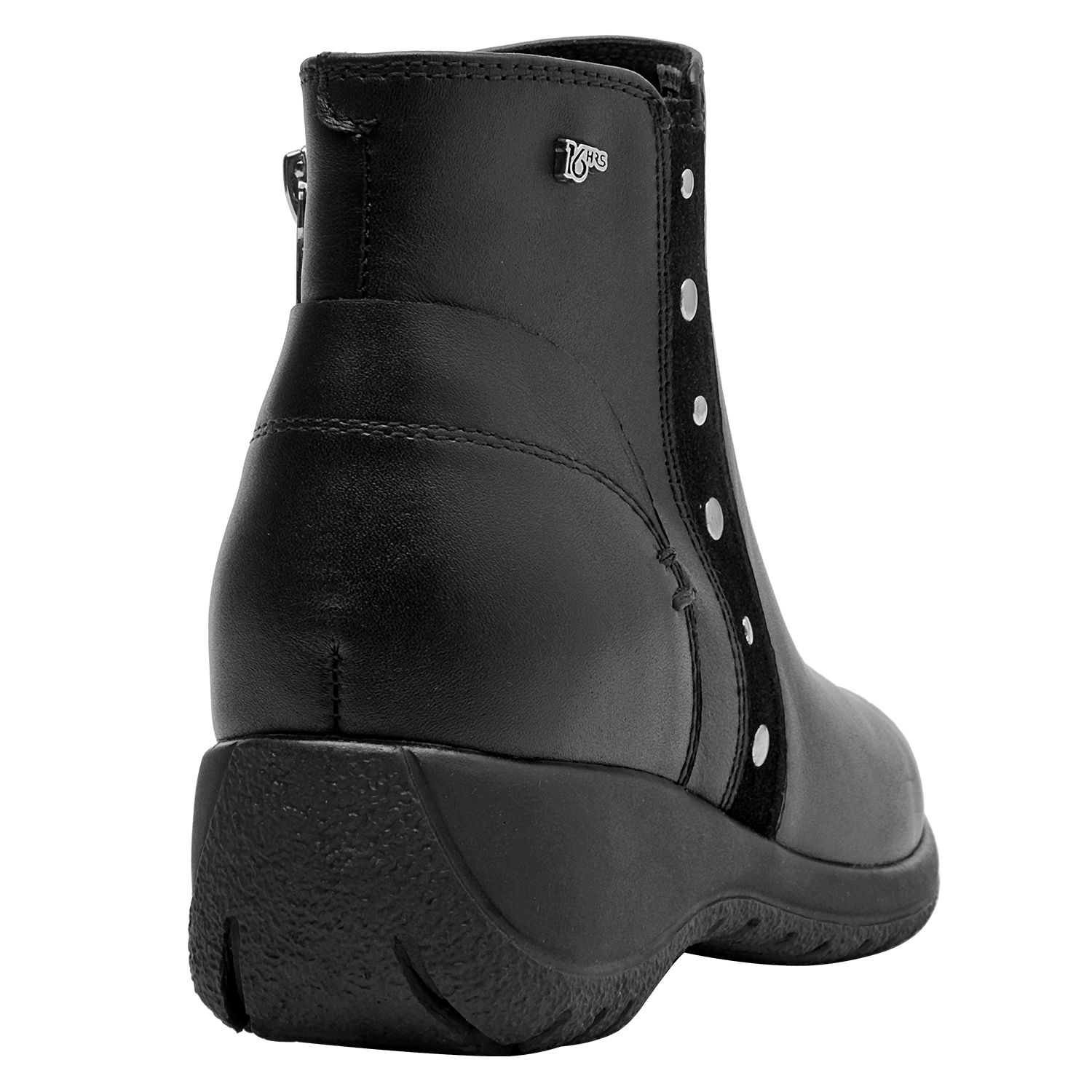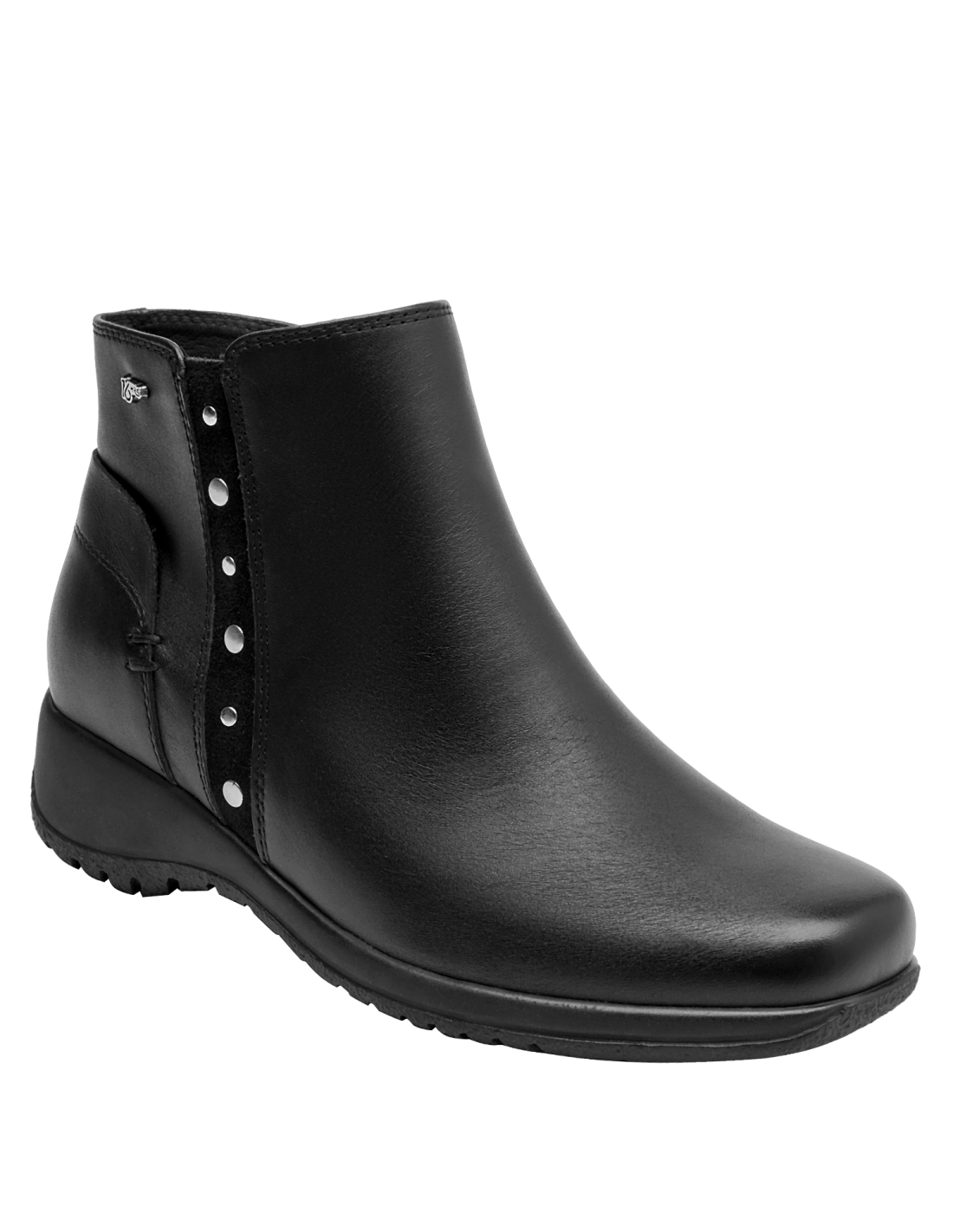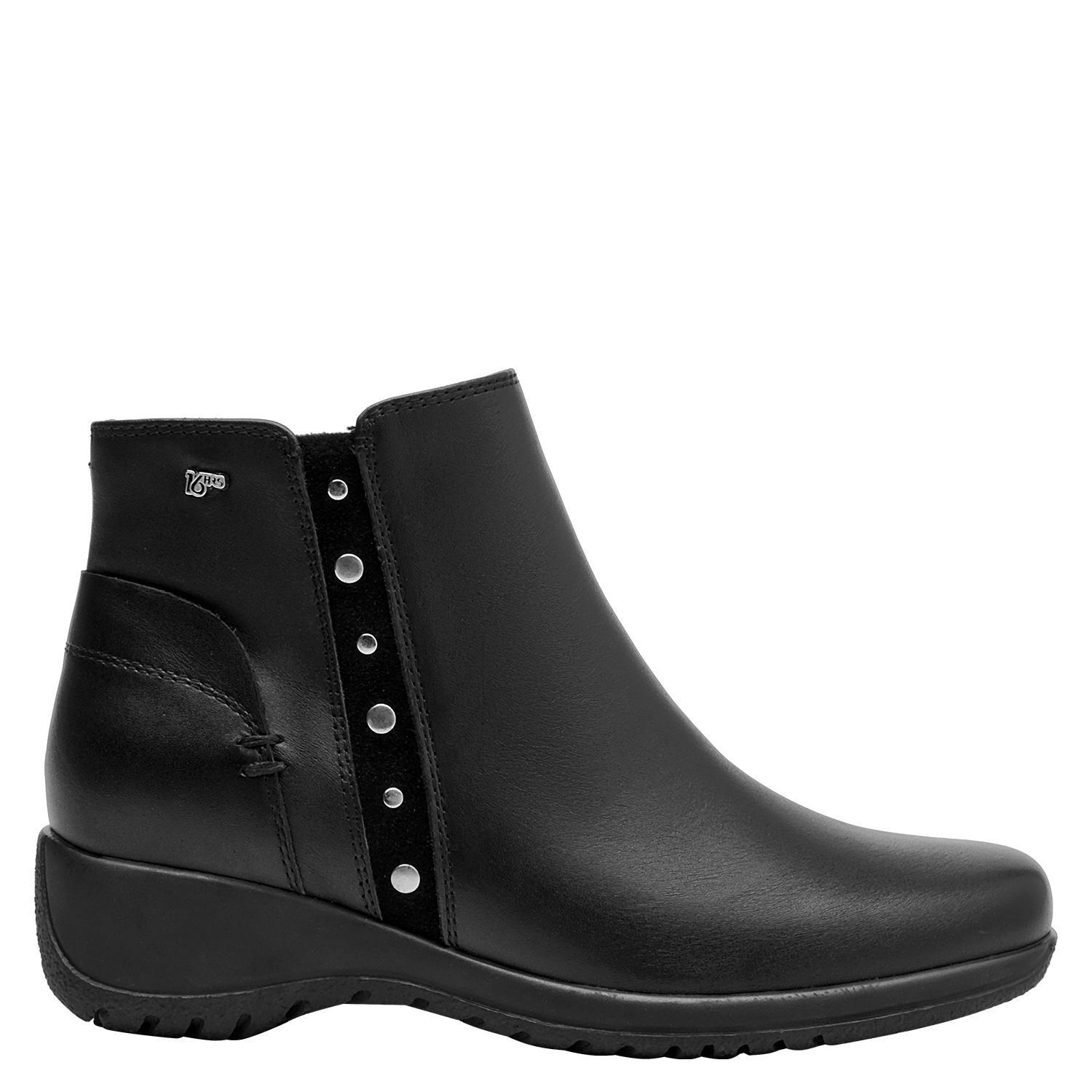 Botín de cuero para mujer de estilo urbano en color negro, con punta redonda y taco bloque de 4.5 cm. Presenta un acabado liso con costuras discretas y forro textil que aporta comodidad al contacto. Su silueta equilibrada y la altura del taco favorecen el uso diario, entregando una pisada confiable y un look pulido para múltiples ocasiones.