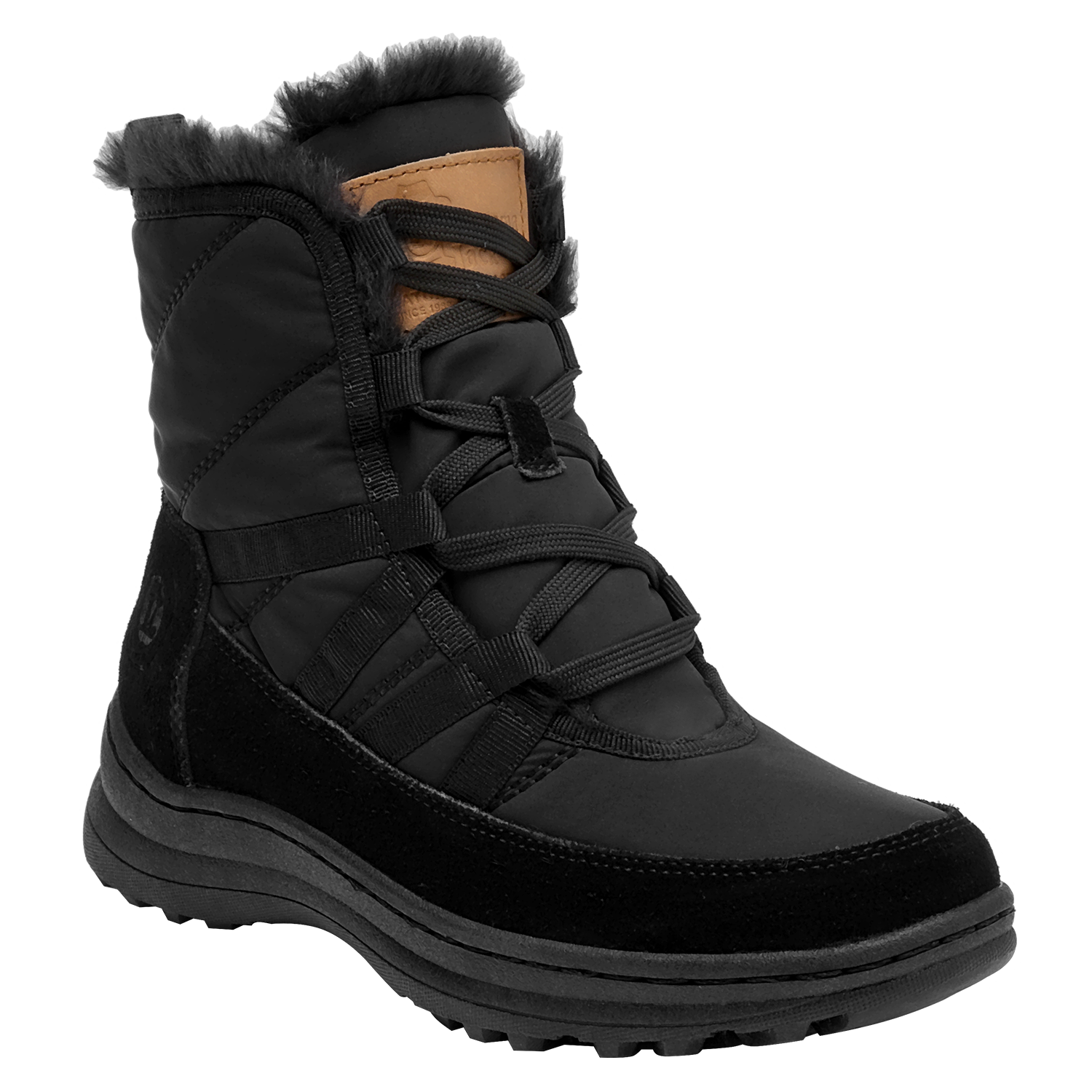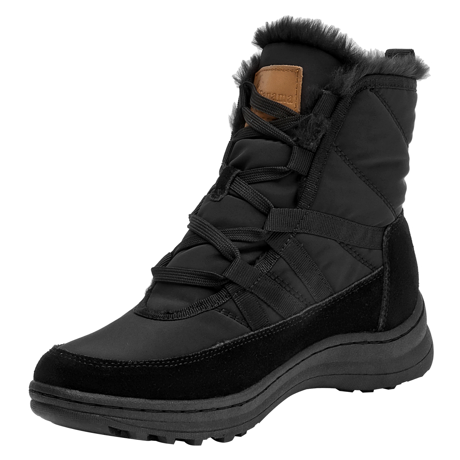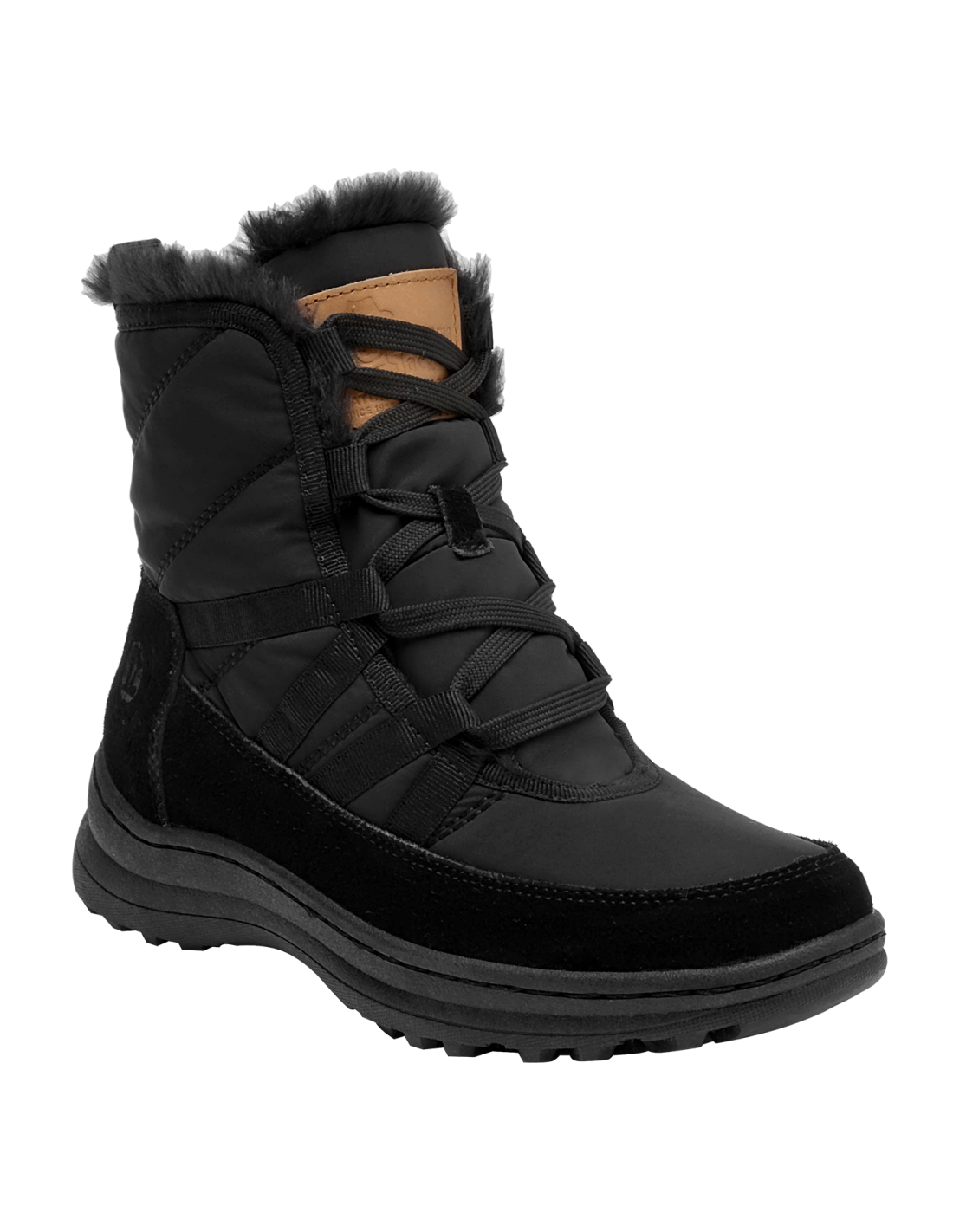 Botín urbano de mujer en color negro, confeccionado en material textil con forro textil/pelo de tacto suave. Incorpora punta redonda y una suela plana de 5 cm que aporta una elevación sutil y una base estable. Su diseño depurado y versátil se adapta a estilos casuales y relajados, manteniendo un perfil estilizado para el día a día.