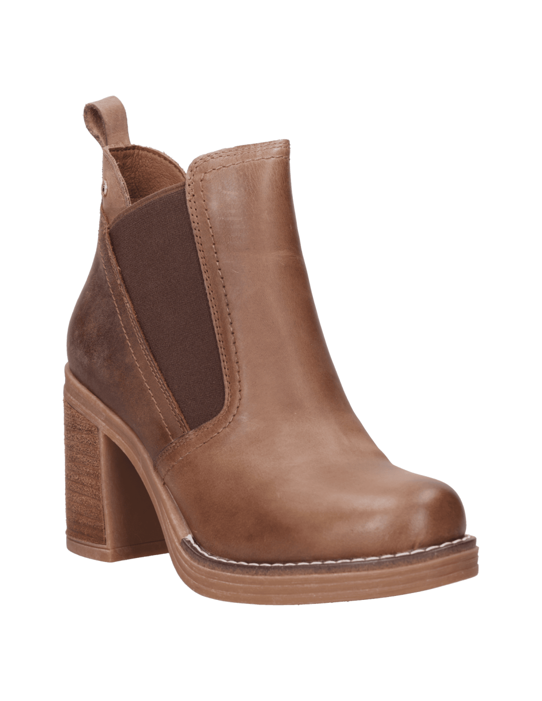 Eleva tu estilo con este sofisticado botín de mujer en un encantador color camel. Realizado en cuero de primera calidad, su textura suave y brillante refleja una elegancia única. Con un taco bloque de 9 cm, no solo promete comodidad, sino que también estiliza tu figura con gracia. Ideal para un look fashionista, este botín combina a la perfección con un vestido midi o unos pantalones denim ajustados. Atrévete a ser la reina de la moda cada día.