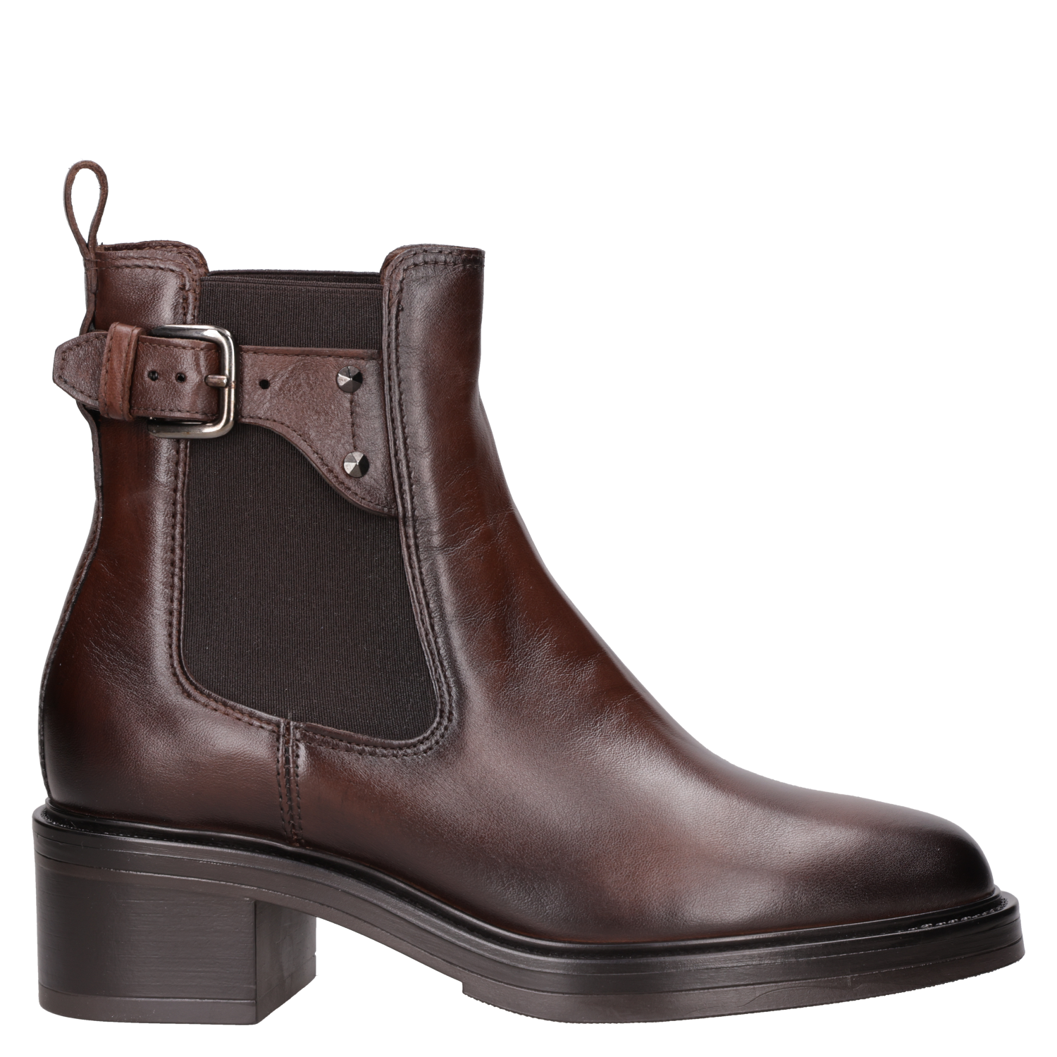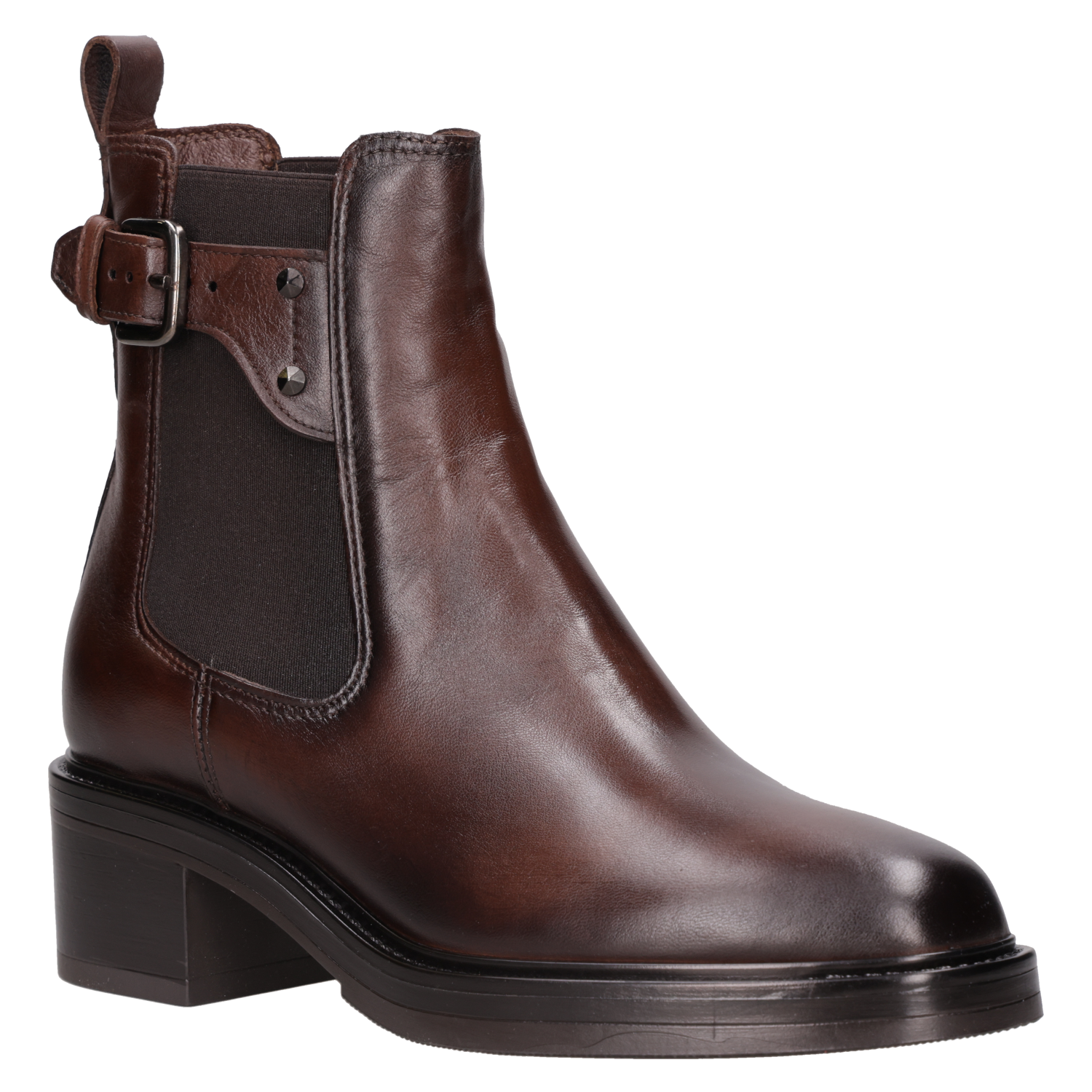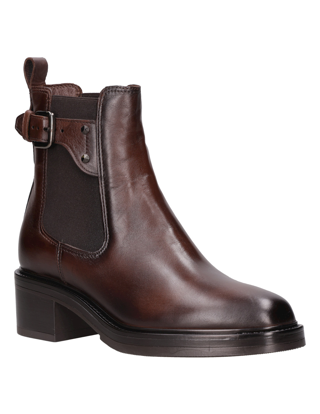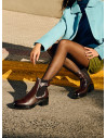 Deja que tu personalidad brille con este impactante botín de cuero marrón, diseñado para la mujer audaz. Su taco bloque de 5 cm proporciona la comodidad perfecta sin sacrificar el estilo. Con detalles metálicos que añaden un toque vanguardista, este modelo redondea su look moderno. Perfecto para un look urbano, combínalo con jeans ajustados o un vestido ligero para destacar tu carácter único. ¿Te atreves a marcar tendencia?