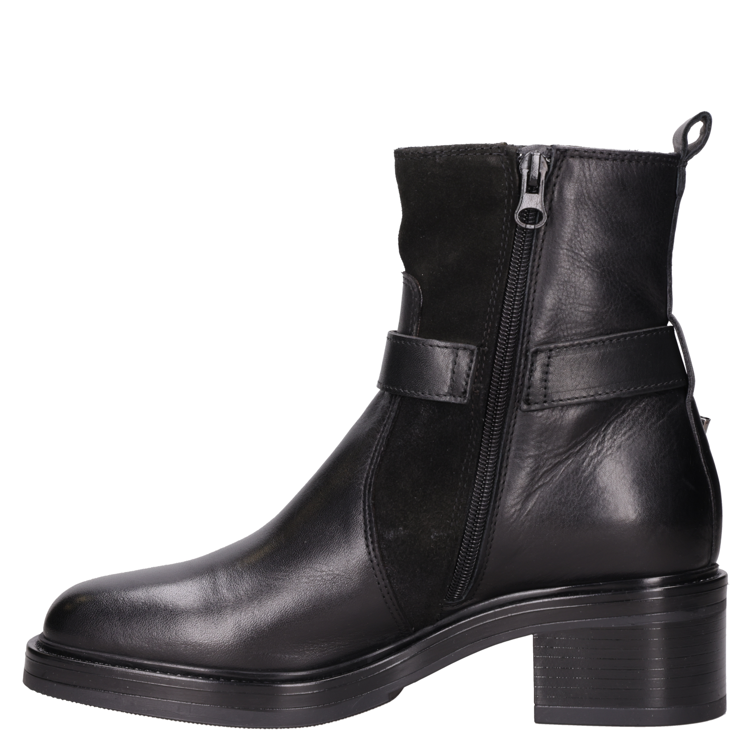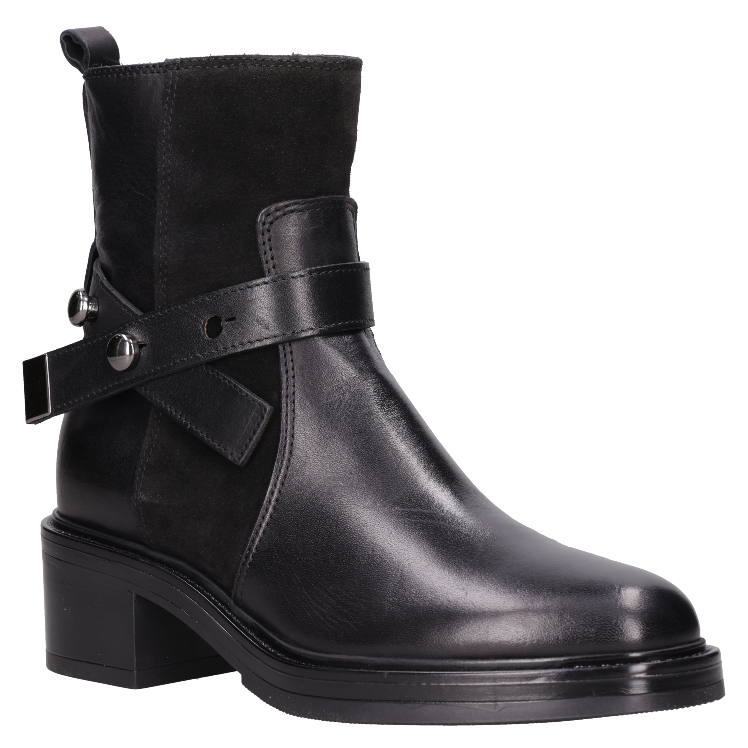 Descubre el audaz botín negro de cuero de Zappa, un diseño con carácter y detalles metálicos que imponen estilo. Con una altura de taco de 5 cm y puntas redondas, este calzado combina perfectamente el confort y la modernidad. Su mezcla de texturas, entre el cuero brillante y el acabado mate, refleja una elegancia fresca y disruptiva. Combina este botín con un vestido fluido para un look sofisticado o con jeans ajustados y un abrigo oversize para un estilo urbano inolvidable.