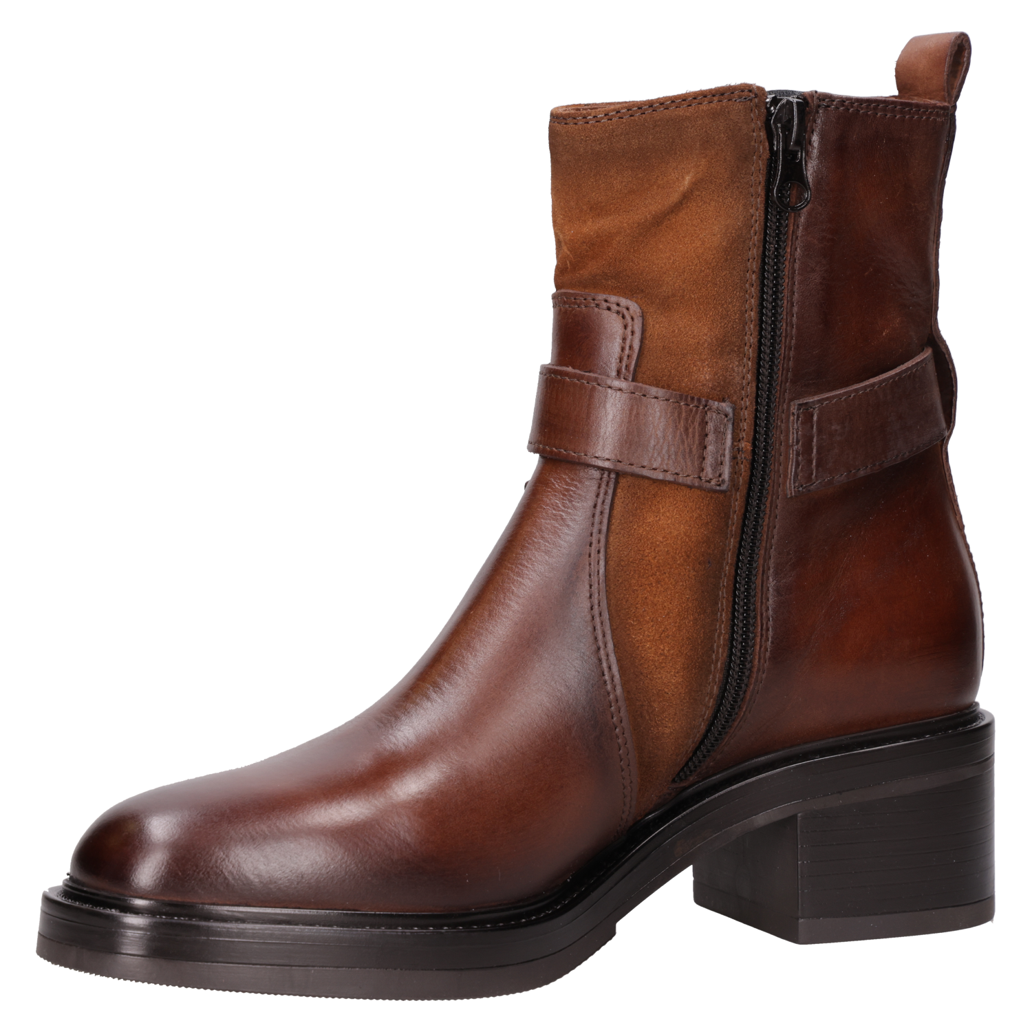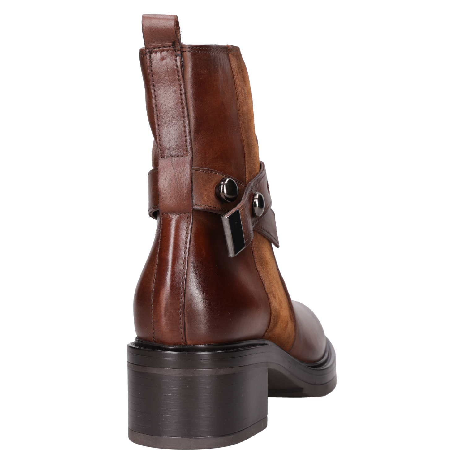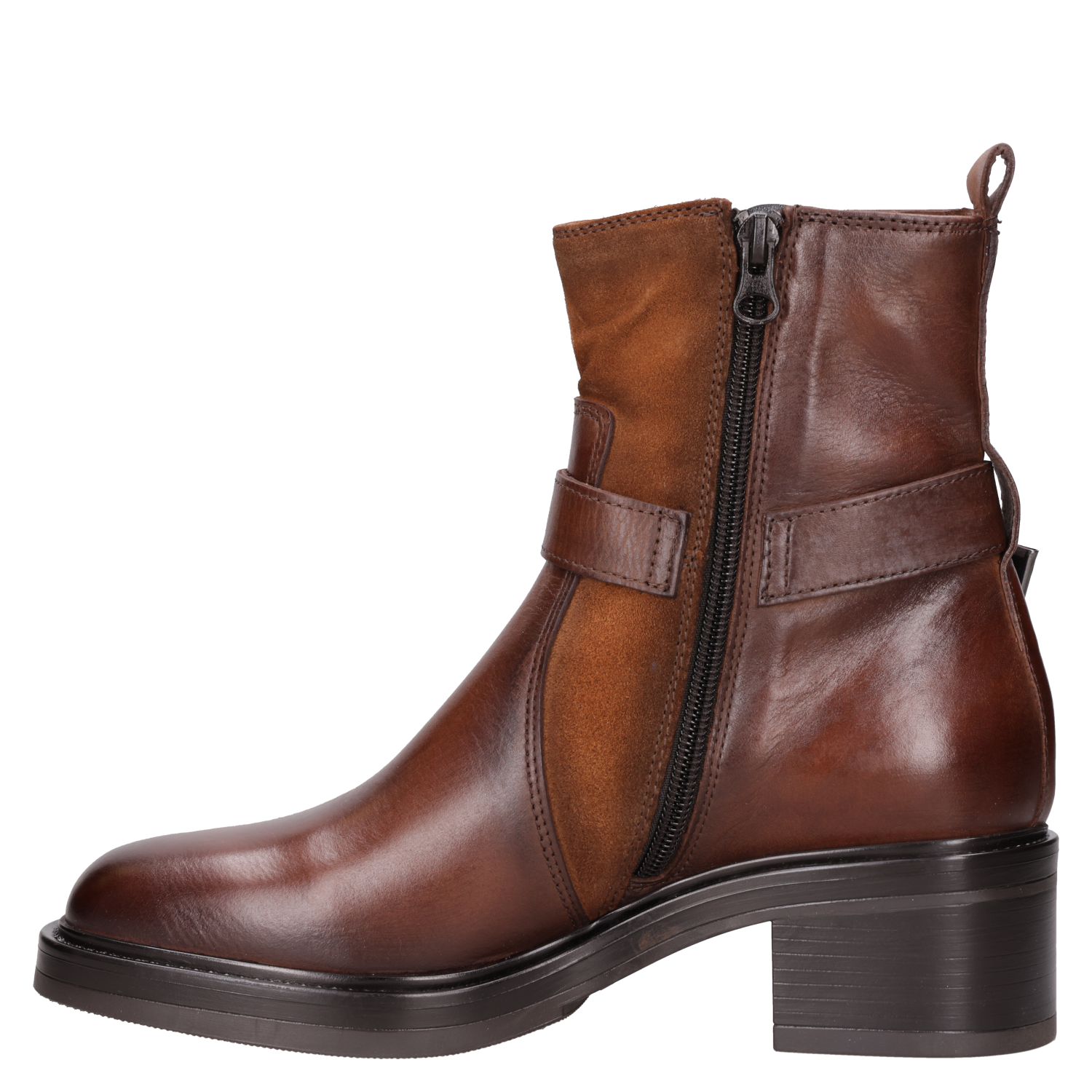 Luce con actitud y elegancia con este botín café de cuero, perfecto para marcar tendencia. Con un diseño vanguardista y una combinación de texturas que destacan su carácter, este modelo cuenta con un taco bloque de 5 cm que asegura comodidad sin sacrificar estilo. Sus detalles metálicos y el cierre lateral añaden un toque disruptivo. Combínalo con un vestido midi para un look impactante o con jeans ajustados para resaltar tu esencia urbana.