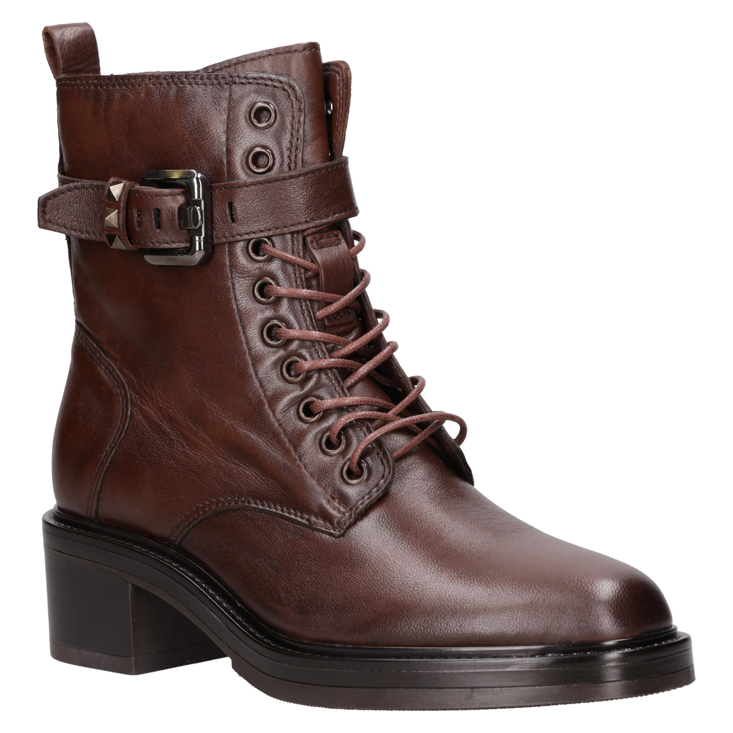 El botín de cuero Zappa en un sofisticado tono brown es el complemento ideal para quienes buscan un look audaz. Con su puntera redonda y taco bloque de 5 cm, este diseño urbano ofrece una fusión perfecta entre comodidad y estilo. Detalles metálicos en la hebilla añaden un toque disruptivo, mientras que el acabado suave del cuero resalta su carácter contemporáneo. Combínalo con jeans ajustados y una chaqueta de cuero para un outfit que impone moda y actitud.