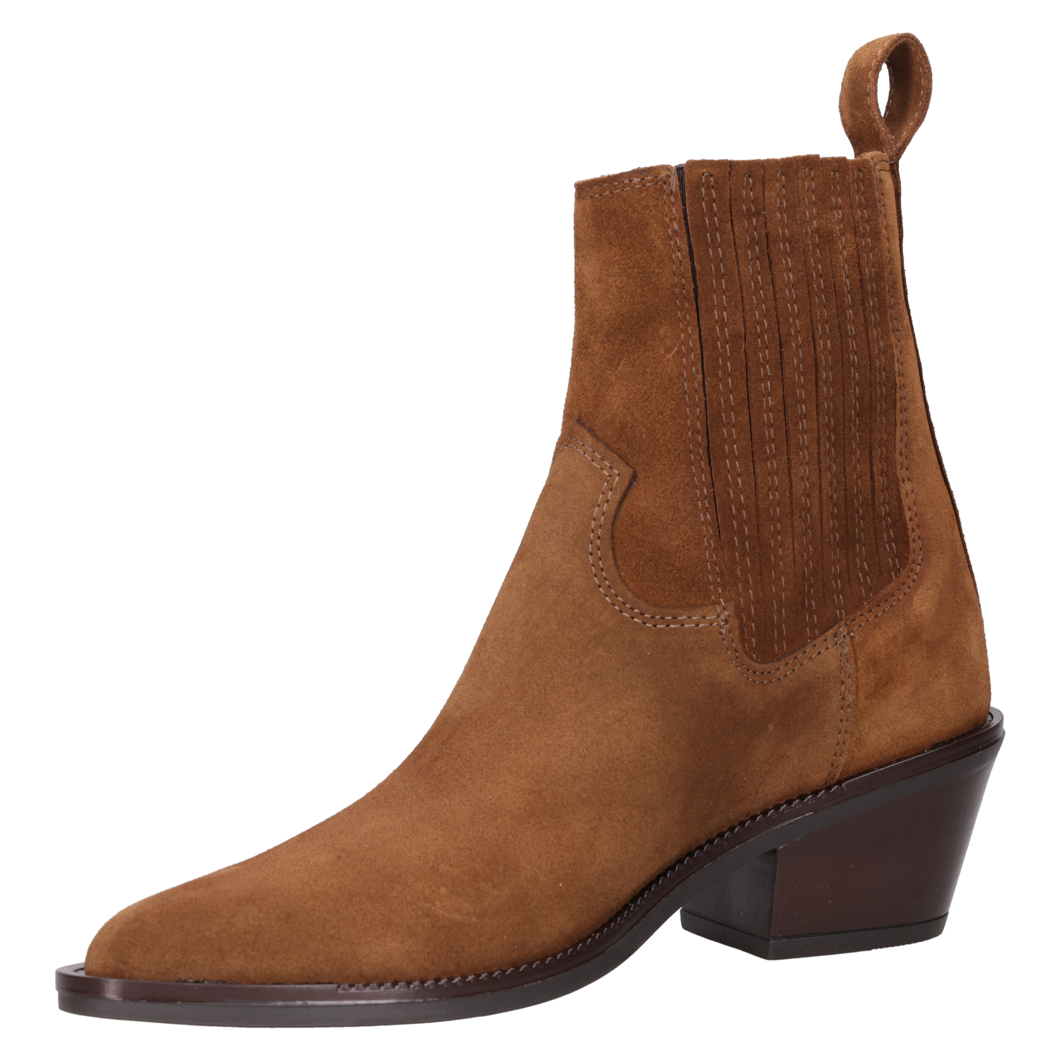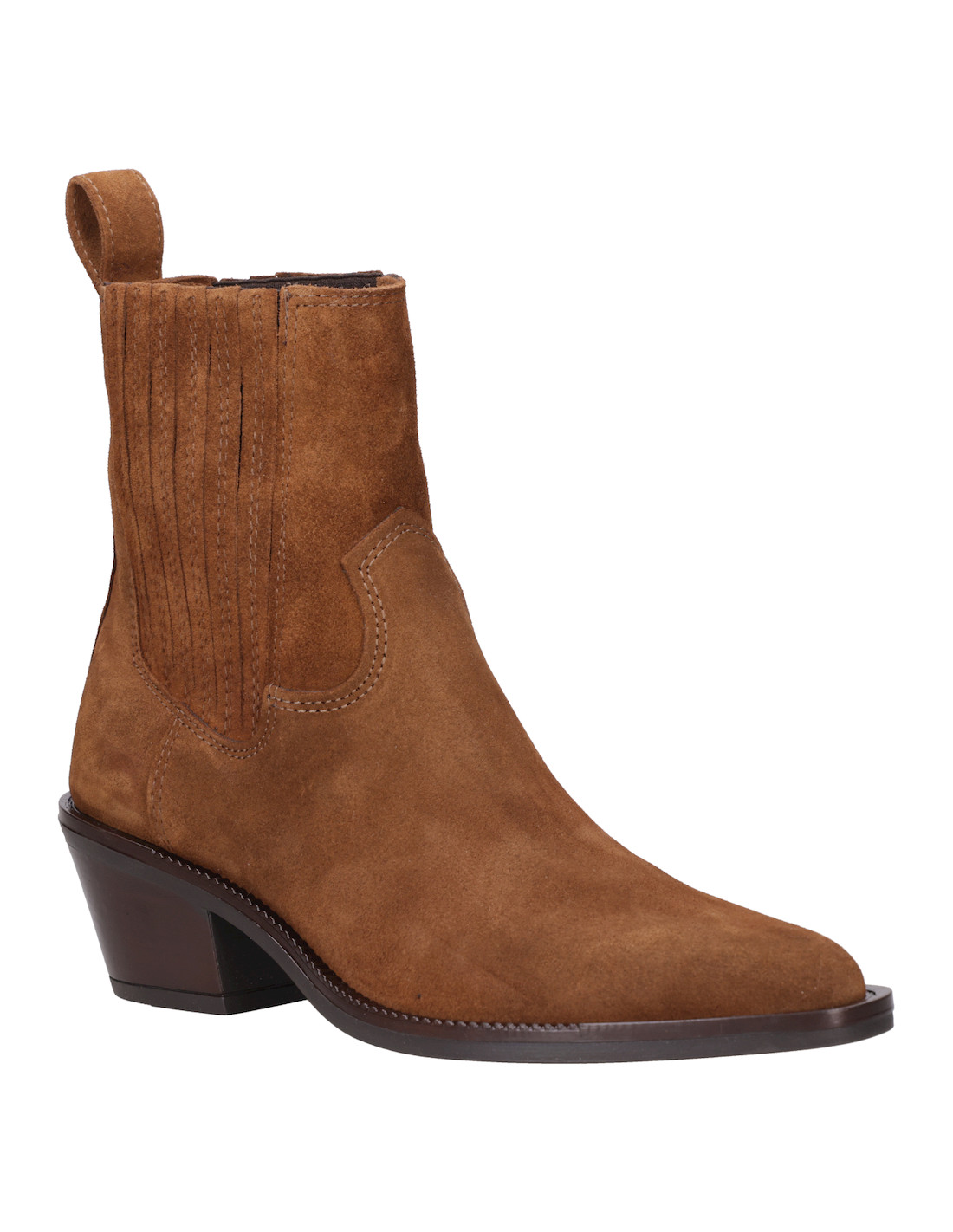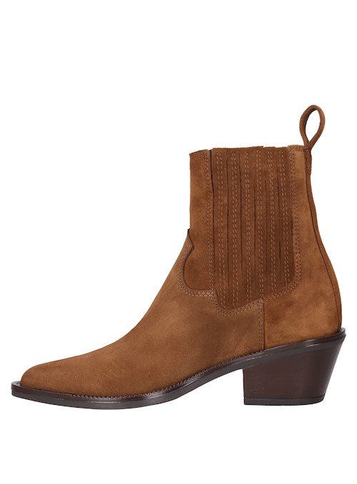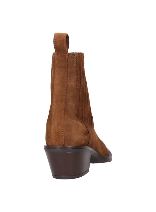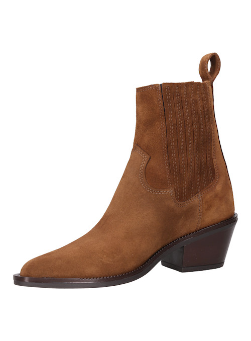 Experimenta la audacia de nuestros botines camel, elaborados en suave cuero ante, que reflejan una estética contemporánea y vanguardista. Con un taco bloque de 6 cm y una punta puntiaguda, son el complemento perfecto para cualquier look urbano. Su textura rica al tacto y el acabado brillante resaltan su impacto visual, convirtiéndolos en un básico de estilo protagónico. Combínalos con un vestido fluido o con jeans ajustados y una chaqueta de piel para un efecto realmente Zappa.