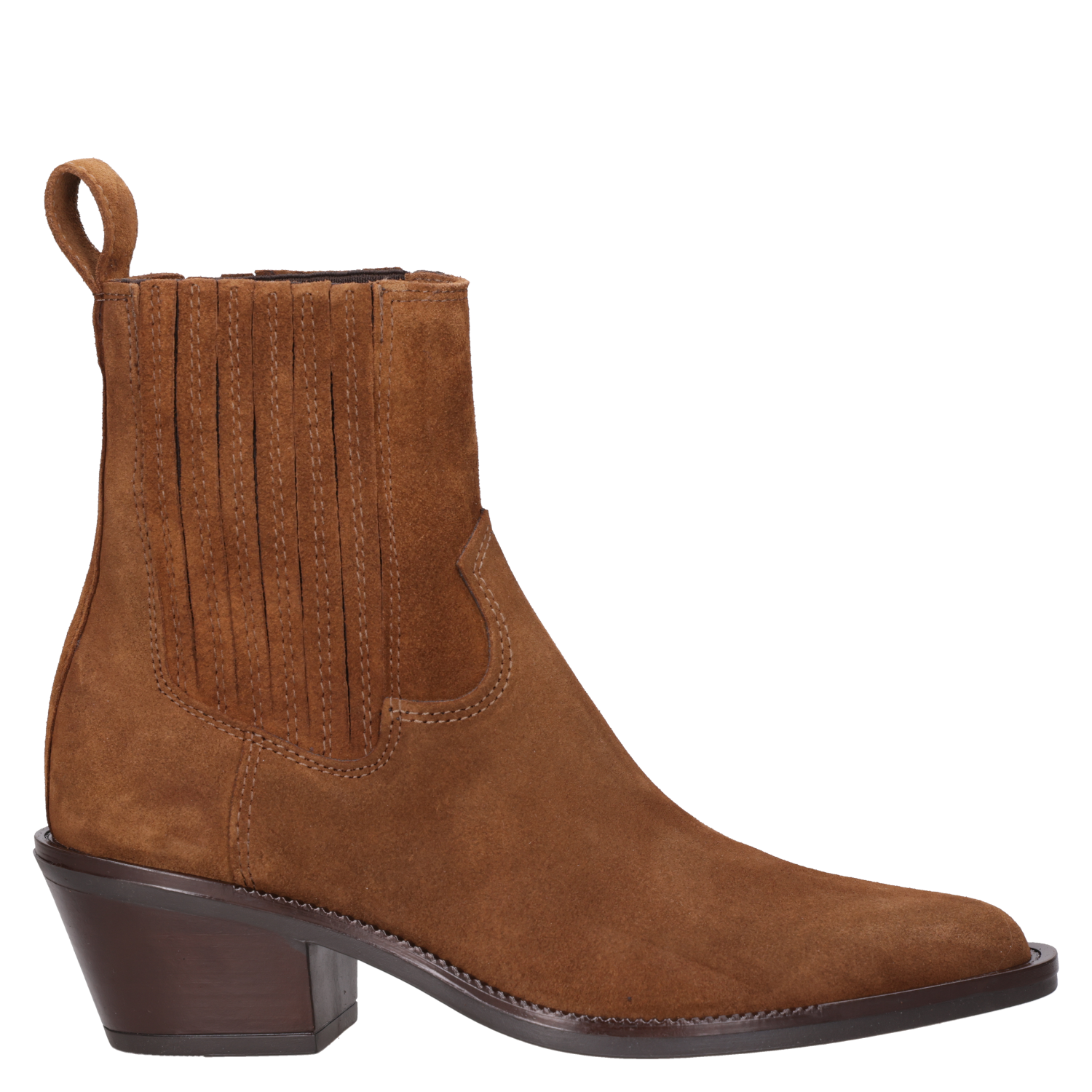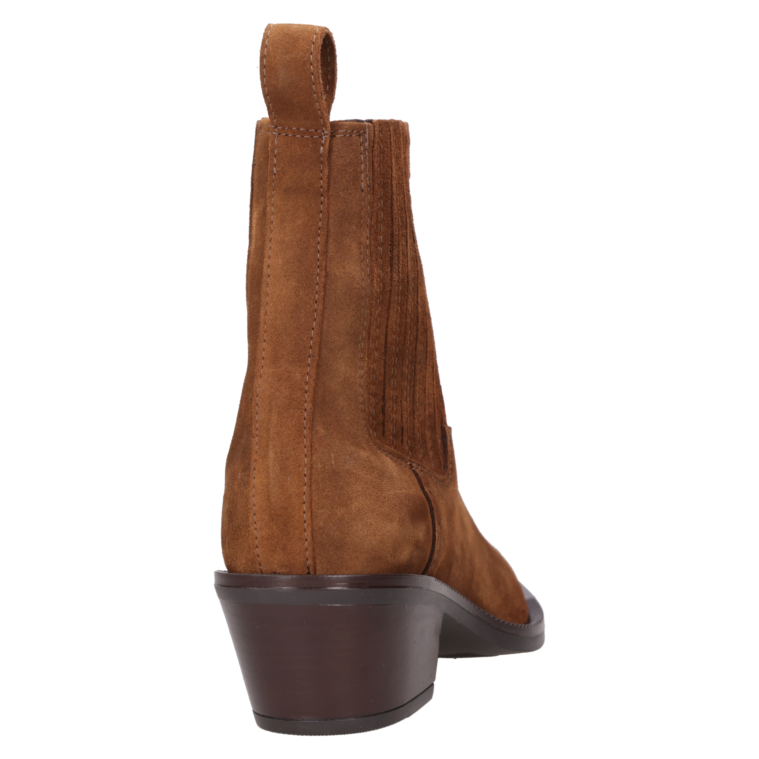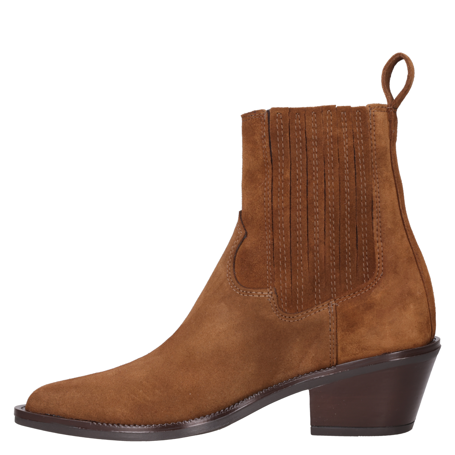 Experimenta la audacia de nuestros botines camel, elaborados en suave cuero ante, que reflejan una estética contemporánea y vanguardista. Con un taco bloque de 6 cm y una punta puntiaguda, son el complemento perfecto para cualquier look urbano. Su textura rica al tacto y el acabado brillante resaltan su impacto visual, convirtiéndolos en un básico de estilo protagónico. Combínalos con un vestido fluido o con jeans ajustados y una chaqueta de piel para un efecto realmente Zappa.