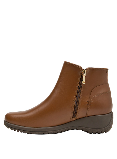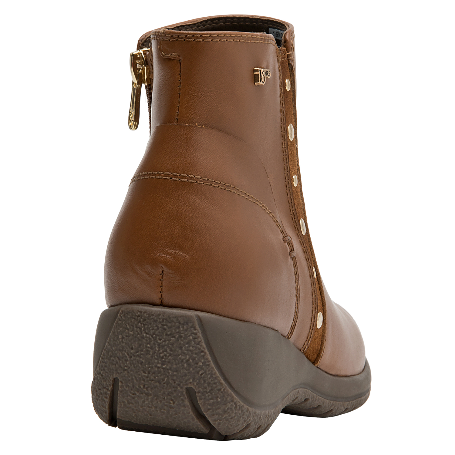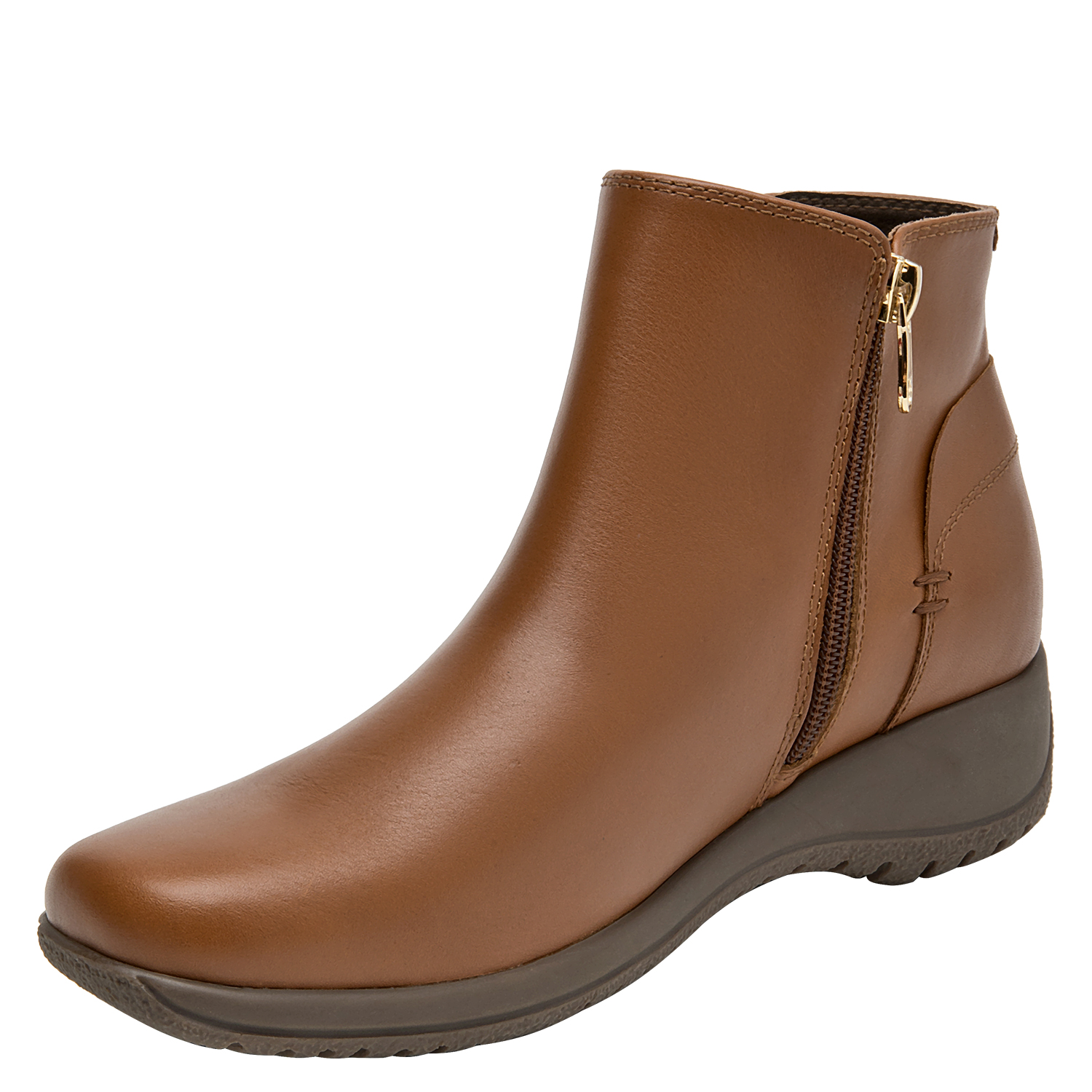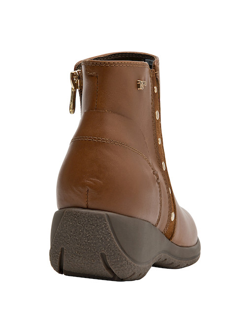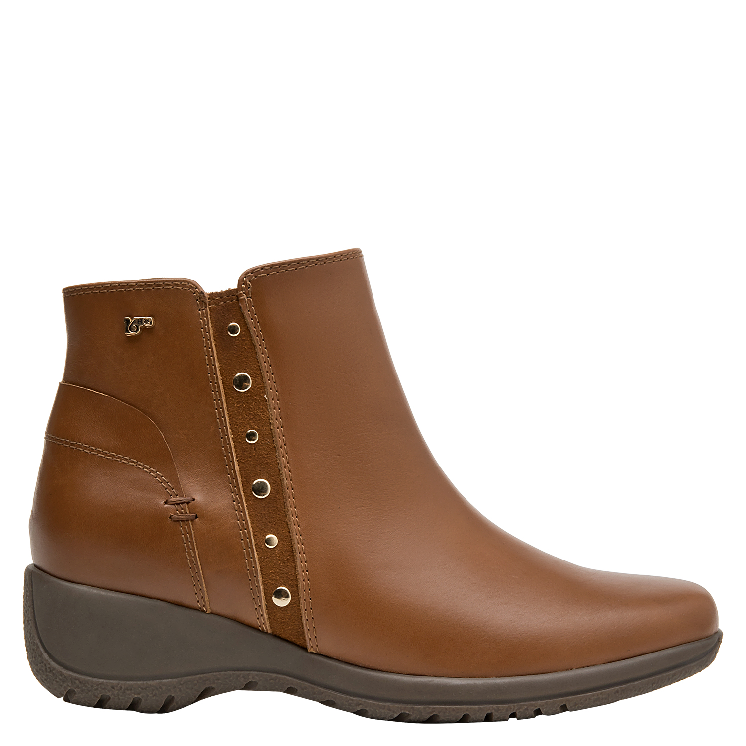 Eleva tu estilo diario con estos botines de cuero camel, que combinan diseño moderno y comodidad excepcional. Su punta redonda y tacón de bloque de 4.5 cm ofrecen una pisada estable, mientras que los detalles de remaches añaden un toque especial. La suavidad del cuero y el forro textil aseguran una sensación de bienestar en cada paso. Ideal para acompañar tus jeans favoritos o un vestido ligero, estos botines son la opción perfecta para un look urbano y fresco.