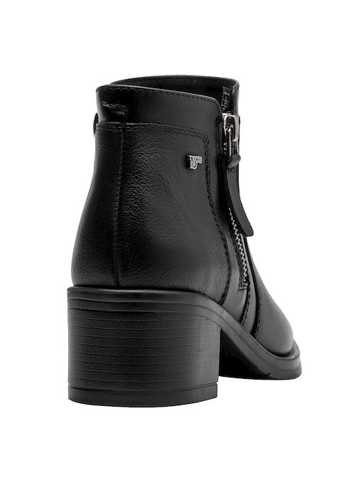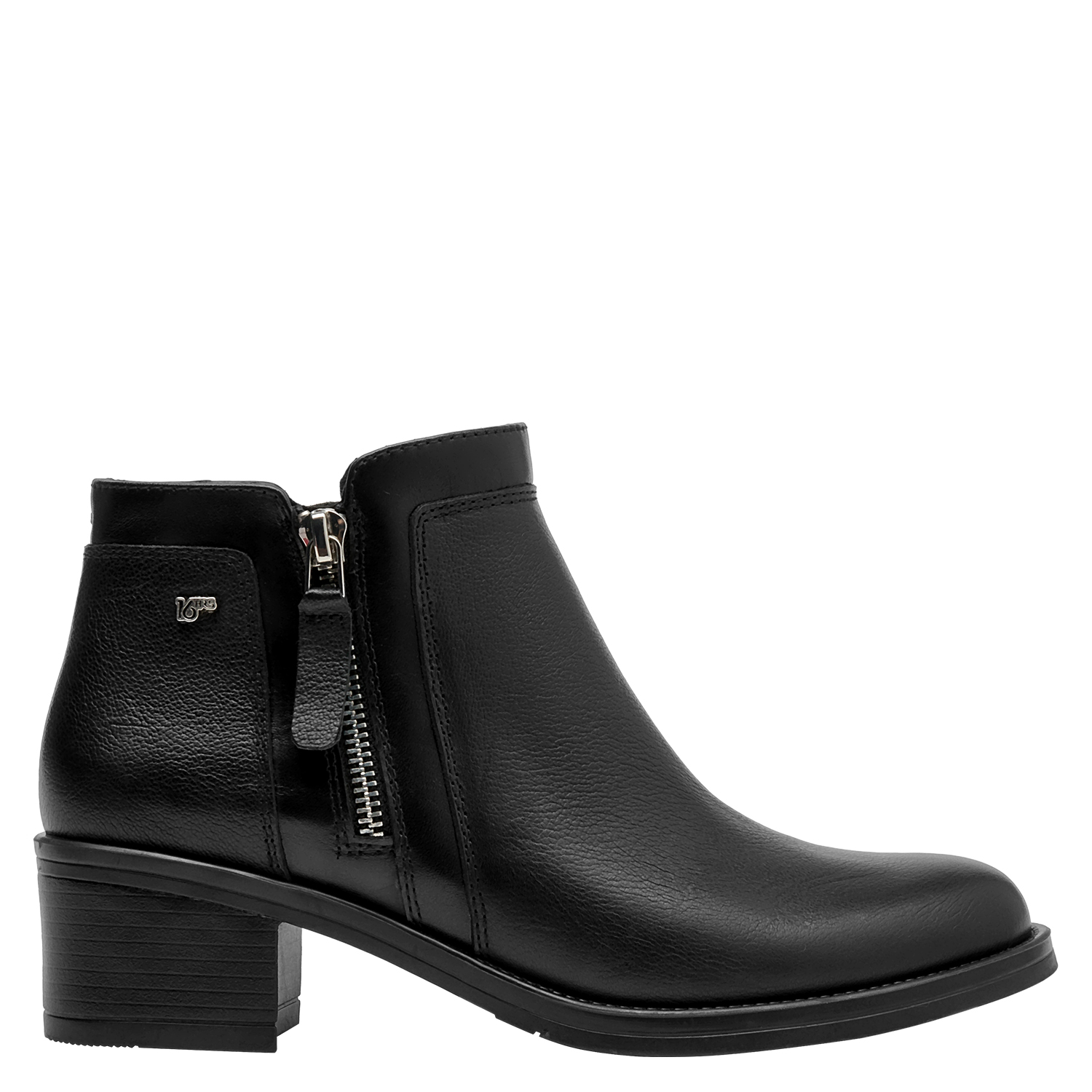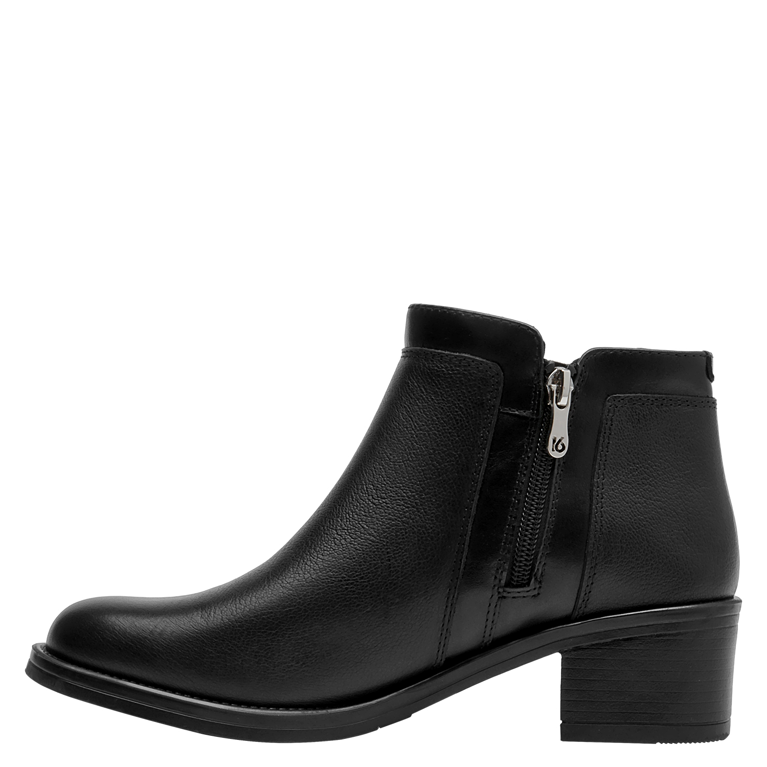 Ambos en chic y comodidad, estos botines de cuero negro para mujer son la elección ideal para cada jornada. Con un diseño de punta redonda y un taco bloque de 5 cm, ofrecen estabilidad y un estilo urbano inigualable. El suave forro de on steam realza la sensación de bienestar, acompañando cada paso con ligereza y flexibilidad. Perfectos para combinar con tus jeans favoritos o una falda, añadiendo un toque elegante a tu rutina diaria.