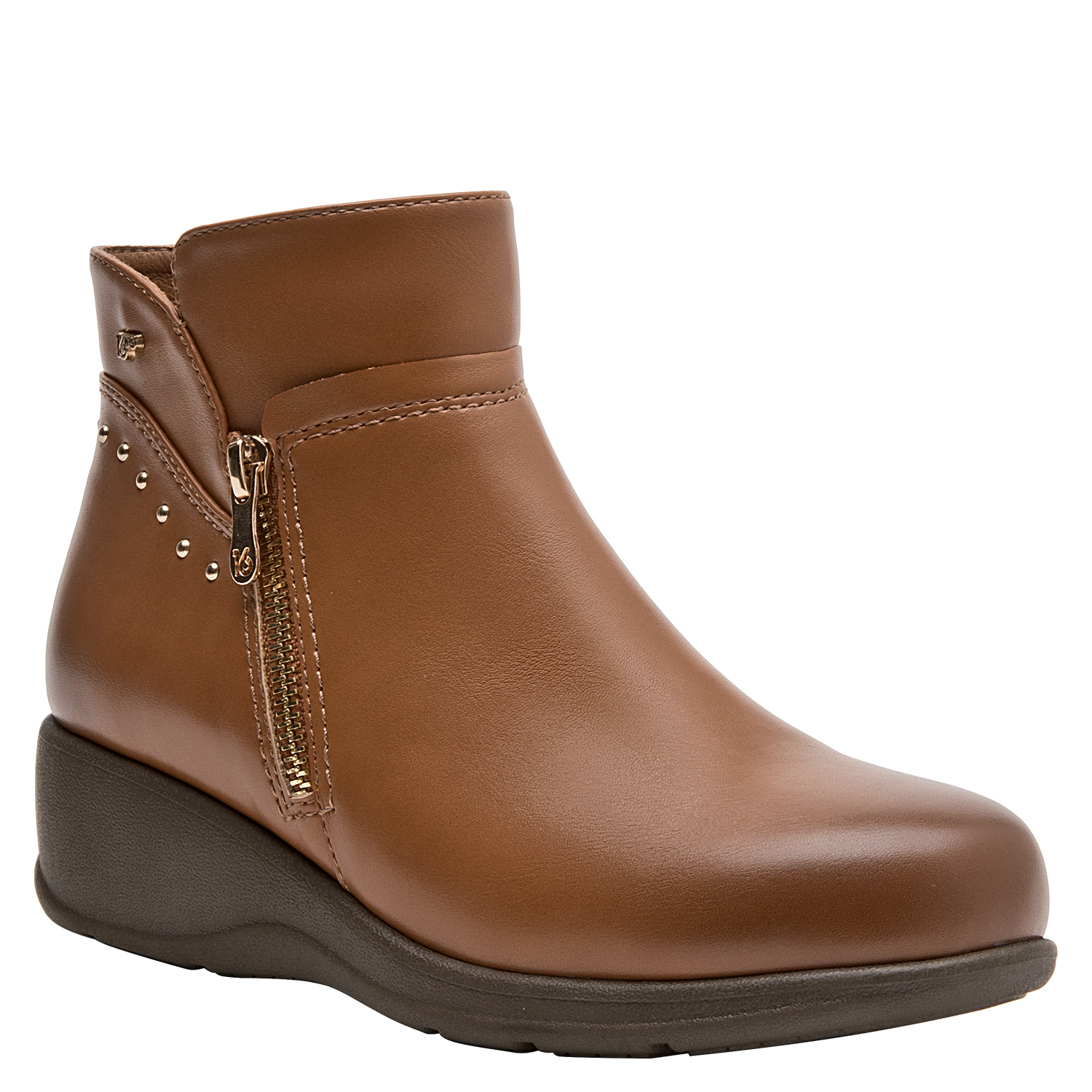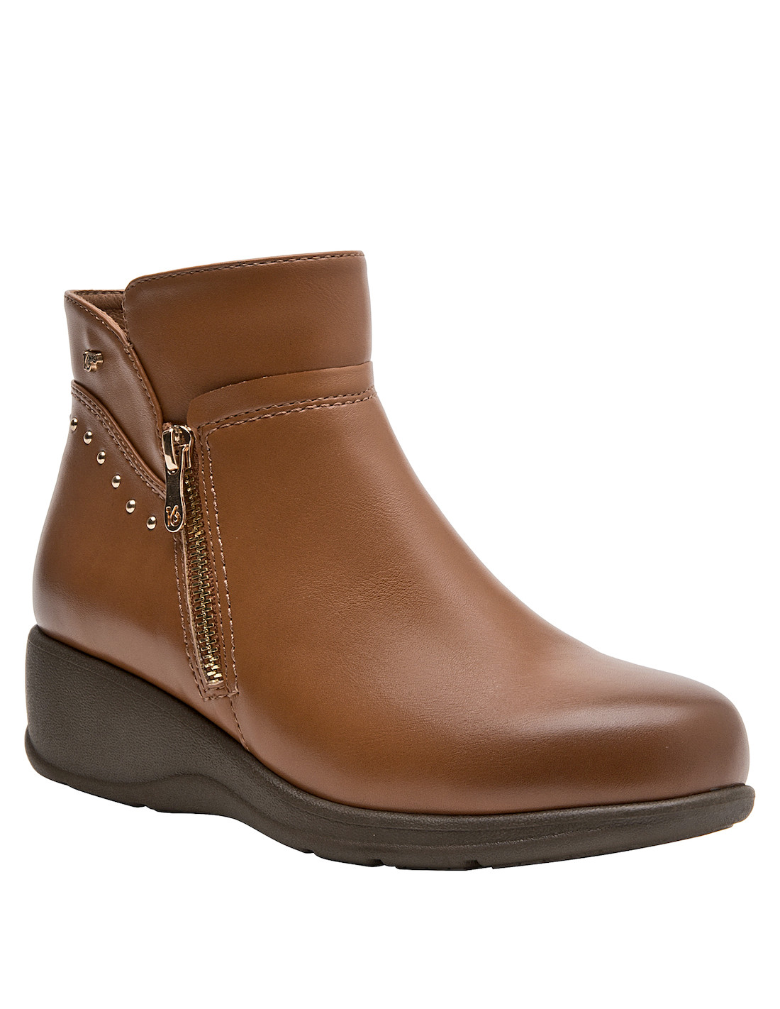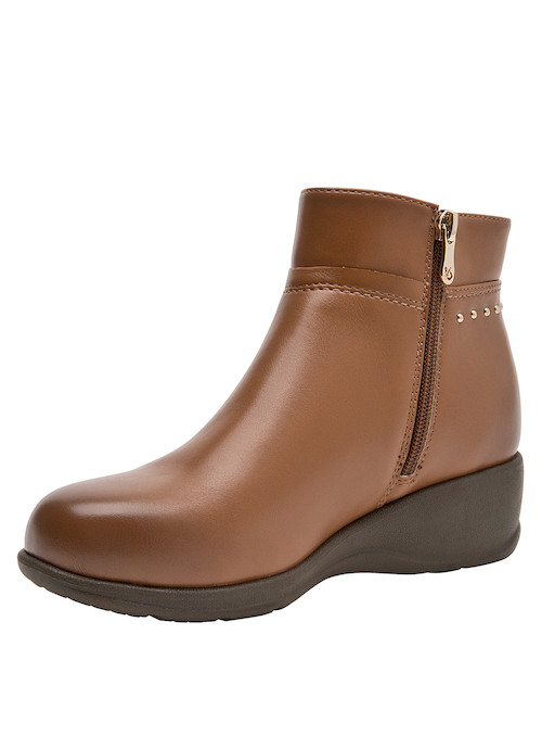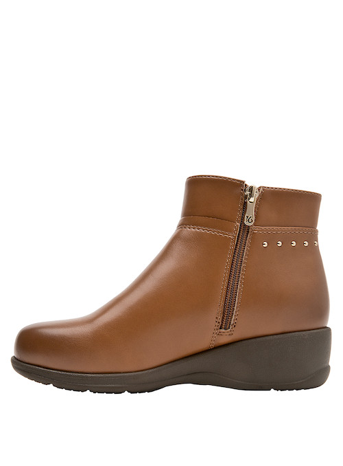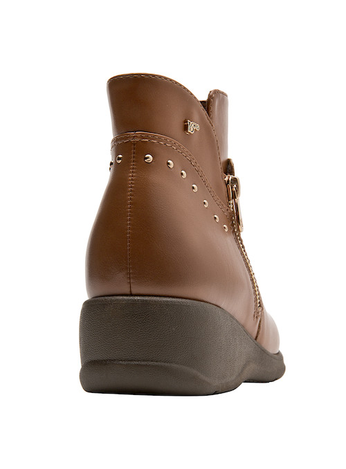 Eleva tu look diario con estos botines camel, diseñados para brindar confort y elegancia. Con un taco cuña de 5 cm, su tecnología anatómica ofrece una sensación de bienestar en cada paso. Su acabado en material sintético y forro textil asegura suavidad, mientras los sutiles detalles metálicos potencian su atractivo visual. La versatilidad de su color los hace ideales para combinar con jeans ajustados o vestidos fluidos, acompañándote en cada actividad con estilo y comodidad.