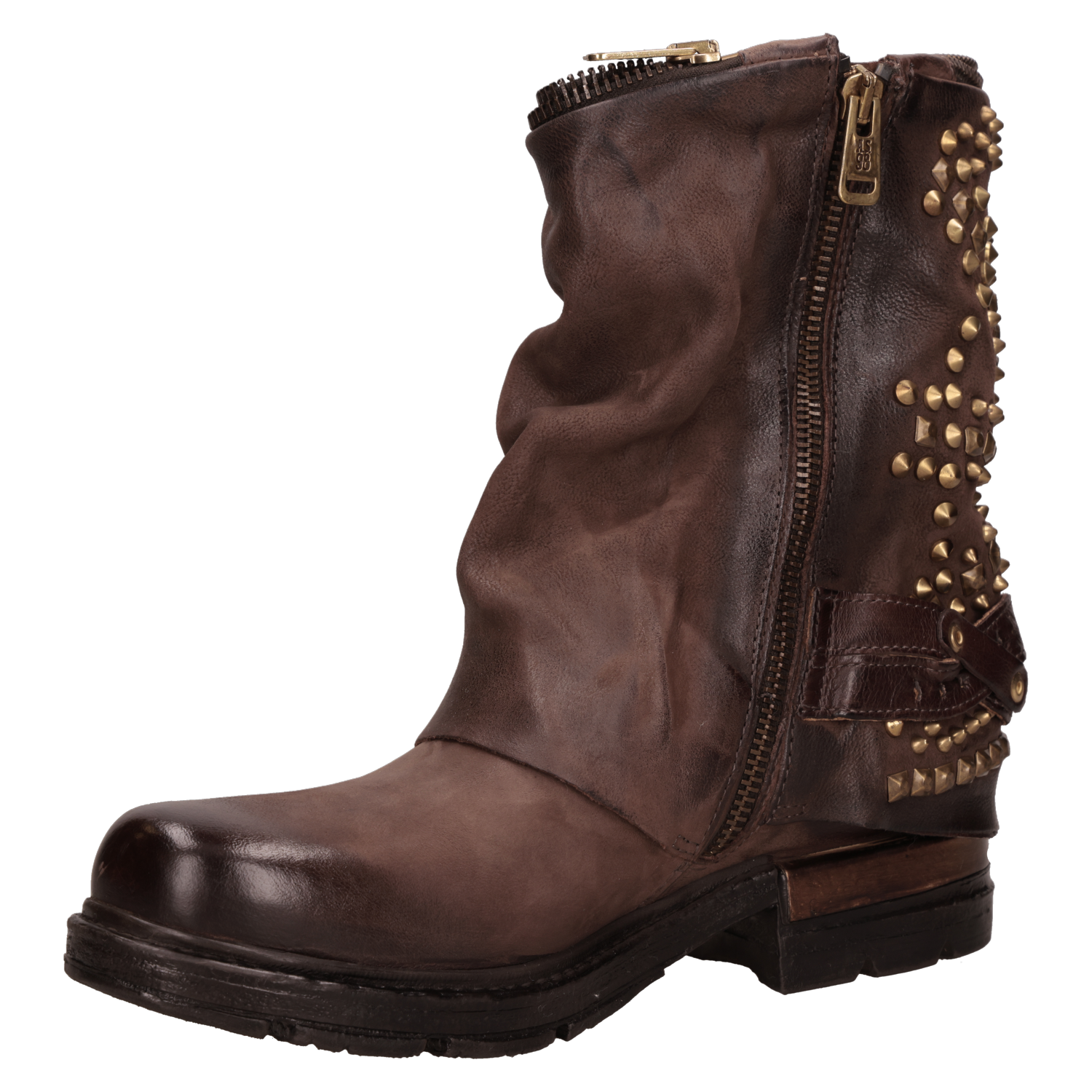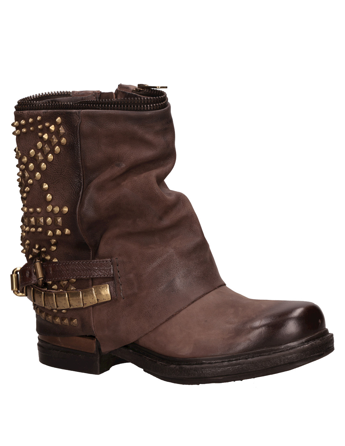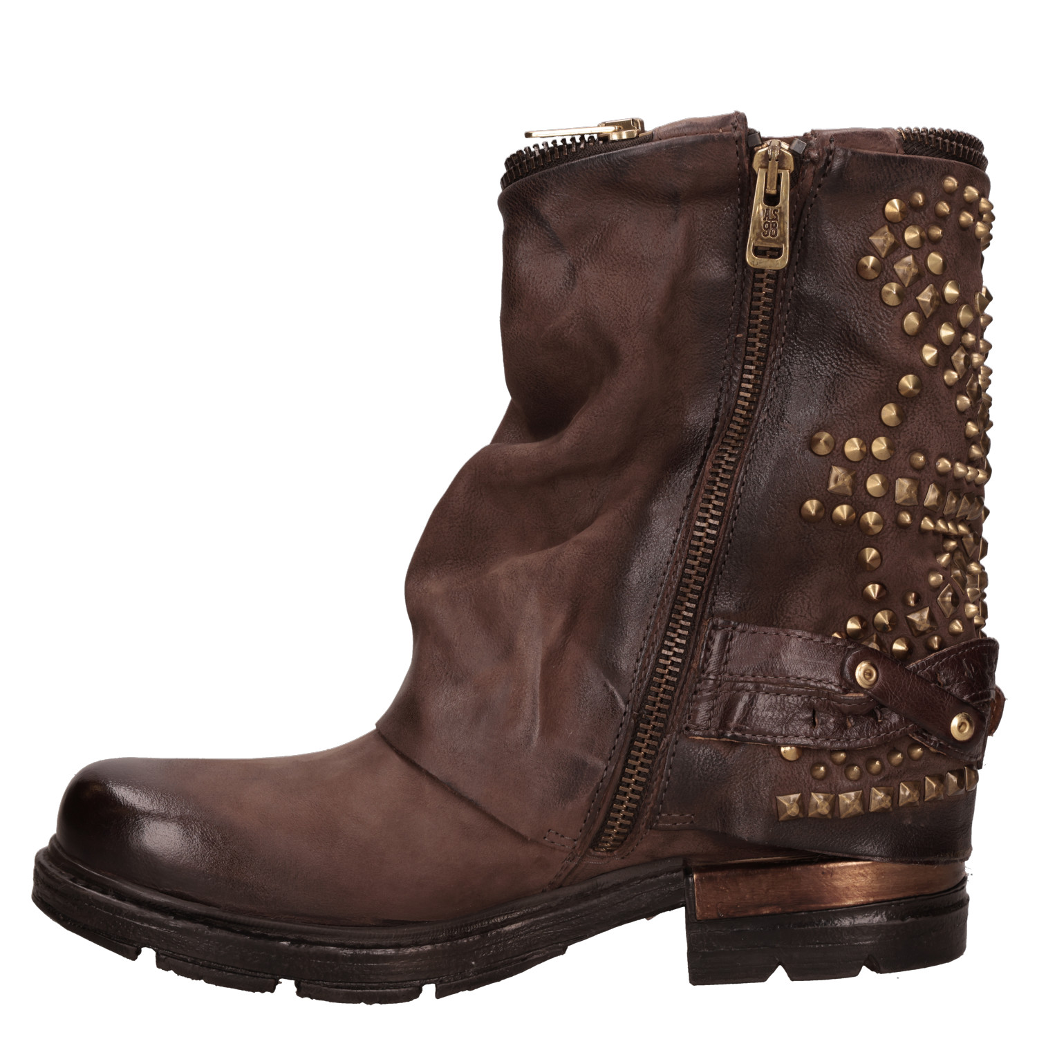 Descubre el poder de los botines de cuero en color moro de AS98, una declaración de intenciones para mujeres audaces y modernas. Con su diseño vanguardista, estos botines presentan una textura suave y un taco bloque de 3.5 cm que combina confort y estilo. Los detalles metálicos y la herrajes dorados brindan un toque de carácter que los hace únicos. Perfectos para combinarlos con jeans ajustados o un vestido de estilo bohemio, ¡marcan la diferencia en cualquier ocasión!