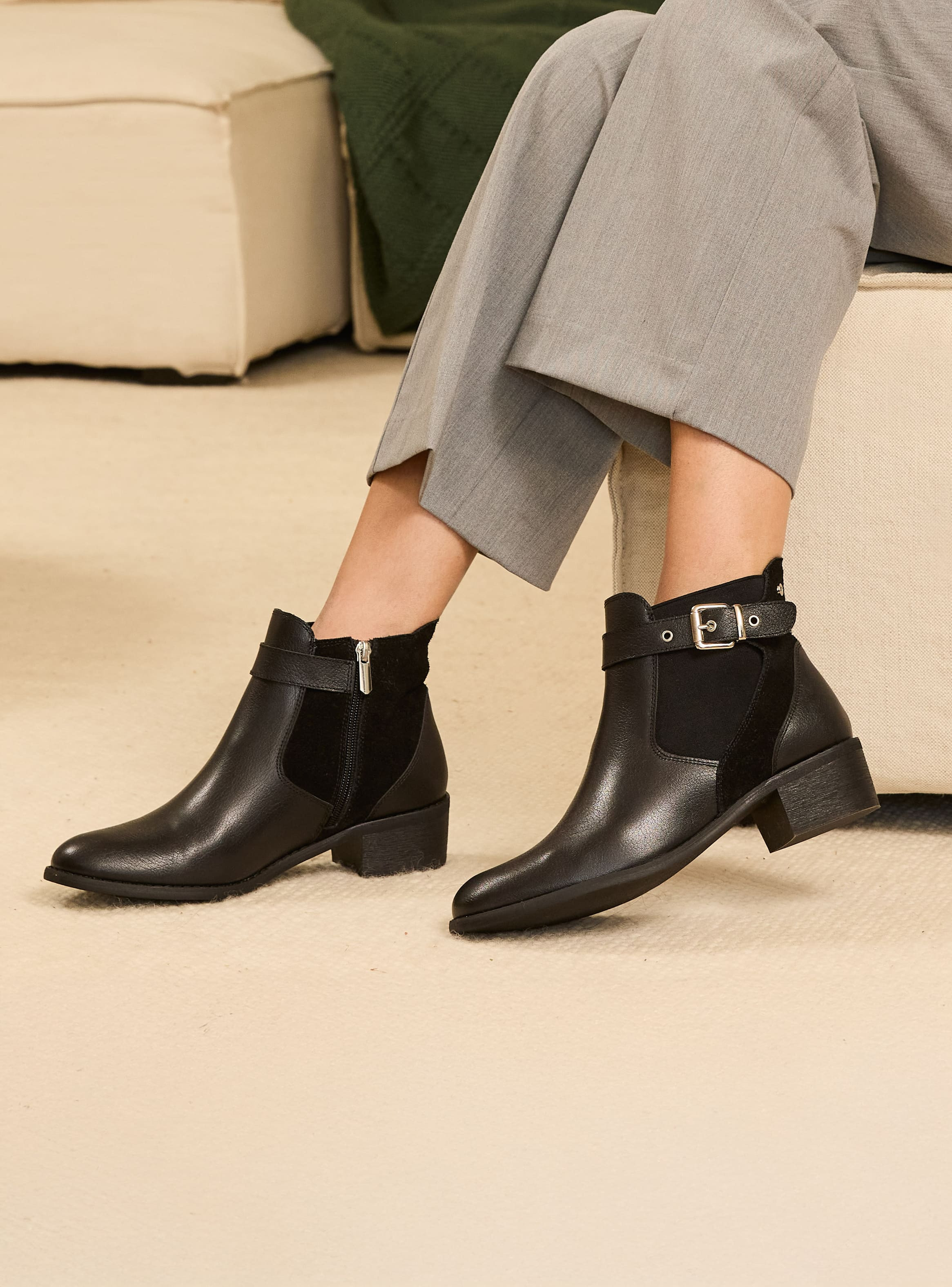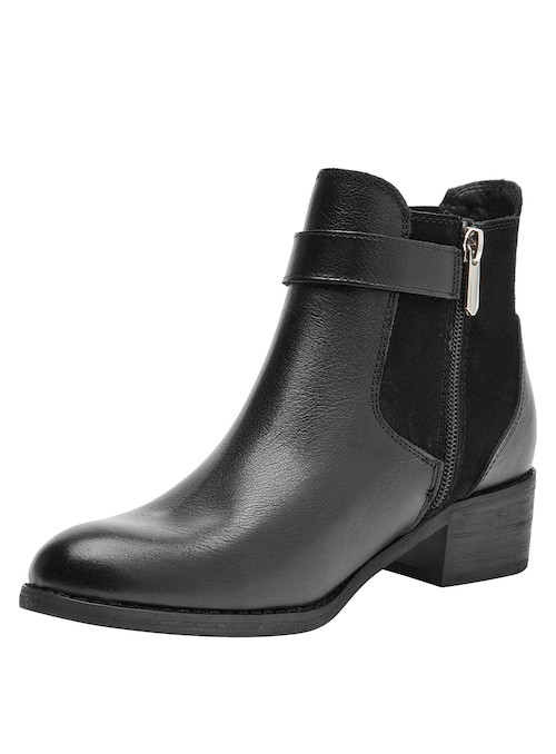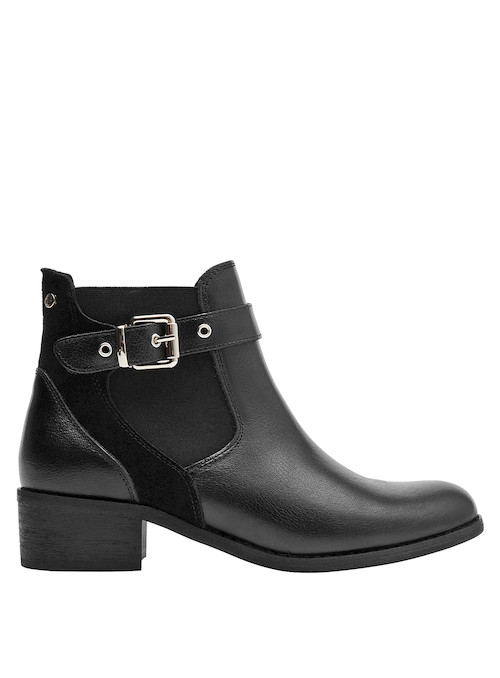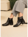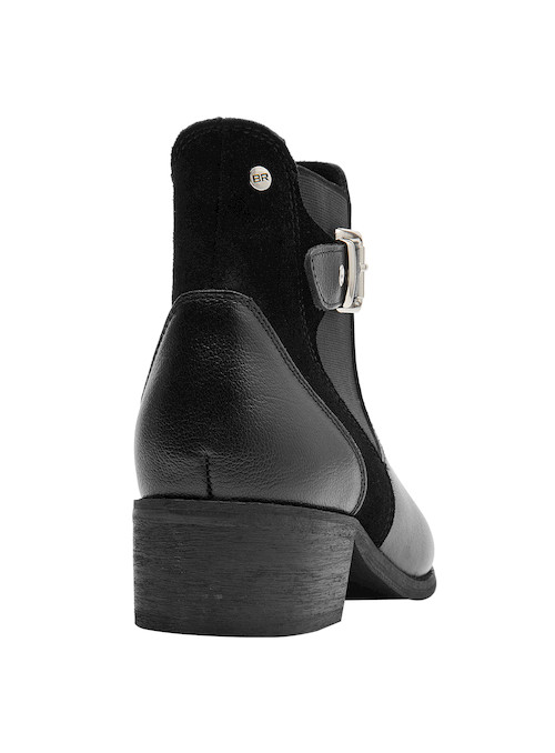 Descubre el equilibrio perfecto entre estilo y comodidad con estos botines de cuero negro. Su diseño atemporal, con una punta puntiaguda y un taco bloque de 4 cm, se adapta a cada paso de una mujer empoderada. Los detalles de la hebilla añaden un toque vanguardista, mientras que el acabado mate asegura versatilidad en cualquier ocasión. Combínalos con un vestido fluido para un look chic o con jeans ajustados para un estilo más casual y contemporáneo. ¡Atrévete a destacar con Bruno Rossi!