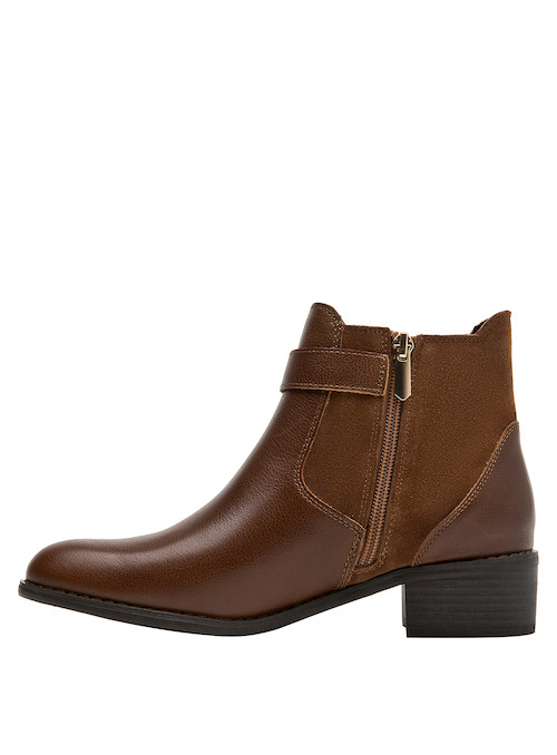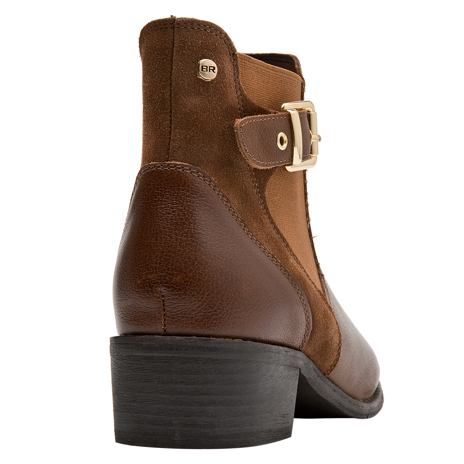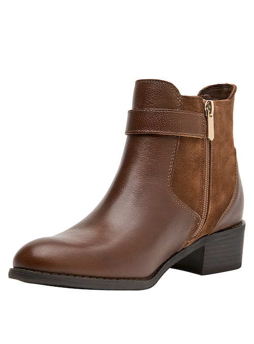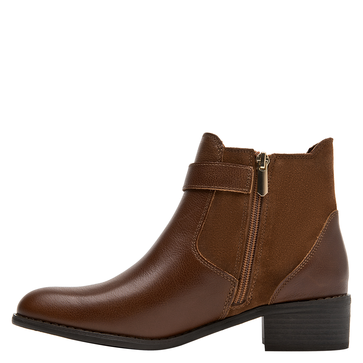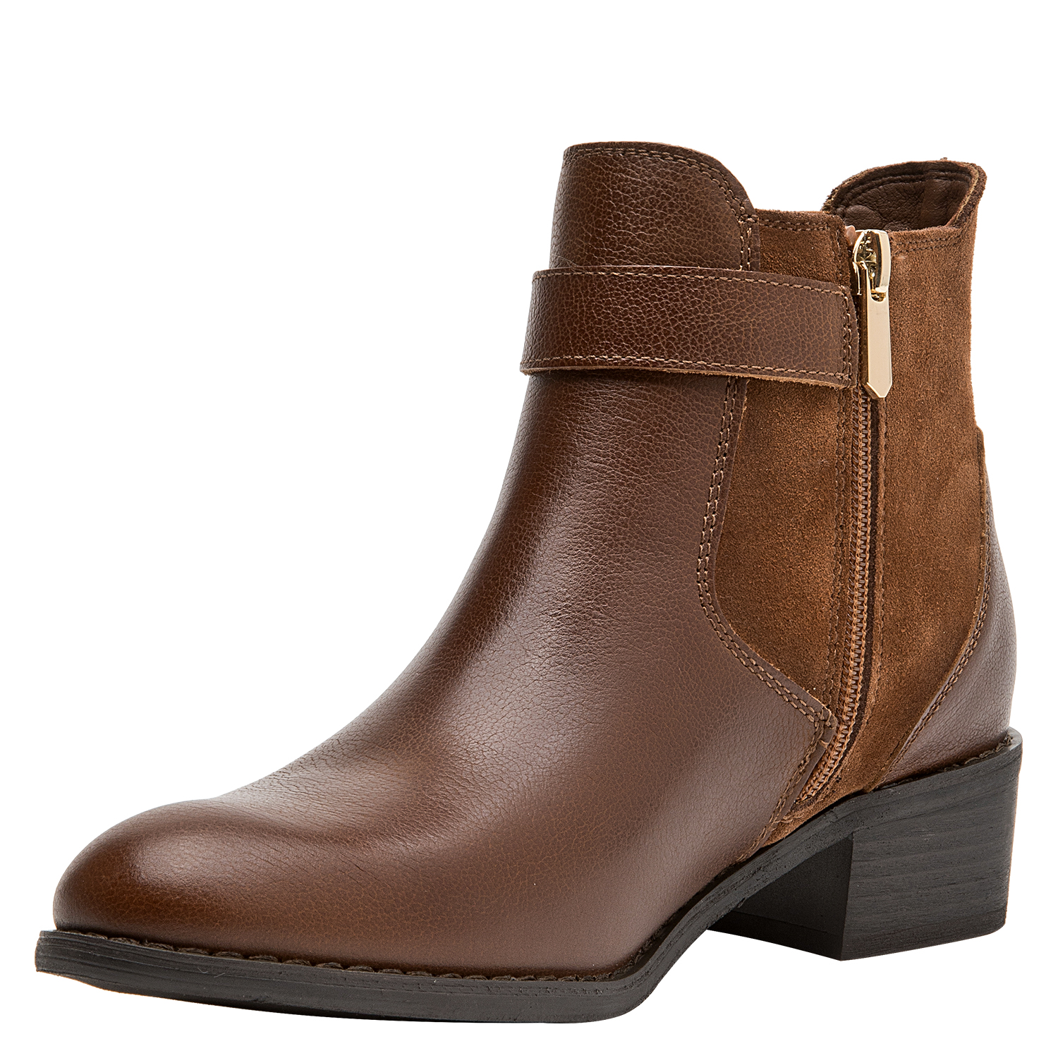 El botín de cuero café combina elegancia y funcionalidad, ideal para la mujer contemporánea. Su diseño atemporal, con punta puntiaguda y taco bloque de 4 cm, asegura comodidad sin sacrificar estilo. La textura suave del cuero y su detalle de cinta lateral añaden un toque distintivo. Perfecto para un look diario, lo puedes combinar con jeans ajustados y una blusa fluida, o con una falda midi y una chaqueta ligera para un estilo más chic.