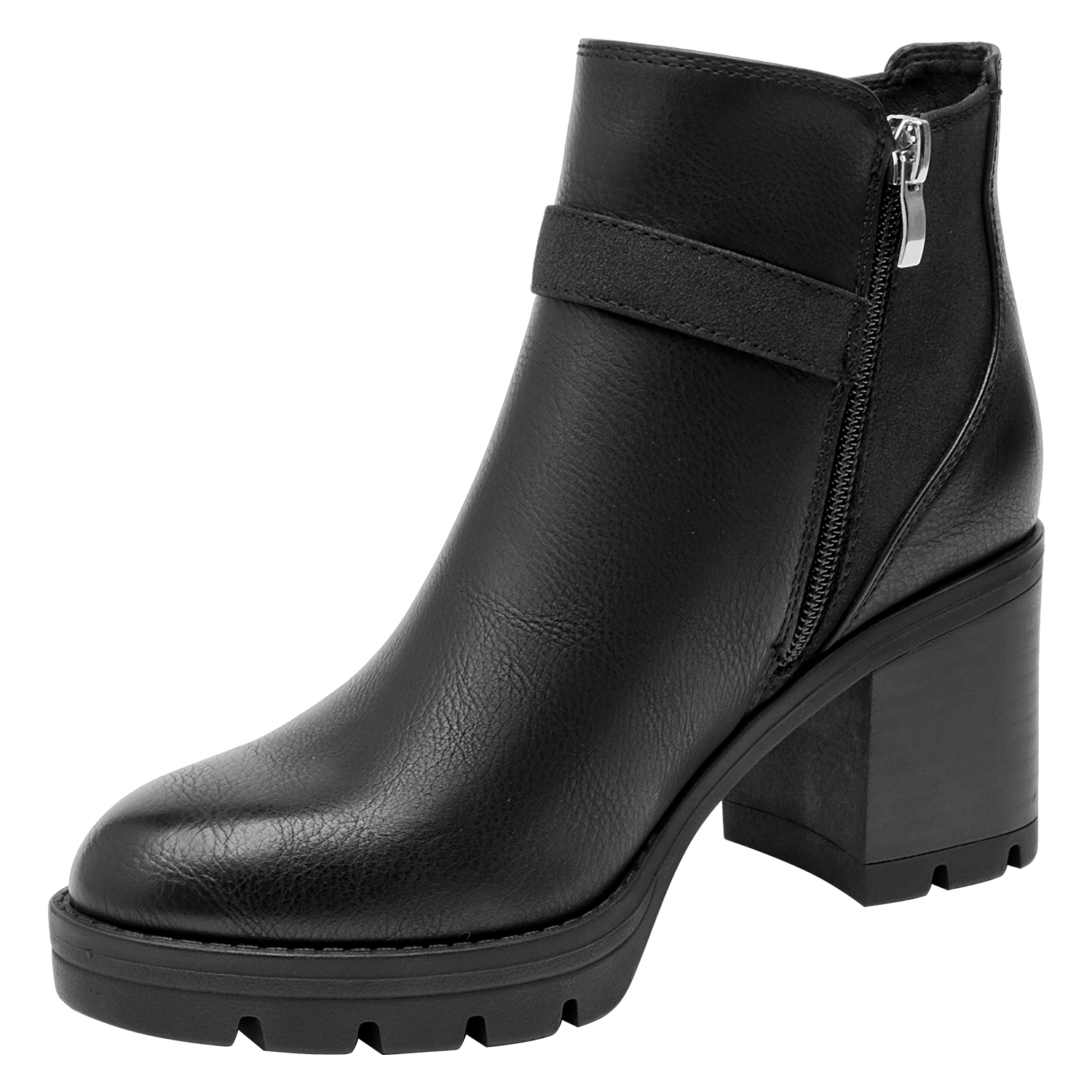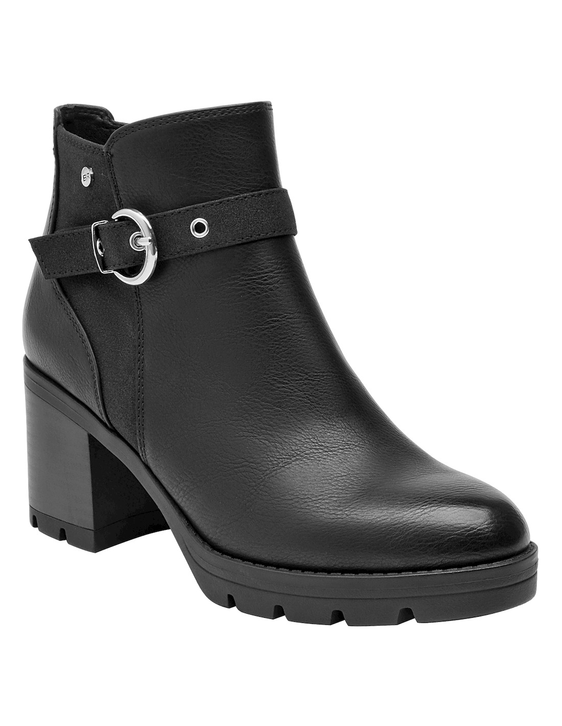 Los botines negros de Bruno Rossi son la elección perfecta para la mujer vanguardista. Con un diseño de taco bloque de 7 cm, ofrecen estabilidad sin renunciar al estilo. El acabado sintético resalta con su sutil brillo, mientras que el detalle de la hebilla añade un toque femenino. Versátiles y cómodos, estos botines se adaptan a cualquier ocasión, desde una jornada laboral hasta una salida casual. Combínalos con un pantalón de cuero y una blusa elegante para un look sofisticado, o con un vestido fluido para un estilo más relajado.