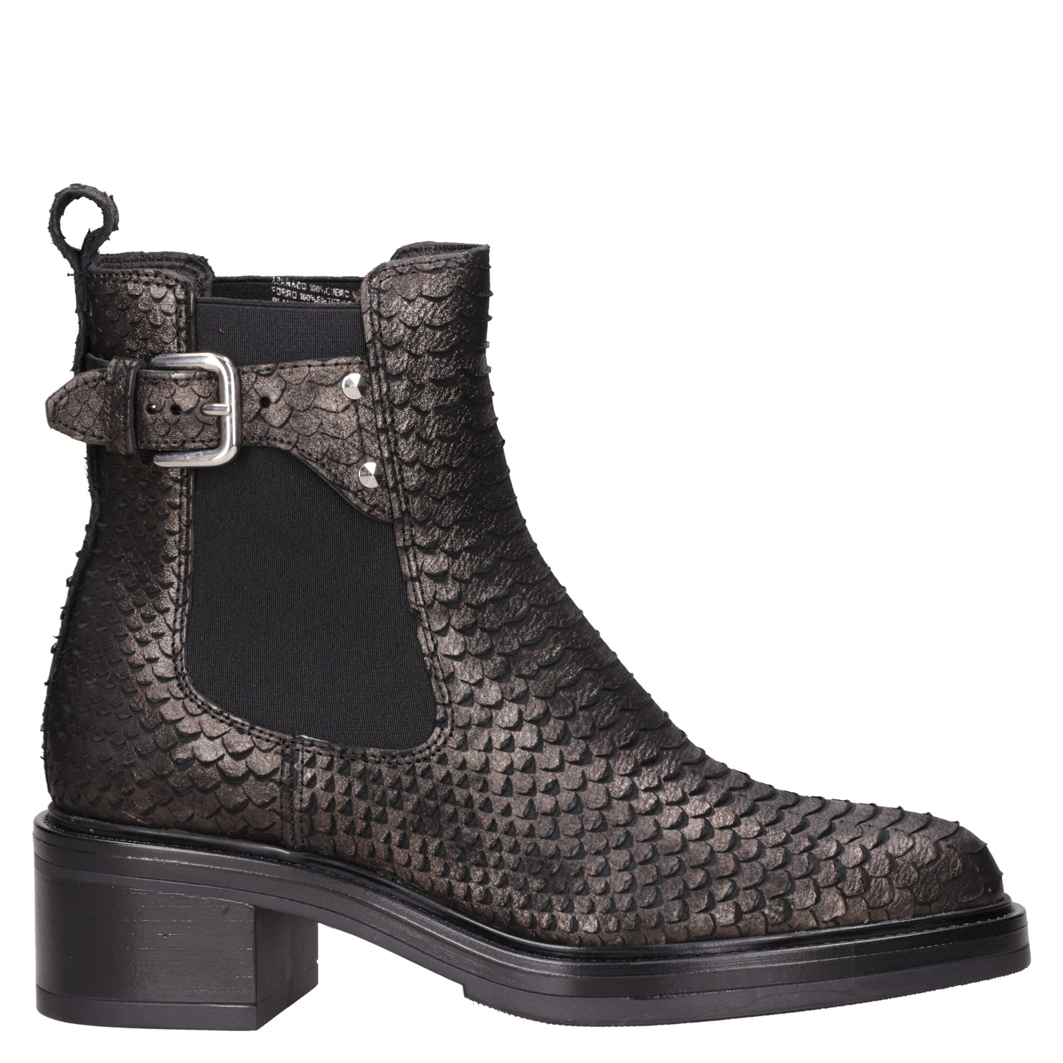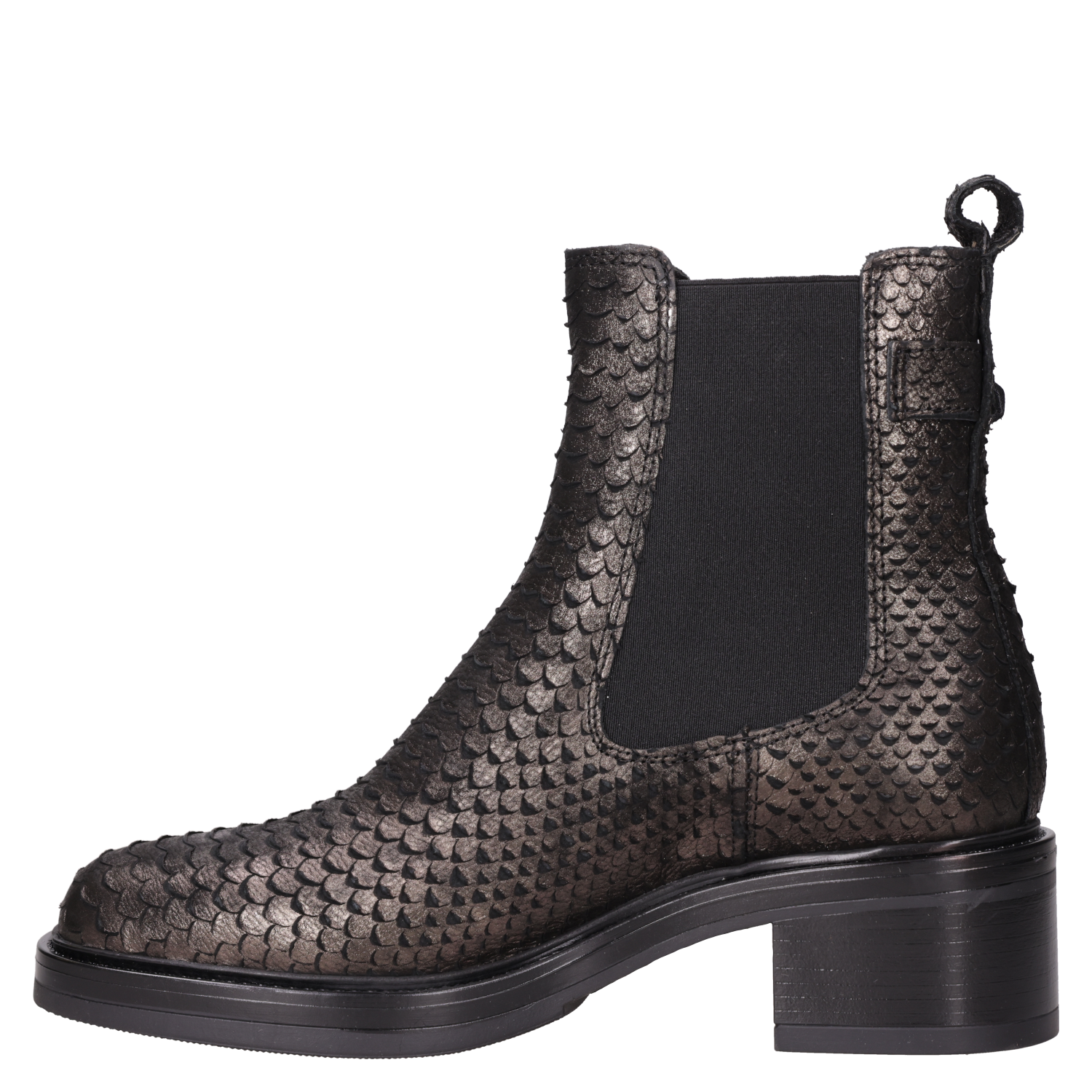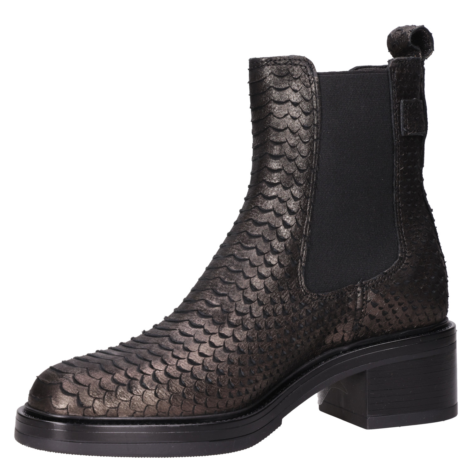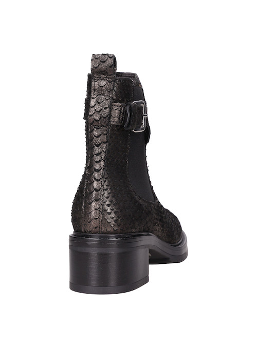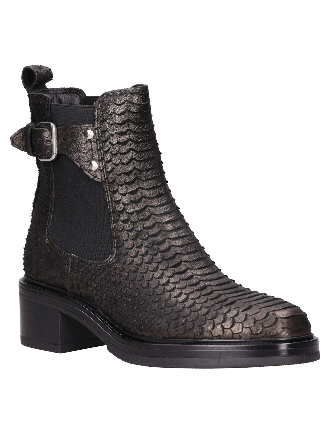 Atrévete a marcar la diferencia con estos impactantes botines de MJUS, diseñados para la mujer que no teme mostrar su personalidad. Fabricados en suave cuero italiano con un exclusivo acabado escamoso en color acero, estos botines combinan un estilo urbano con detalles metálicos y una punta redonda que aportan carácter. Su taco bloque de 5 cm brinda comodidad sin sacrificar el estilo, perfectos para acompañar tus jeans ajustados o una falda de cuero. ¡Celebra tu autenticidad y destaca con cada paso!