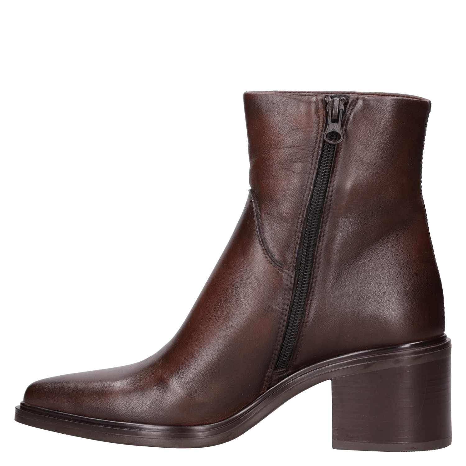 Imponte con este audaz botín café de MJUS, elaborado en suave cuero italiano que irradia calidad y personalidad. Su diseño moderno se complementa con un taco bloque de 6.5 cm y una punta redonda, ofreciendo un estilismo contemporáneo y llamativo. Perfecto para esos días en los que deseas destacar con un look urbano y auténtico, combínalo con un vestido corto o unos jeans ajustados para un efecto deslumbrante.