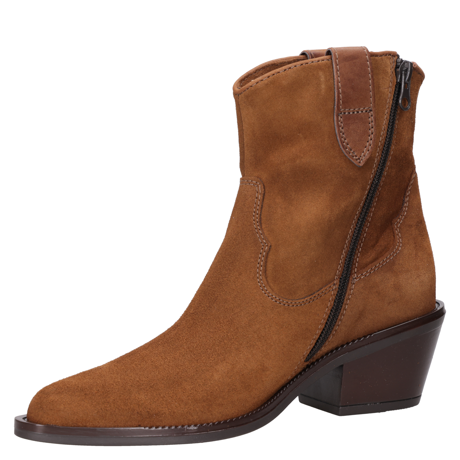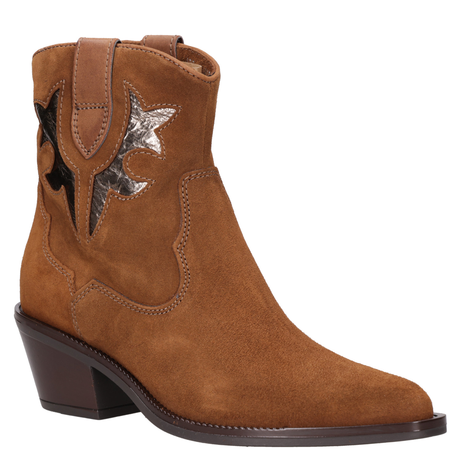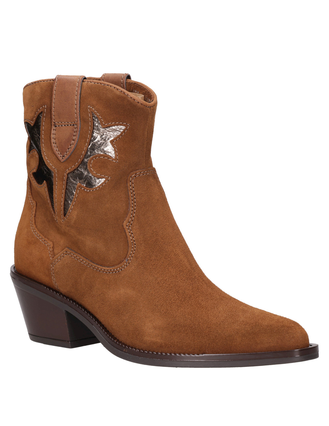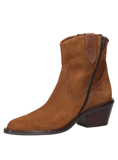 Inicia una nueva tendencia con nuestro botín vaquero en un cautivador color camel. Este diseño audaz en cuero italiano de suave textura, presenta una moderna punta puntiaguda y taco bloque de 6 cm, que evoca un estilo rockero con un giro contemporáneo. Detalles metálicos y un corte distintivo añaden carácter a cada paso. Combínalo con un vestido largo bohemio o un look urbano con jeans ajustados y una chaleco de cuero para un impacto visual inigualable.