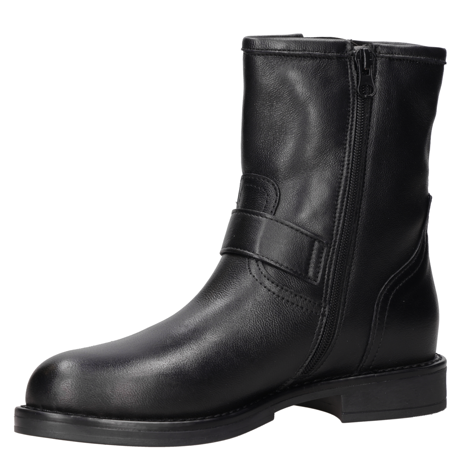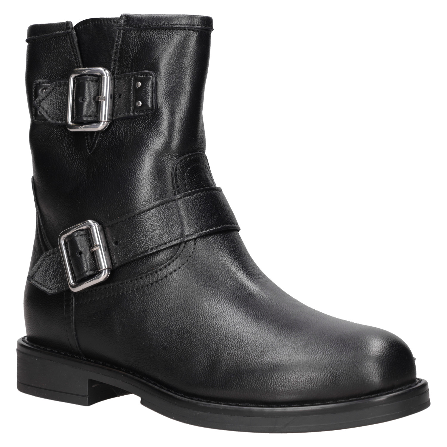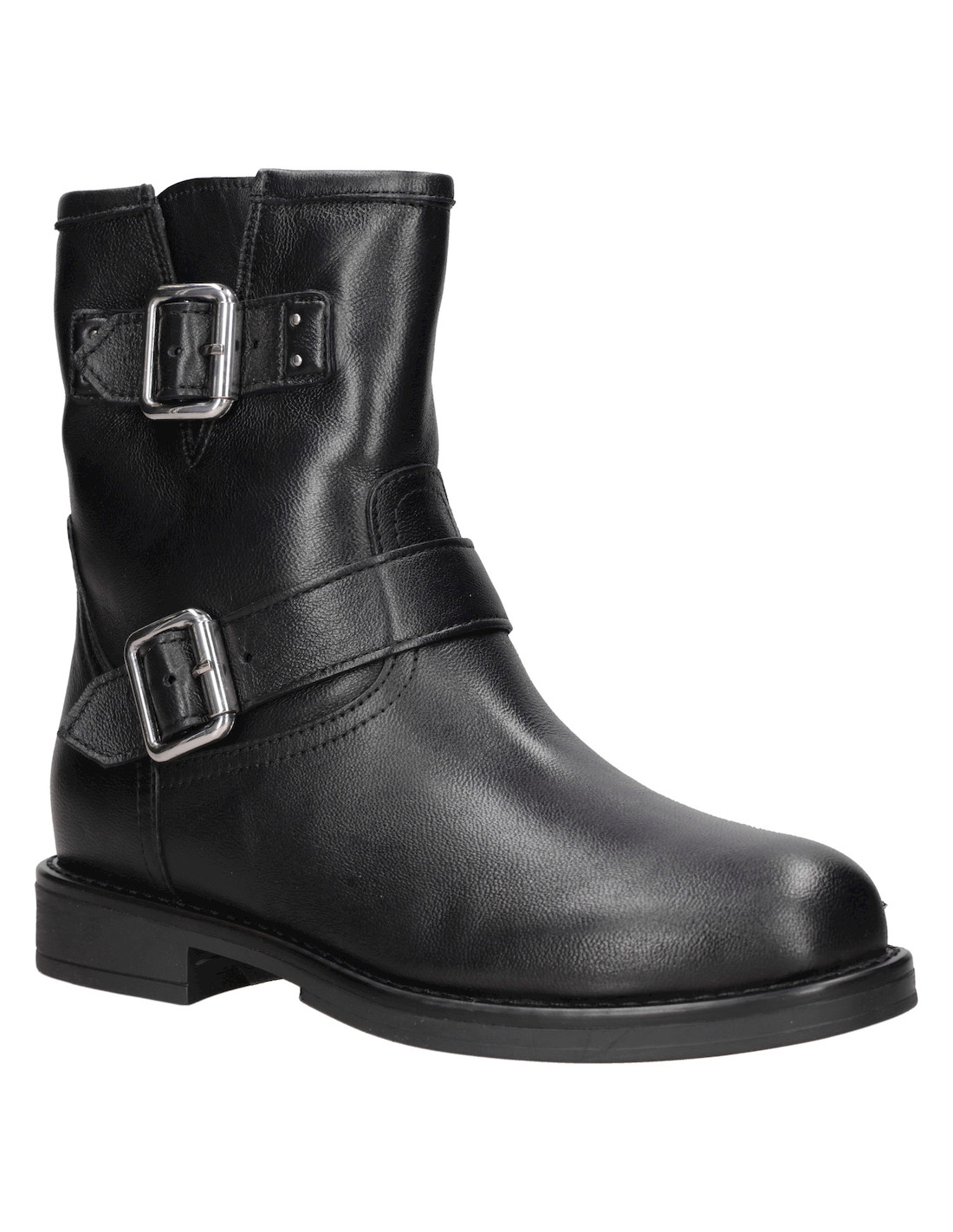 Experimenta la esencia disruptiva del botín negro de cuero para mujer, diseñado con una actitud audaz y moderna. Su punta redonda y taco bloque de 3 cm ofrecen comodidad y estilo, mientras que las hebillas metálicas añaden un toque de carácter. Este modelo se inspira en la estética rocker y es perfecto para quienes buscan un look protagónico. Combínalo con jeans ajustados y una camiseta gráfica o con un vestido bohemio para un contraste auténtico. ¡Imponte con personalidad!