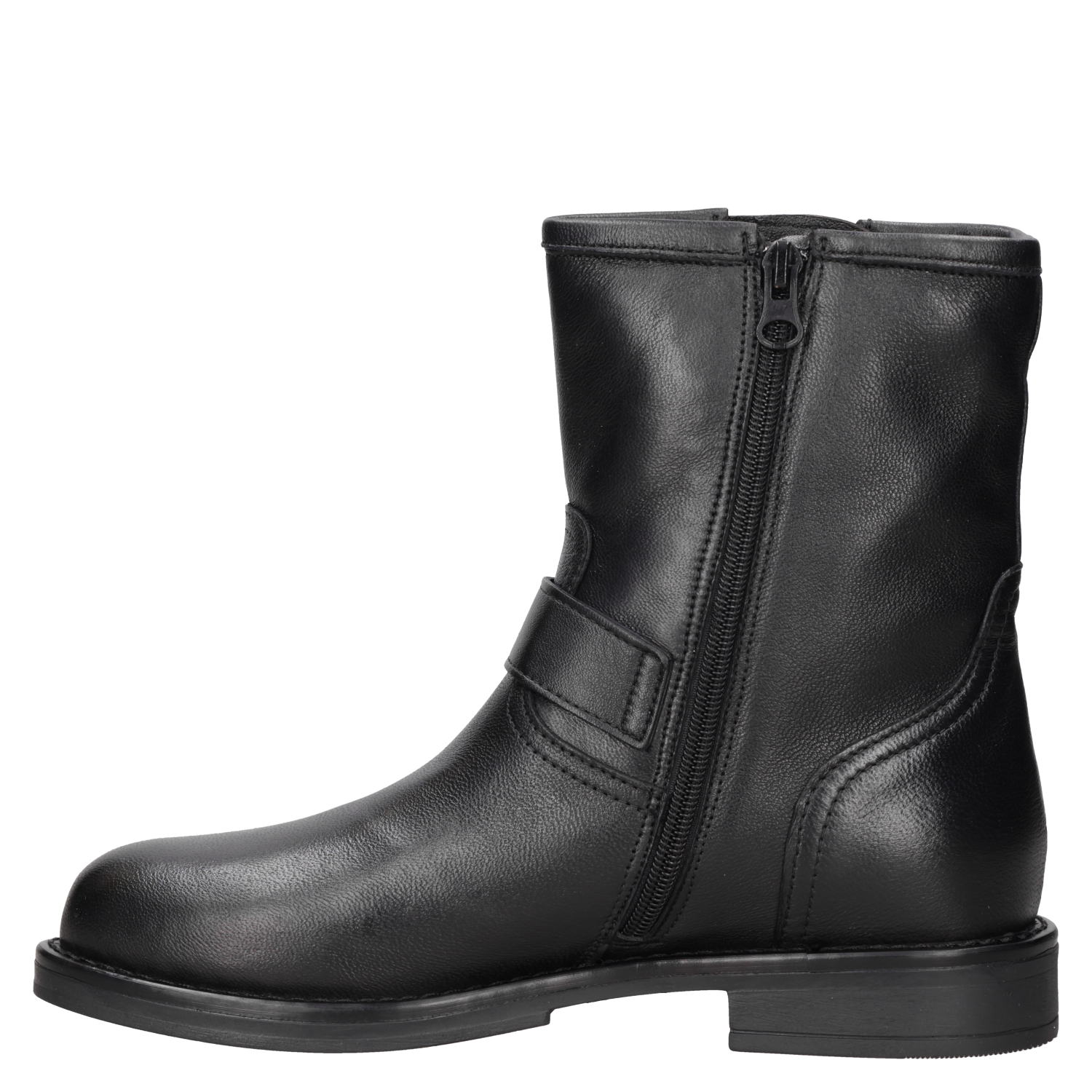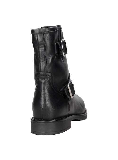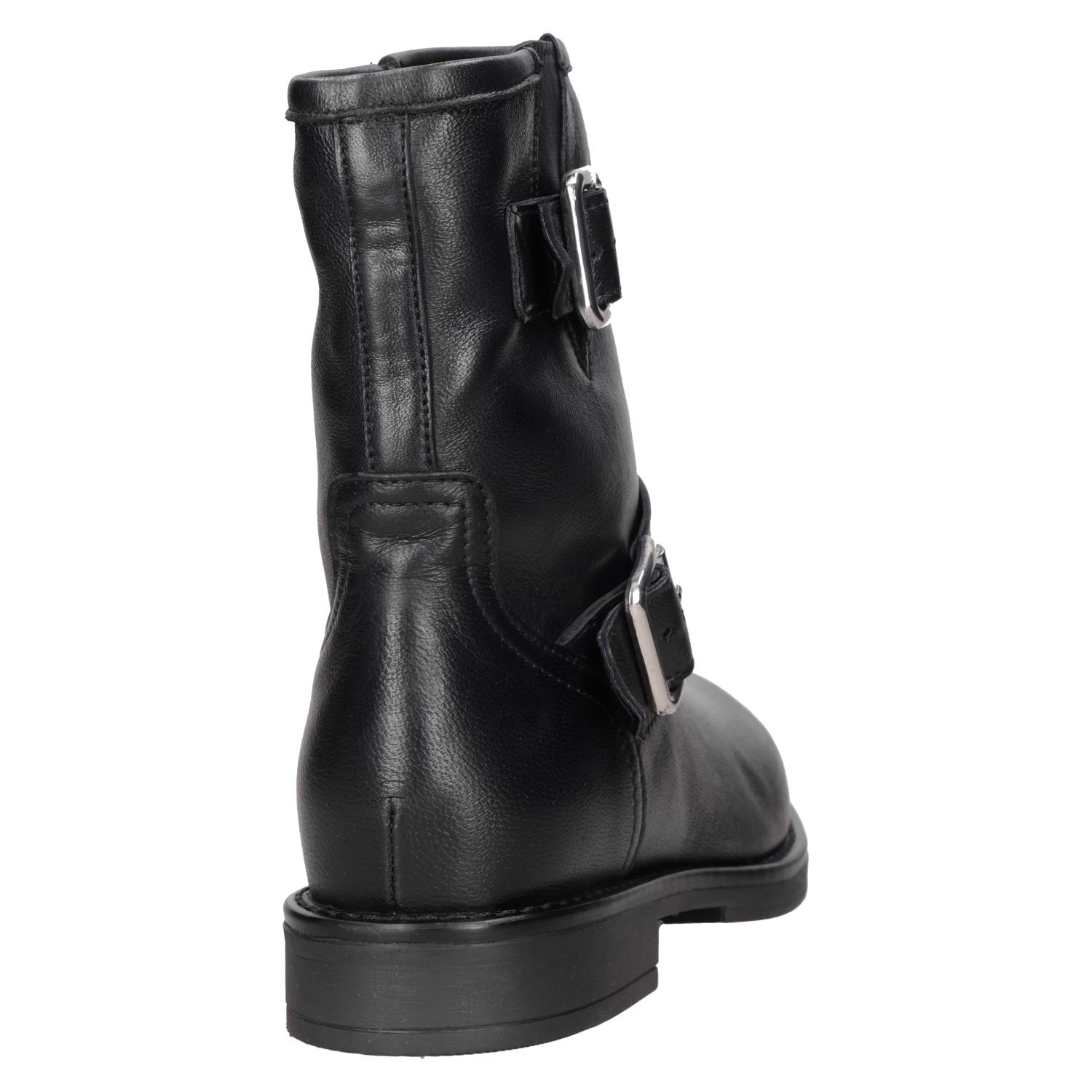 Experimenta la esencia disruptiva del botín negro de cuero para mujer, diseñado con una actitud audaz y moderna. Su punta redonda y taco bloque de 3 cm ofrecen comodidad y estilo, mientras que las hebillas metálicas añaden un toque de carácter. Este modelo se inspira en la estética rocker y es perfecto para quienes buscan un look protagónico. Combínalo con jeans ajustados y una camiseta gráfica o con un vestido bohemio para un contraste auténtico. ¡Imponte con personalidad!