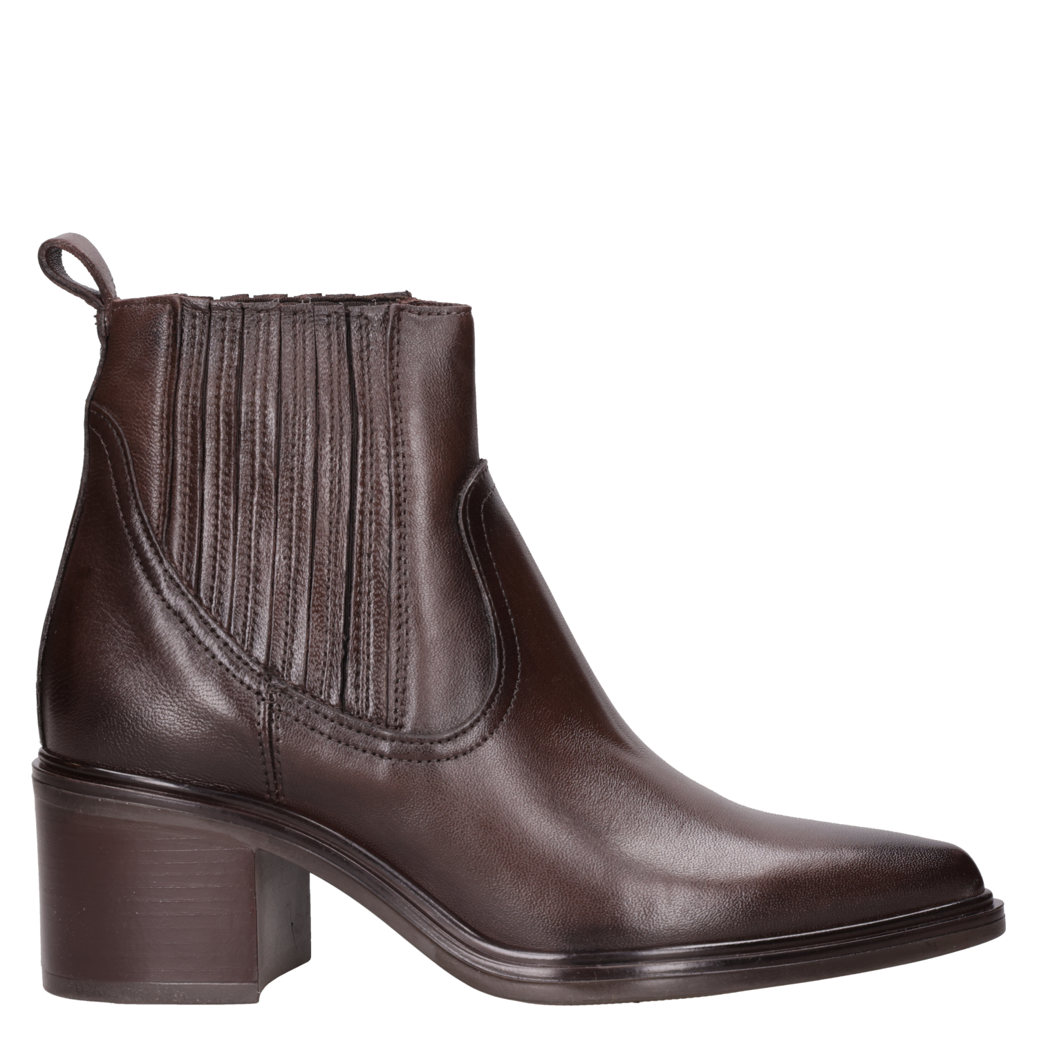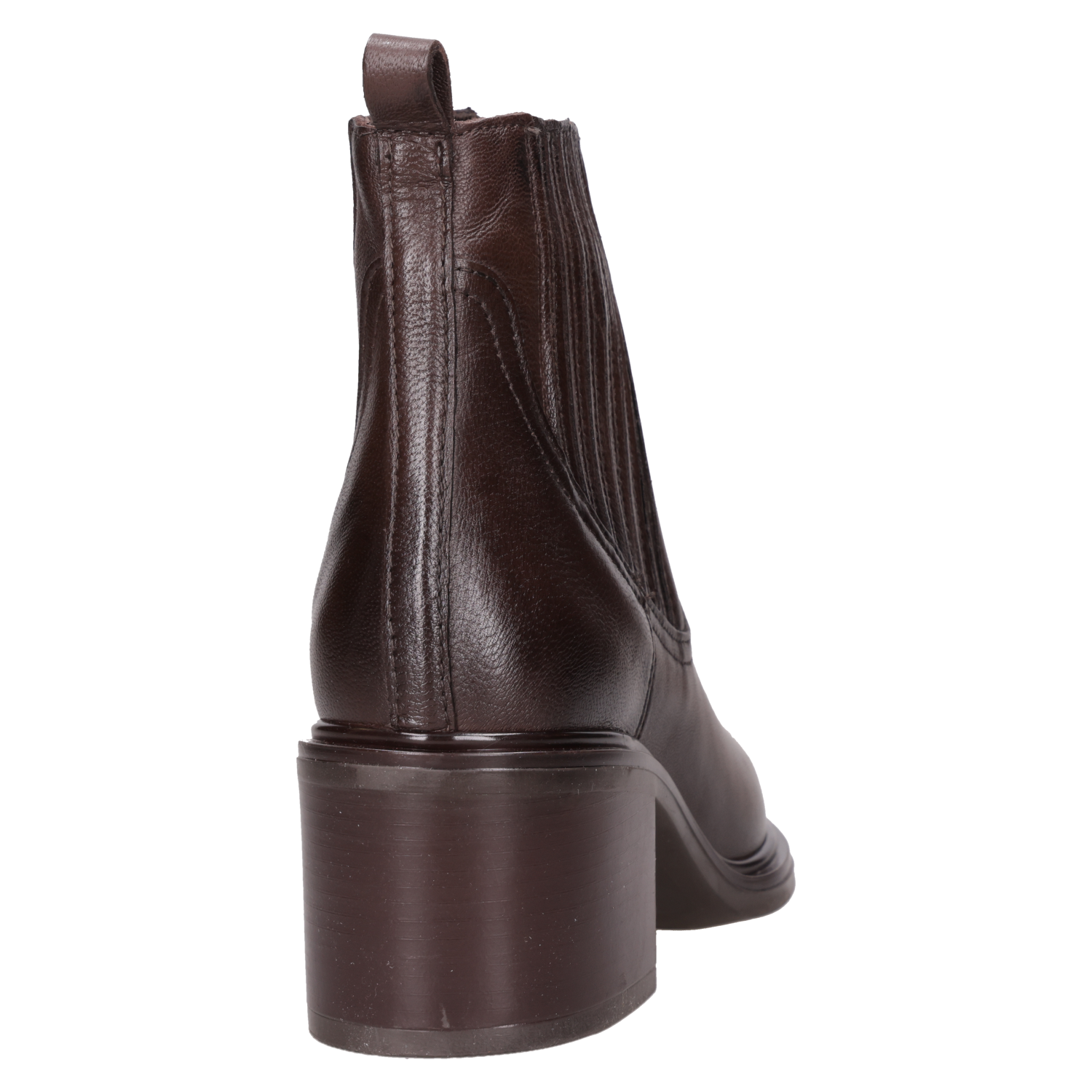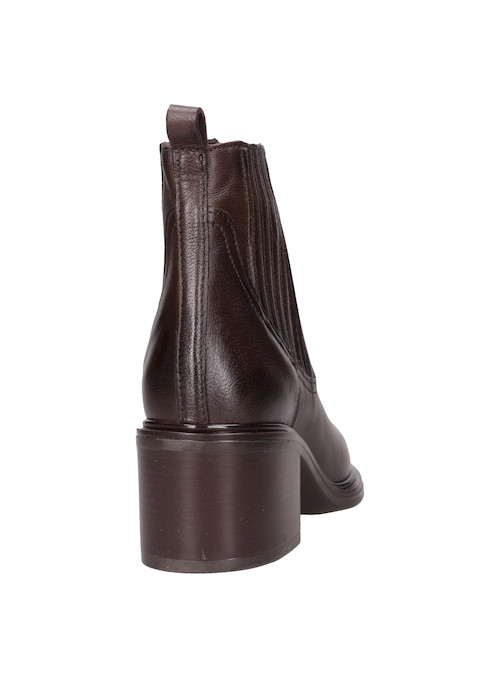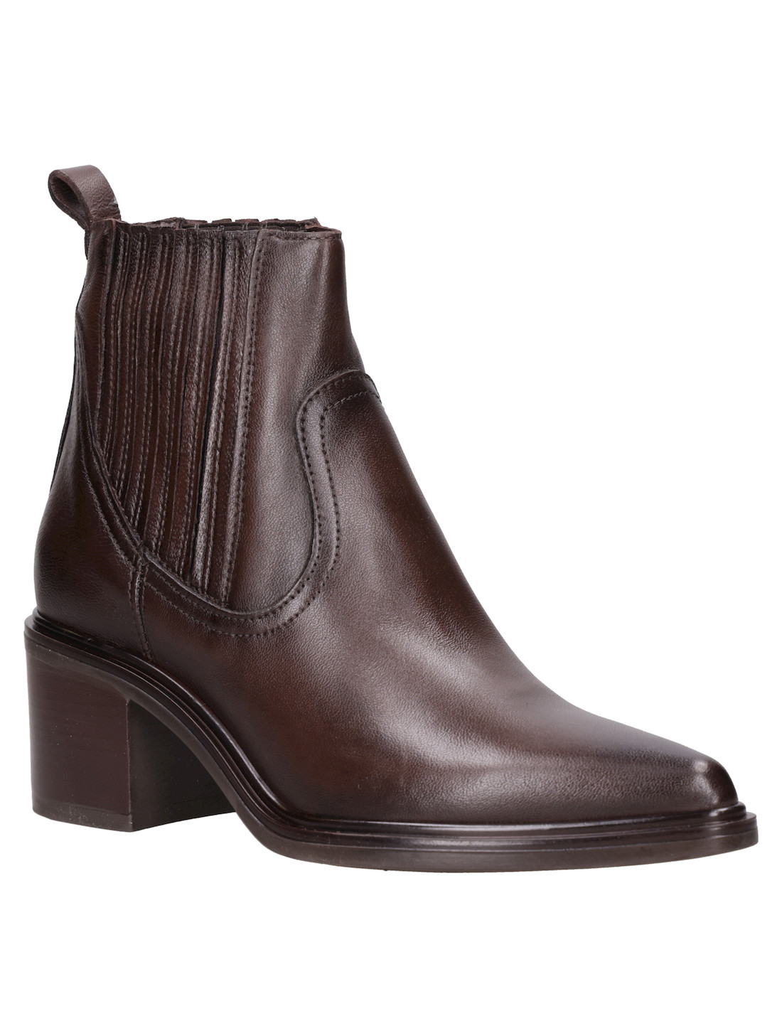 El botín de cuero en un sofisticado tono moro es el complemento perfecto para una mujer con actitud. Su diseño de punta puntiaguda y taco bloque de 6.5 cm aporta altura y estilo a cada paso. La textura suave del cuero italiano, combinada con las finas líneas de su estructura, promete un look que impone tendencias. Ideal para lucir con un vestido ceñido o unos jeans ajustados, este botín redefine la elegancia con un toque urbano.