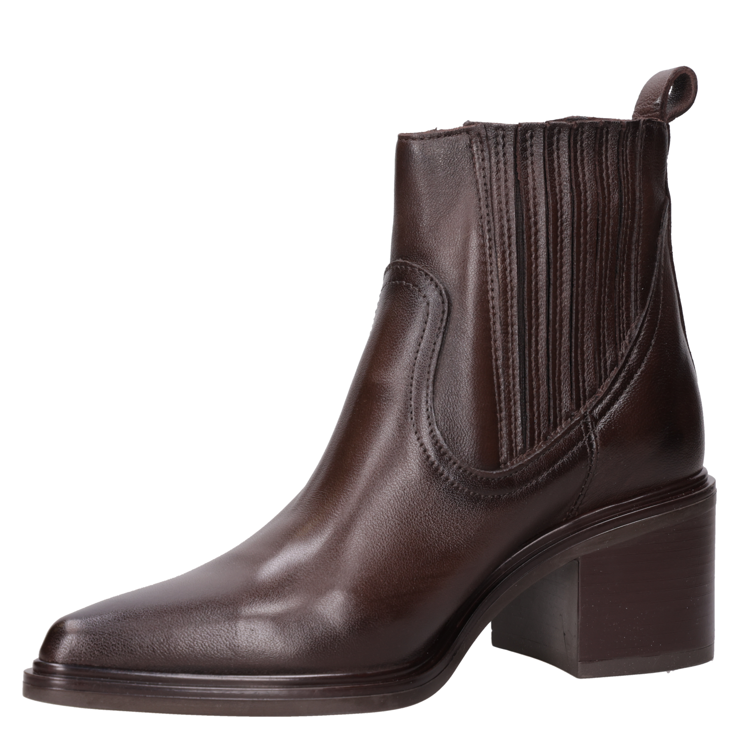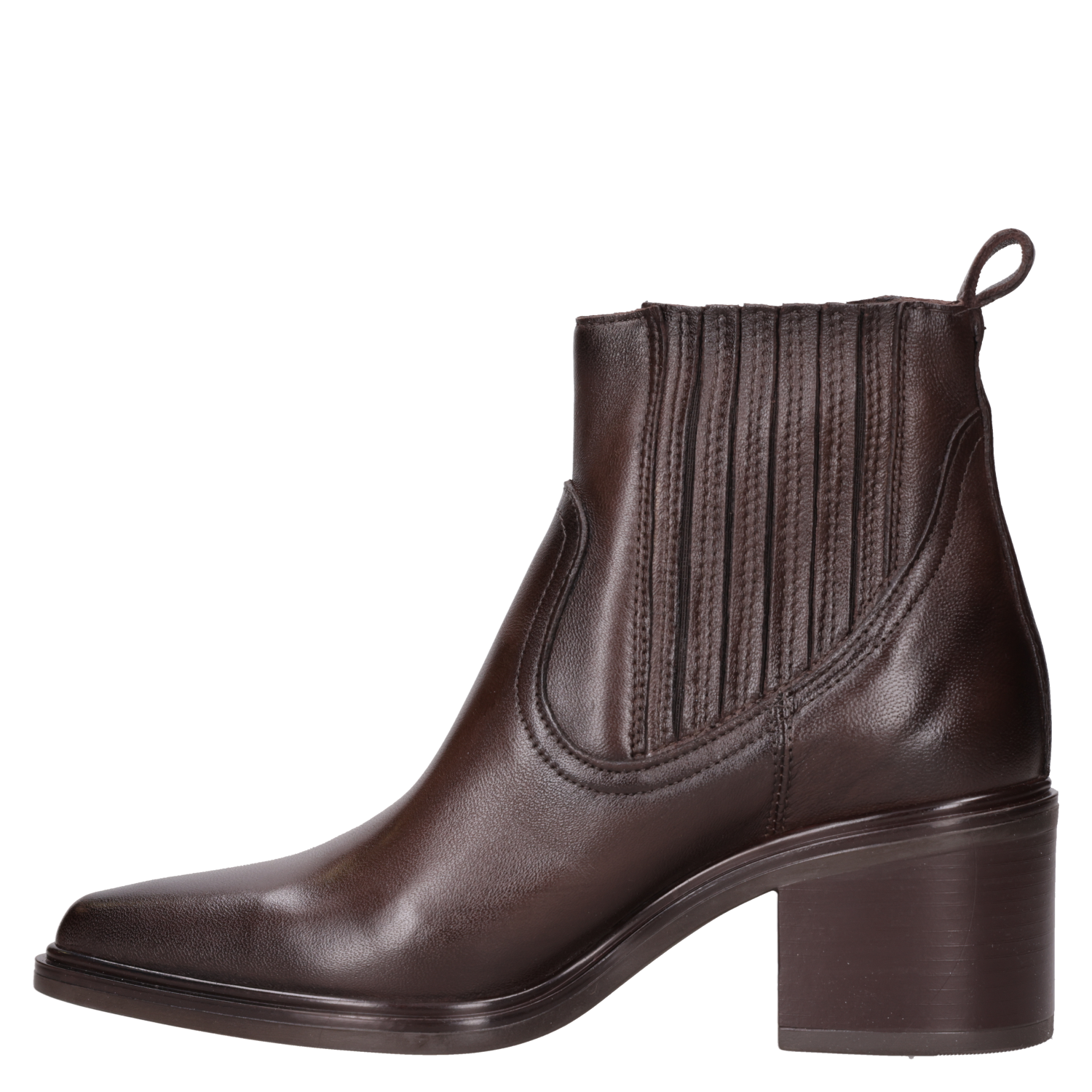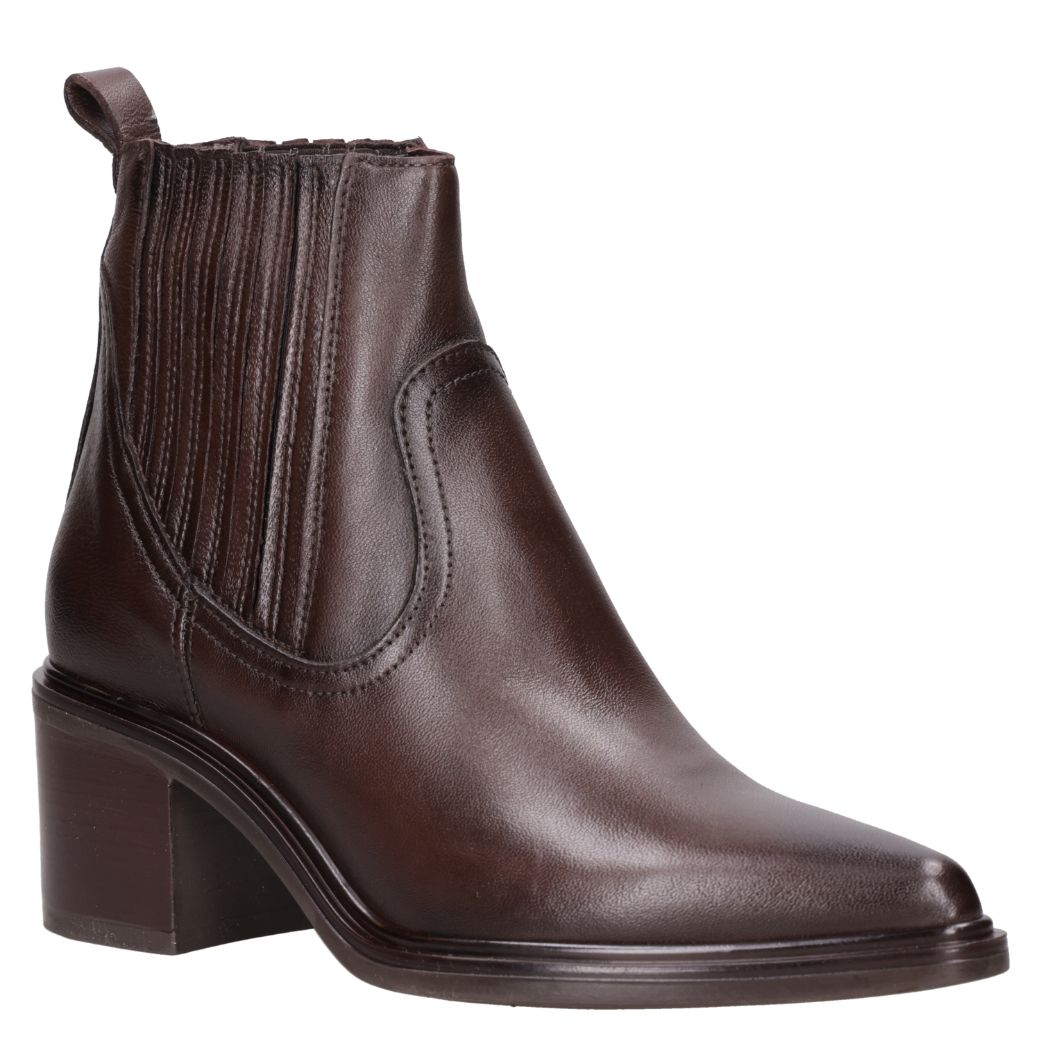 El botín de cuero en un sofisticado tono moro es el complemento perfecto para una mujer con actitud. Su diseño de punta puntiaguda y taco bloque de 6.5 cm aporta altura y estilo a cada paso. La textura suave del cuero italiano, combinada con las finas líneas de su estructura, promete un look que impone tendencias. Ideal para lucir con un vestido ceñido o unos jeans ajustados, este botín redefine la elegancia con un toque urbano.